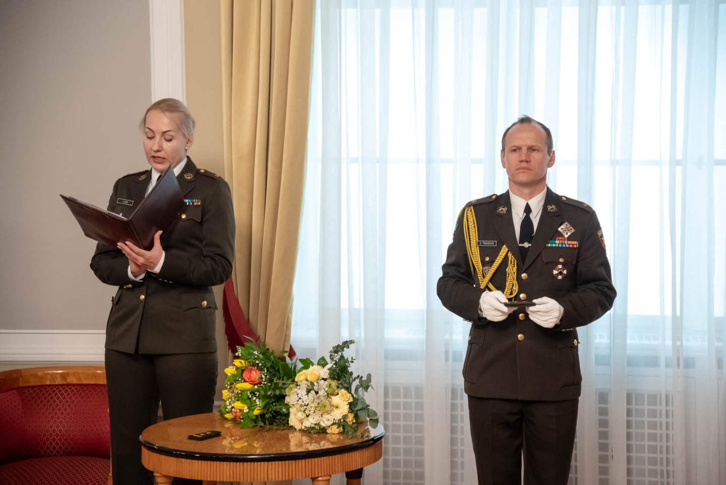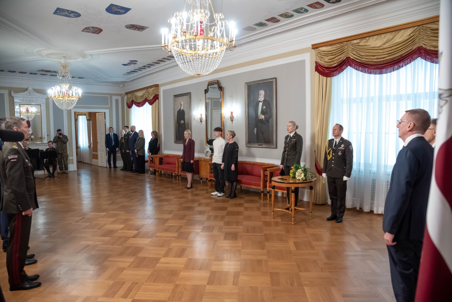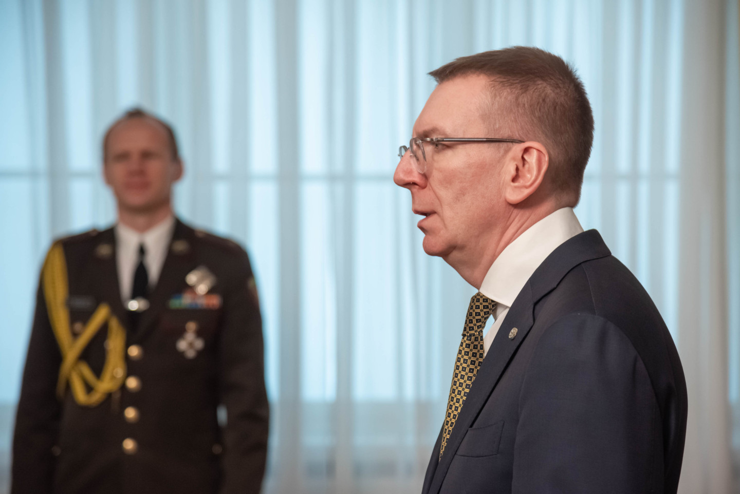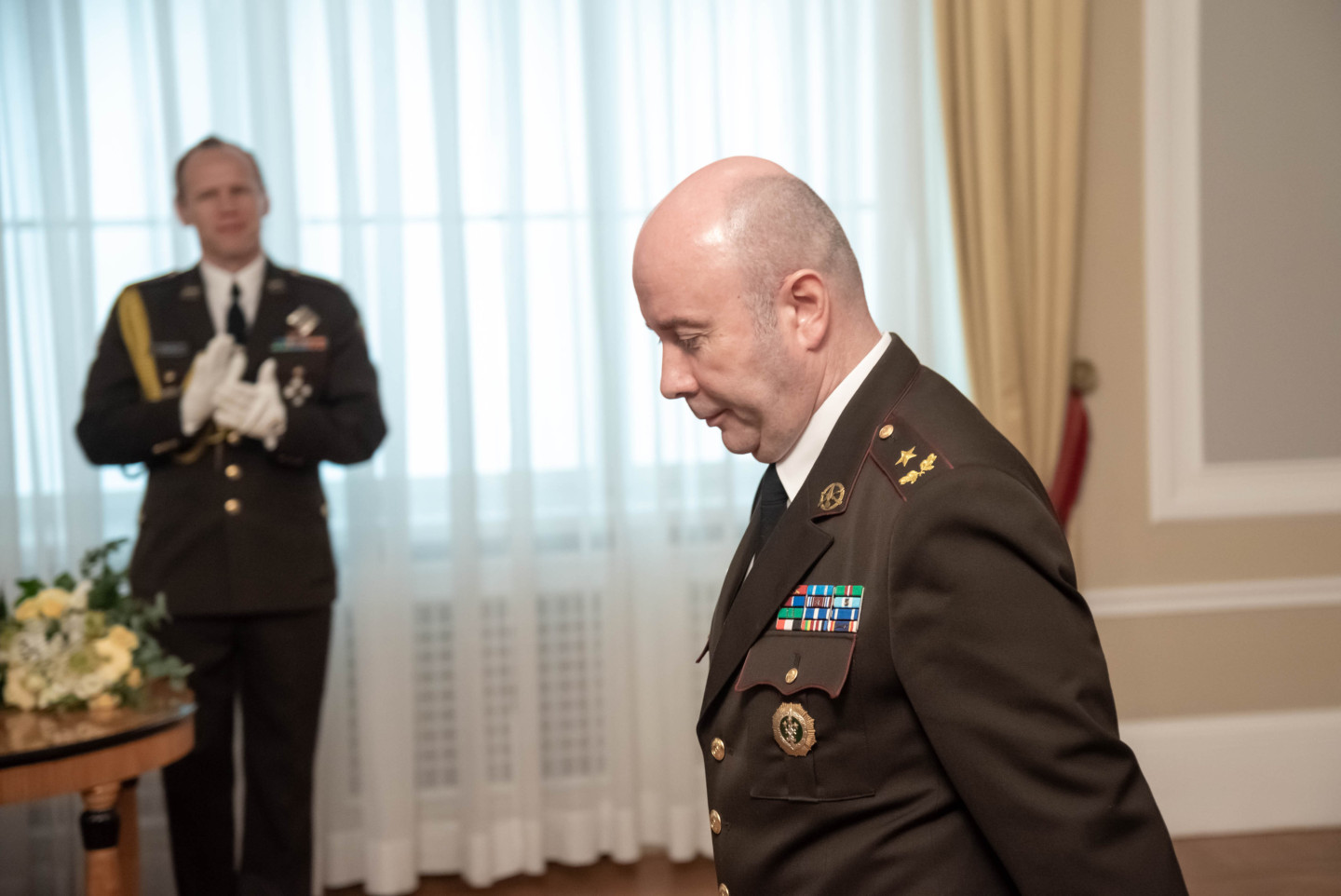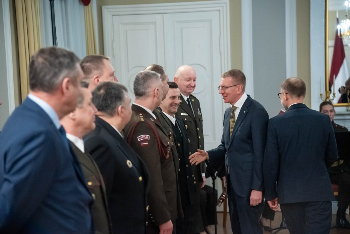 Rīgas pilī šodien norisinājās svinīgs pasākums, kura ietvaros Valsts prezidents Edgars Rinkēvičs pasniedza ģenerālmajora dienesta pakāpi NBS ģenerālim un NBS Apvienotā štāba priekšniekam brigādes ģenerālim.