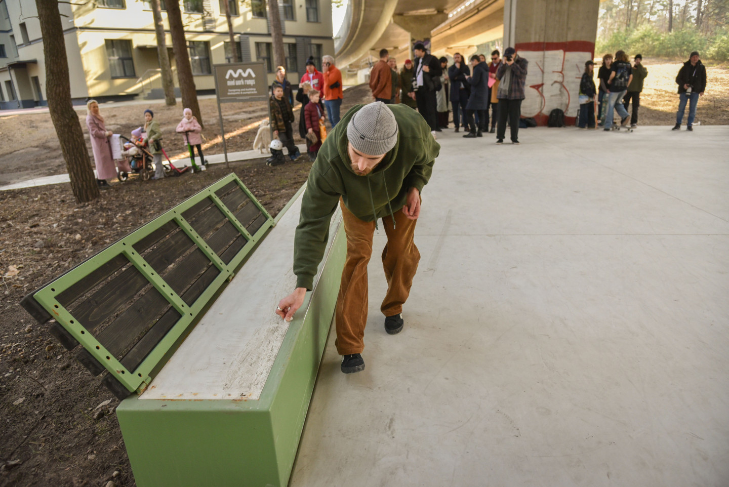 šodien Mežaparka apkaimē norisinājās līdzdalības budžeta konkursa projekta "Skeitparku kultūras telpa" atklāšanas pasākums.