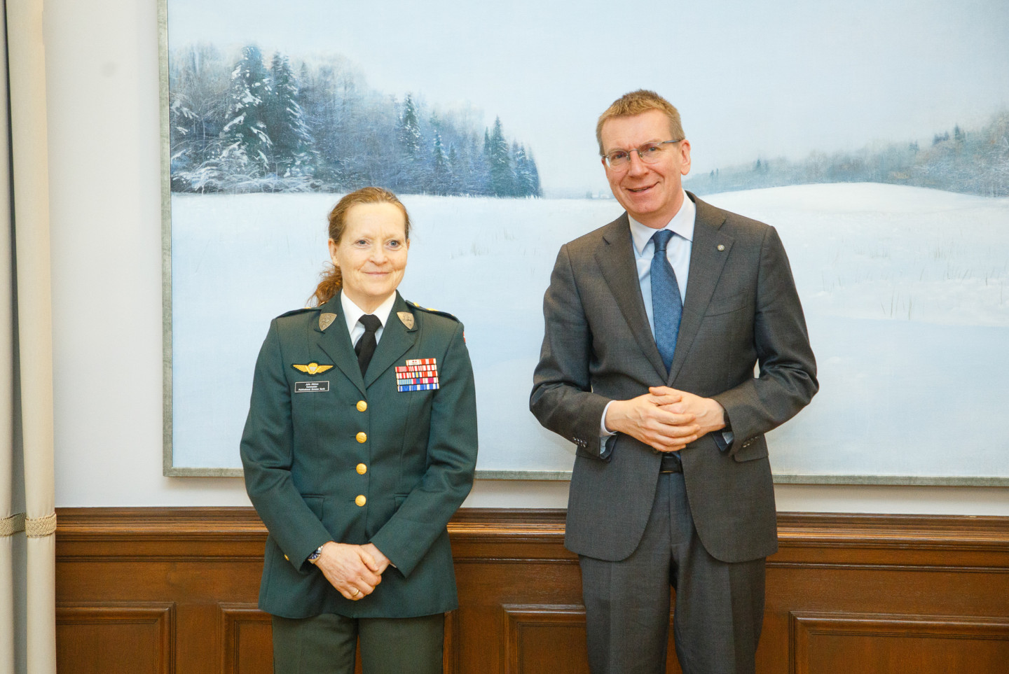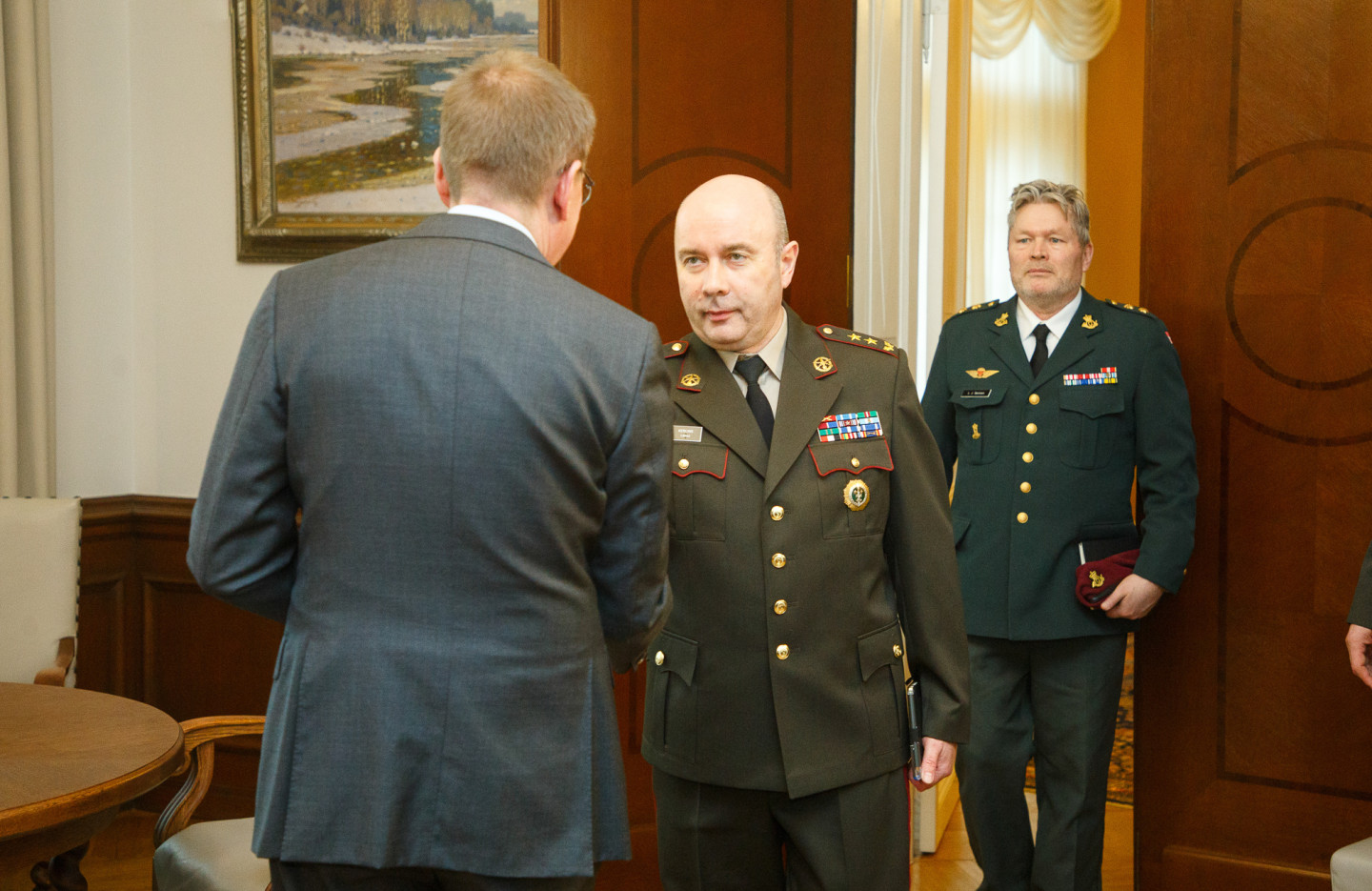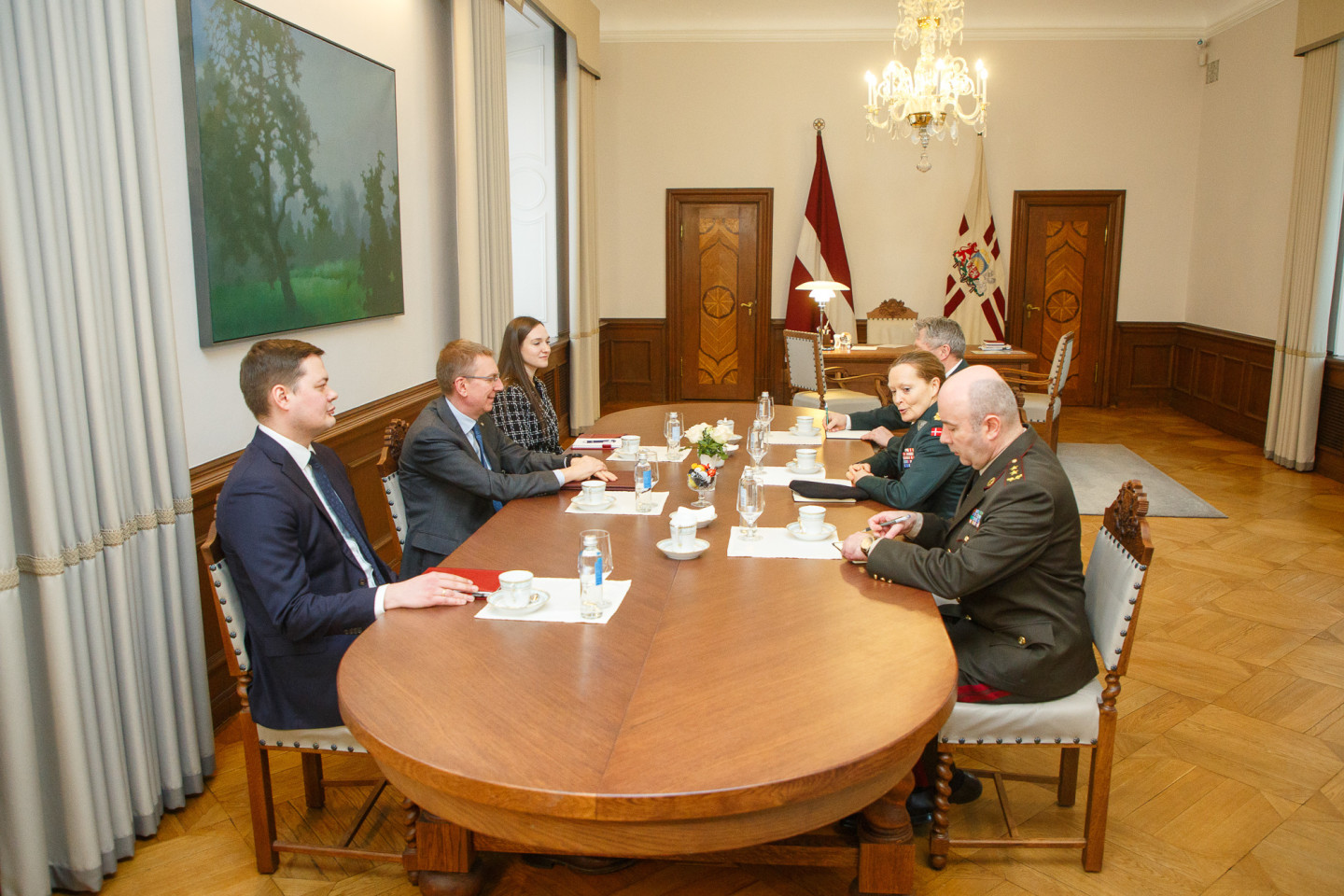 Valsts prezidenta Edgara Rinkēviča tikšanās ar NATO daudznacionālās divīzijas "Ziemeļi” (MND-N) komandieri ģenerālmajori Jeti Albinusu.