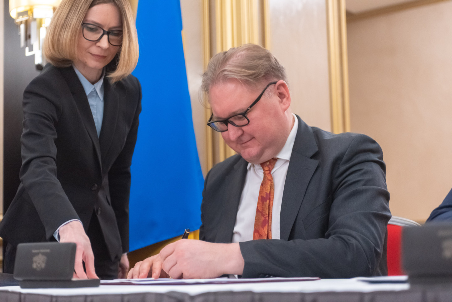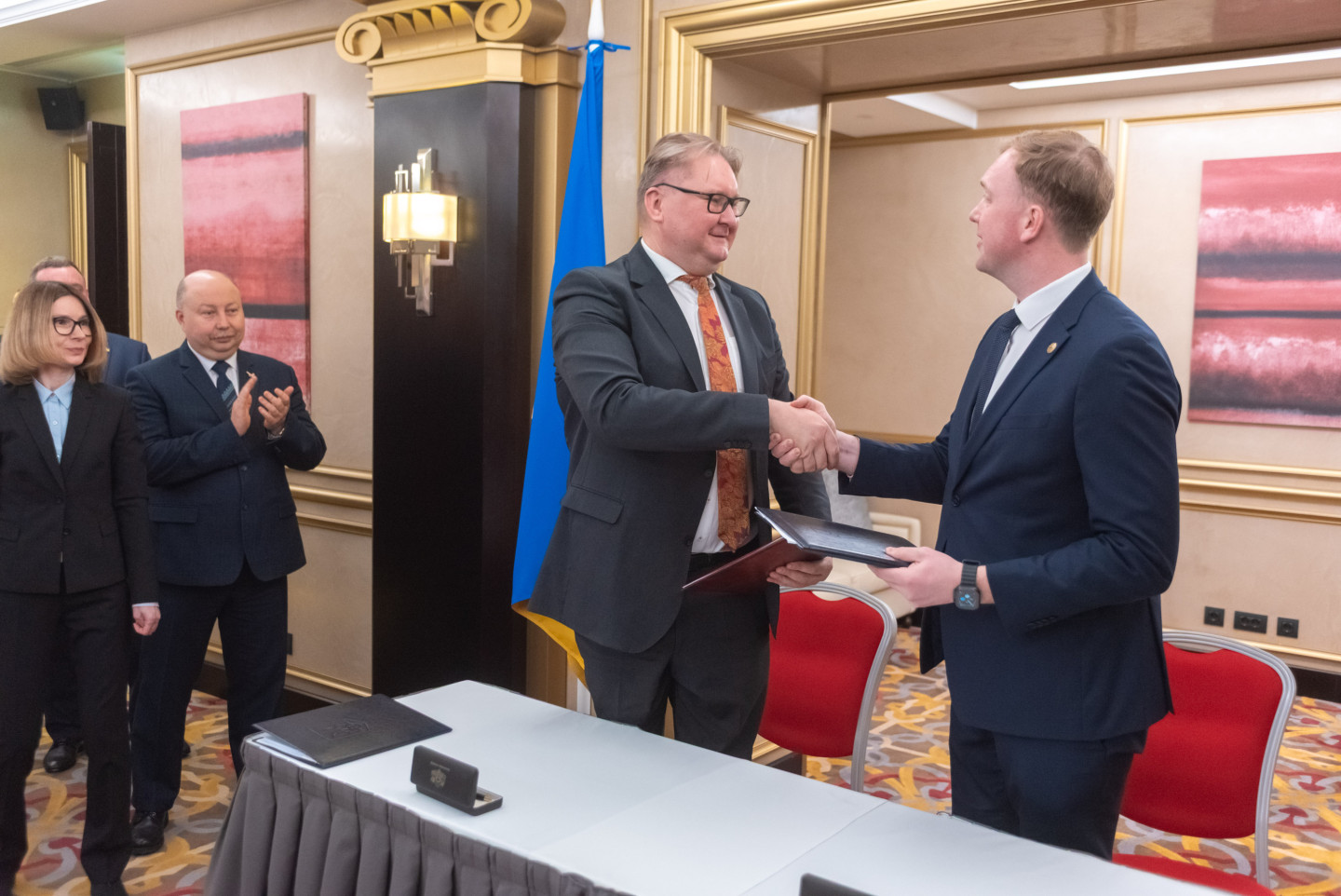 Šodien viesnīcā "Grand Hotel Kempinski Riga", Latvijas-Ukrainas Starpvaldību komisijas sēdē tika parakstīti divi starpinstitūciju līgumi, kā arī atklāts abu valstu biznesa forums. Viens no līgumiem paredzēs sadarbību starp abu valstu Ekonomikas ministrijām - standartizācijas, metroloģijas un atbilstības novērtēšanas jomā, bet otrs būs saprašanās memorands starp Ukrainas Valsts kosmosa aģentūru, Latvijas Izglītības un zinātnes ministriju un Ekonomikas ministriju par sadarbību kosmosa izpētes un izmantošanas jomā.