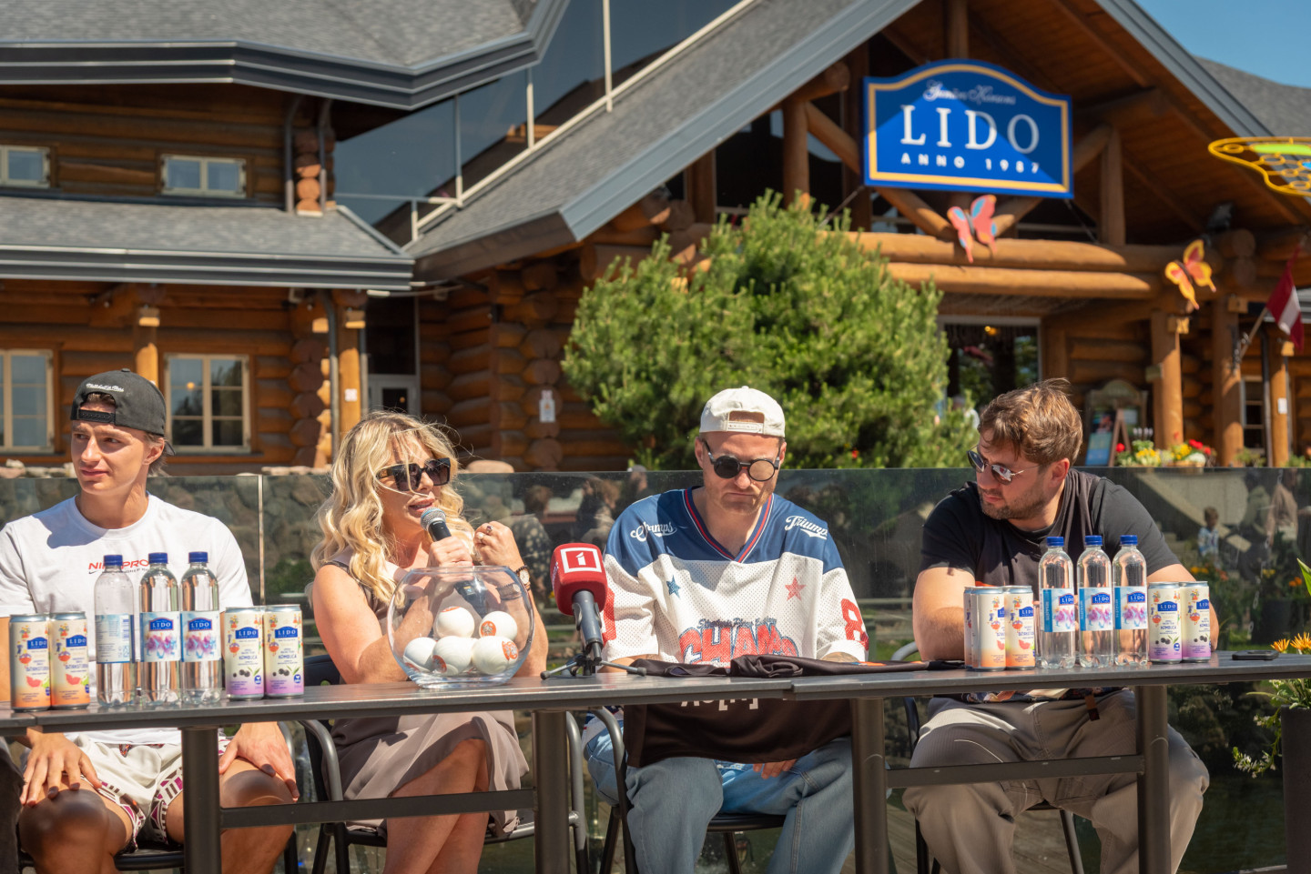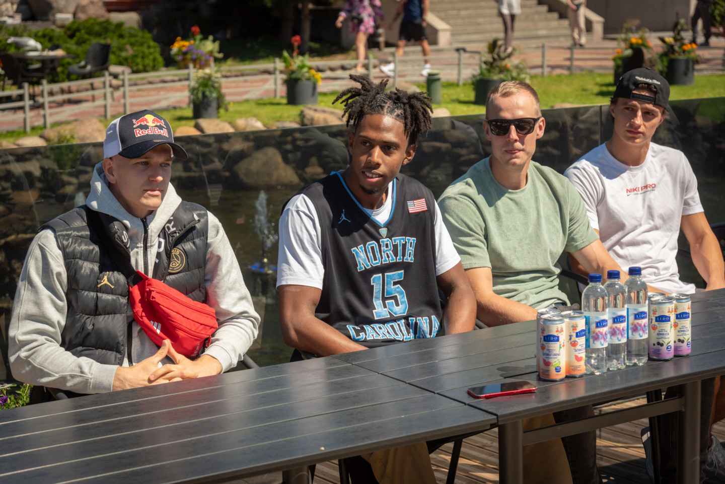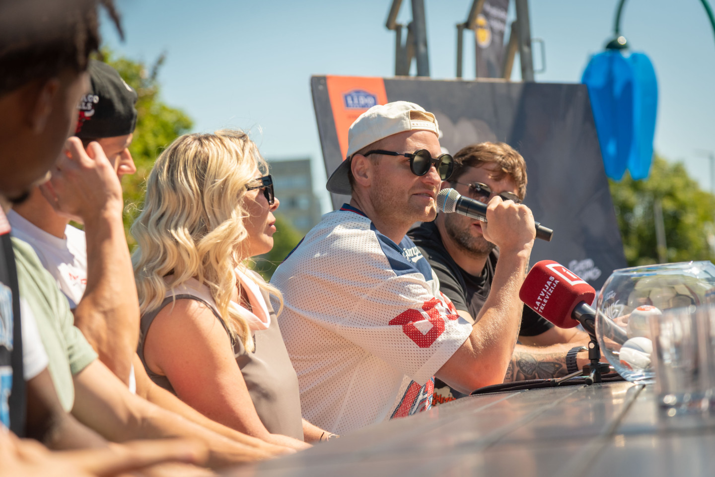 Atpūtas centrā "Lido" notiek mediju pasākums par pasaulē vērienīgāko "Slam Dunk" jeb bumbas triekšanas grozā no augšas šovu "Kings of Air", kurā piedalās "Kings of Air" vadītāji un veidotāji - Renārs Zeltiņš un Raimonds Elbakjans, AS "LIDO" valdes priekšsēdētāja Rita Auziņa, atlēti