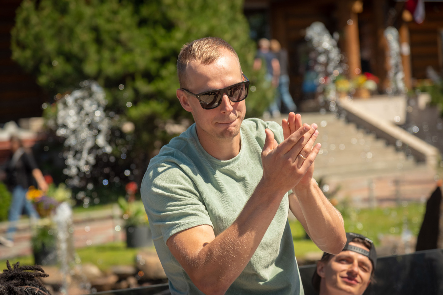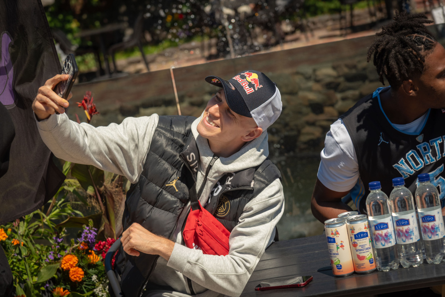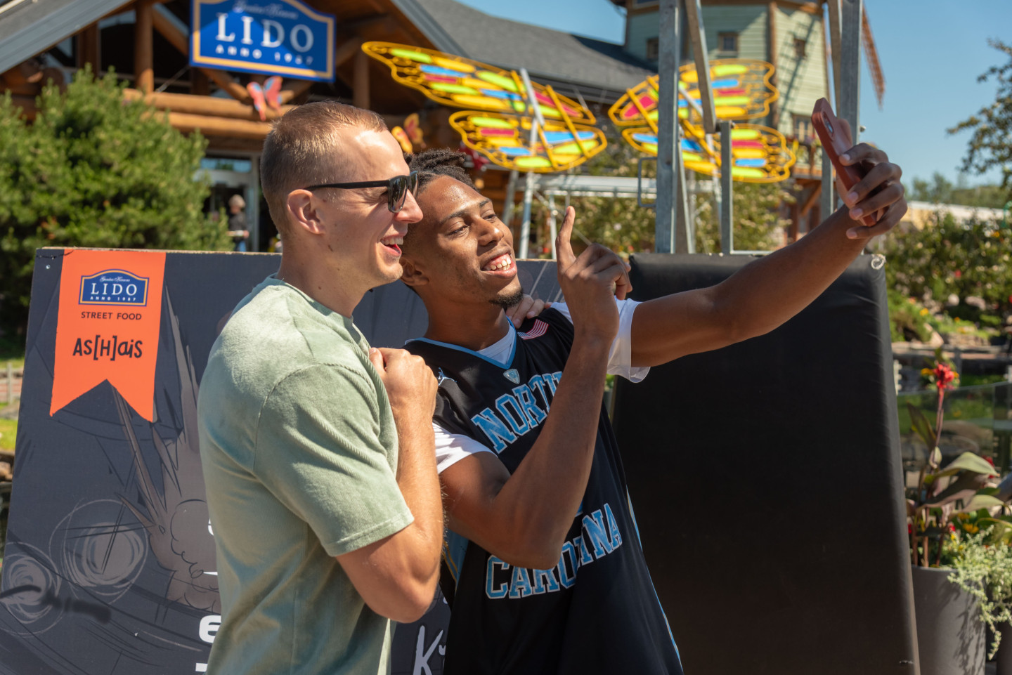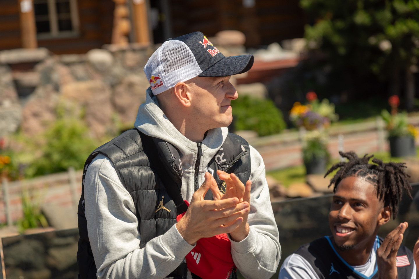 Atpūtas centrā "Lido" notiek mediju pasākums par pasaulē vērienīgāko "Slam Dunk" jeb bumbas triekšanas grozā no augšas šovu "Kings of Air", kurā piedalās "Kings of Air" vadītāji un veidotāji - Renārs Zeltiņš un Raimonds Elbakjans, AS "LIDO" valdes priekšsēdētāja Rita Auziņa, atlēti