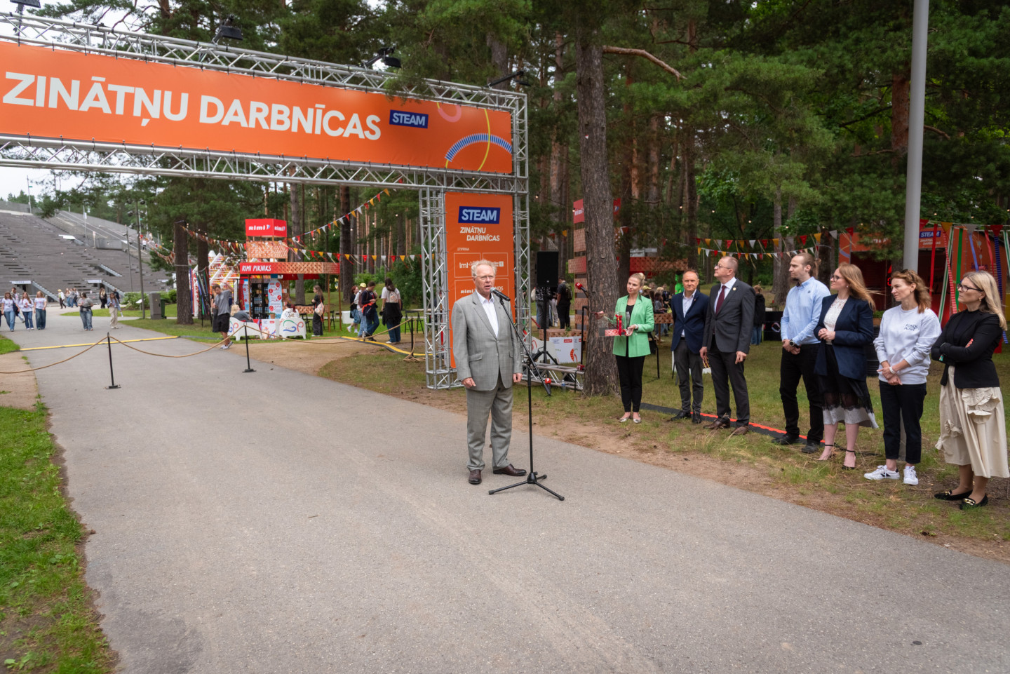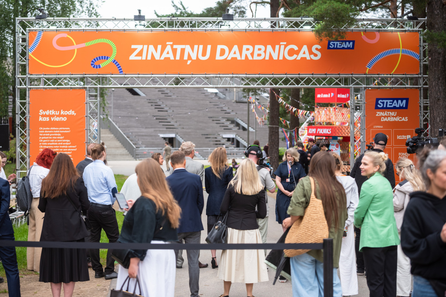 Mežaparkā atklāj vēsturē pirmo Dziesmu un deju svētku STEAM zinātņu darbnīcu zonu. Piedalās izglītības un zinātnes ministre Dace Melbārde, Saeimas Izglītības un zinātnes komisijas priekšsēdētāja Agita Zariņa-Stūre, XIII Latvijas Skolu jaunatnes dziesmu un deju svētku rīcības grupas vadītāja Inga Vasiļjeva un LMT prezidents Juris Binde