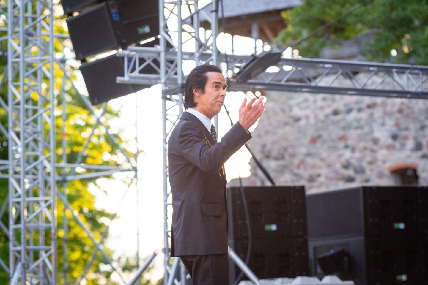 Austrāliešu mūziķis Niks Keivs koncertē Siguldas pilsdrupu estrādē