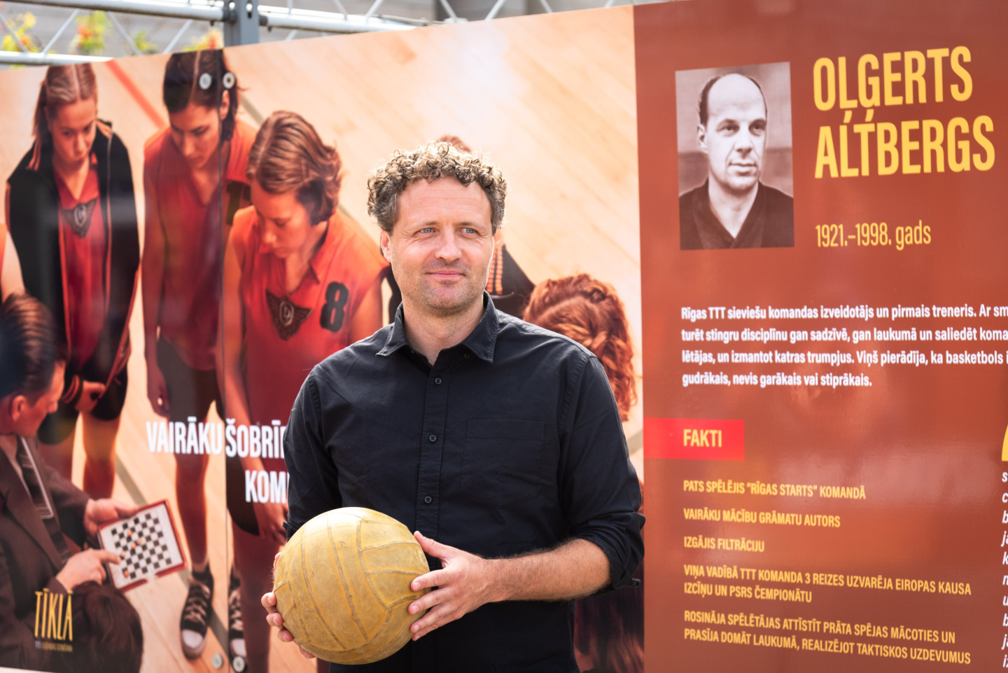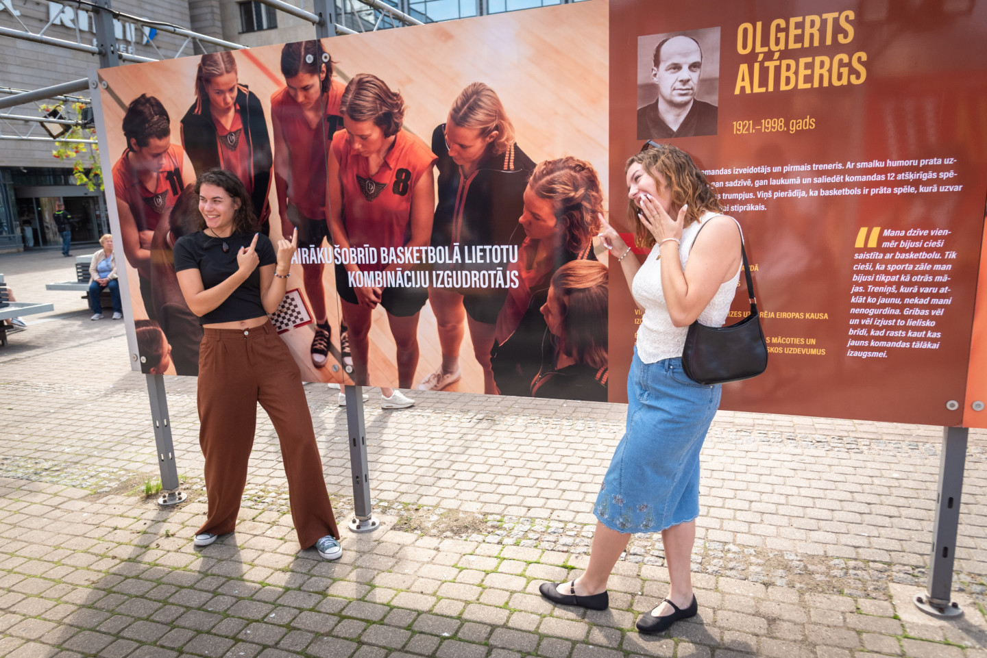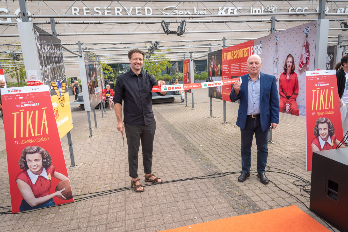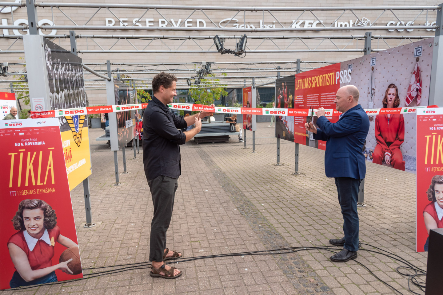 Basketbola komandas "TTT Rīga" un spēlfilmas "Tīklā. TTT leģendas dzimšana" fotoizstādes atklāšanas pasākums Stacijas laukumā.