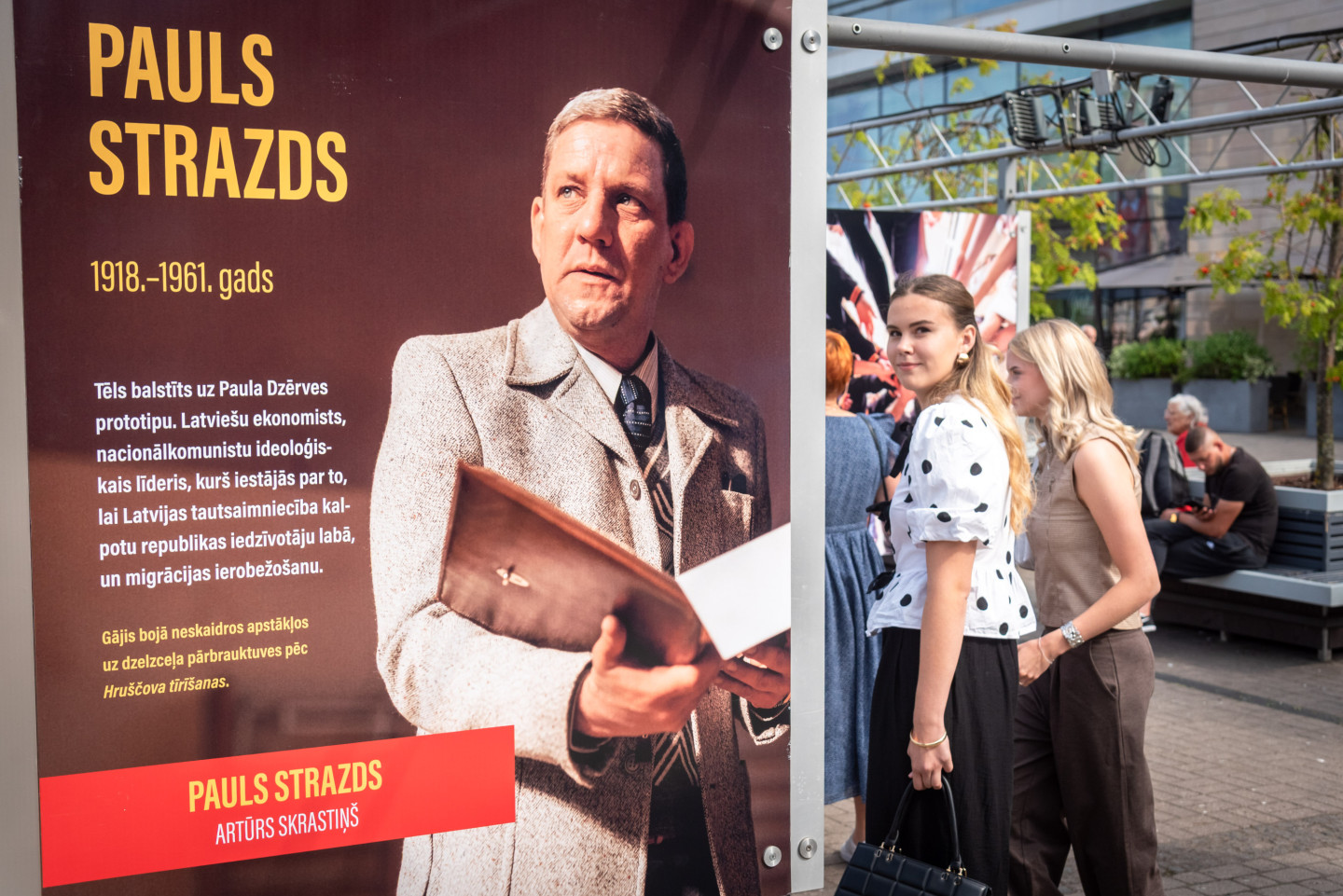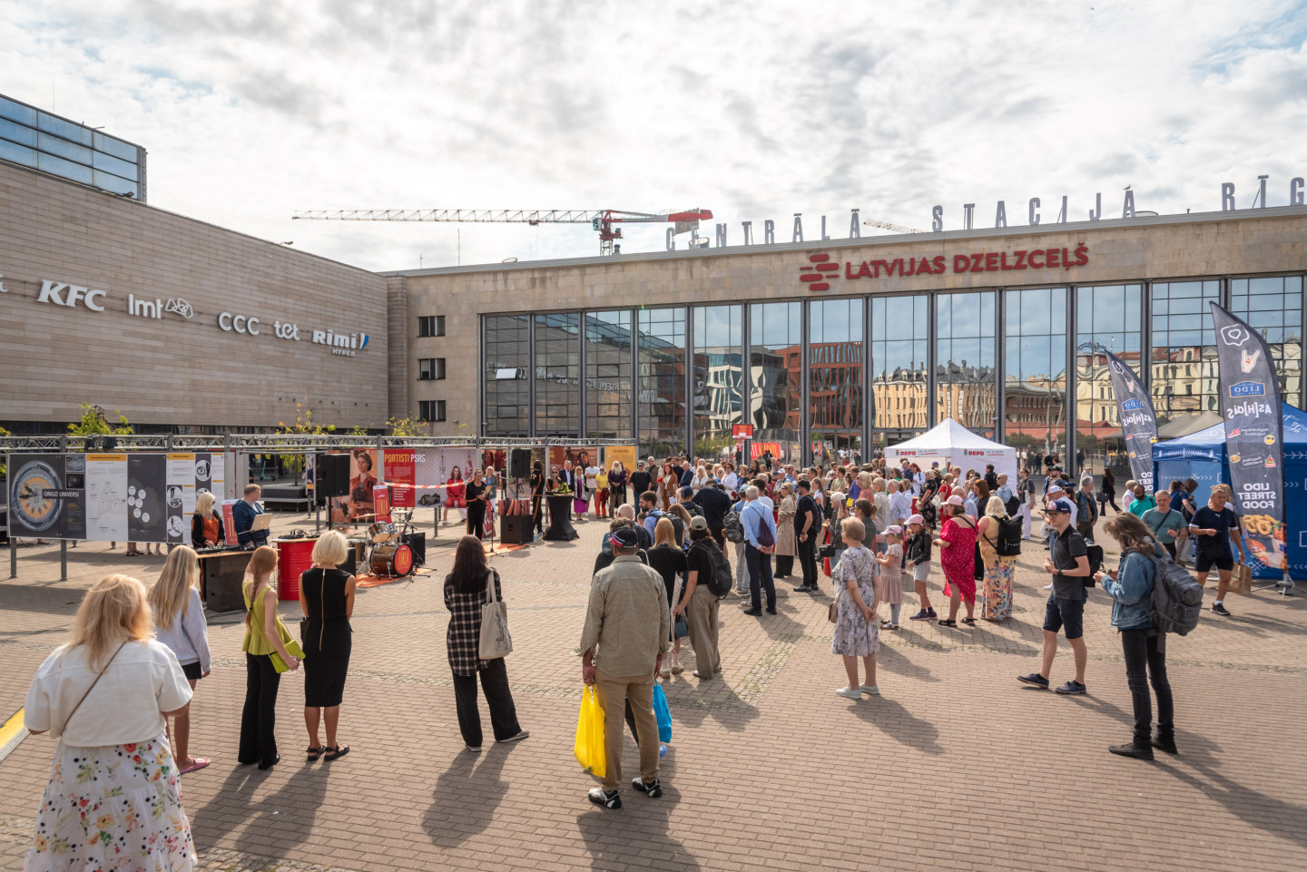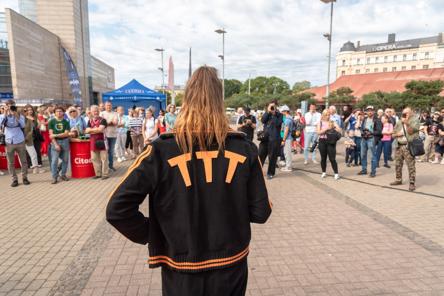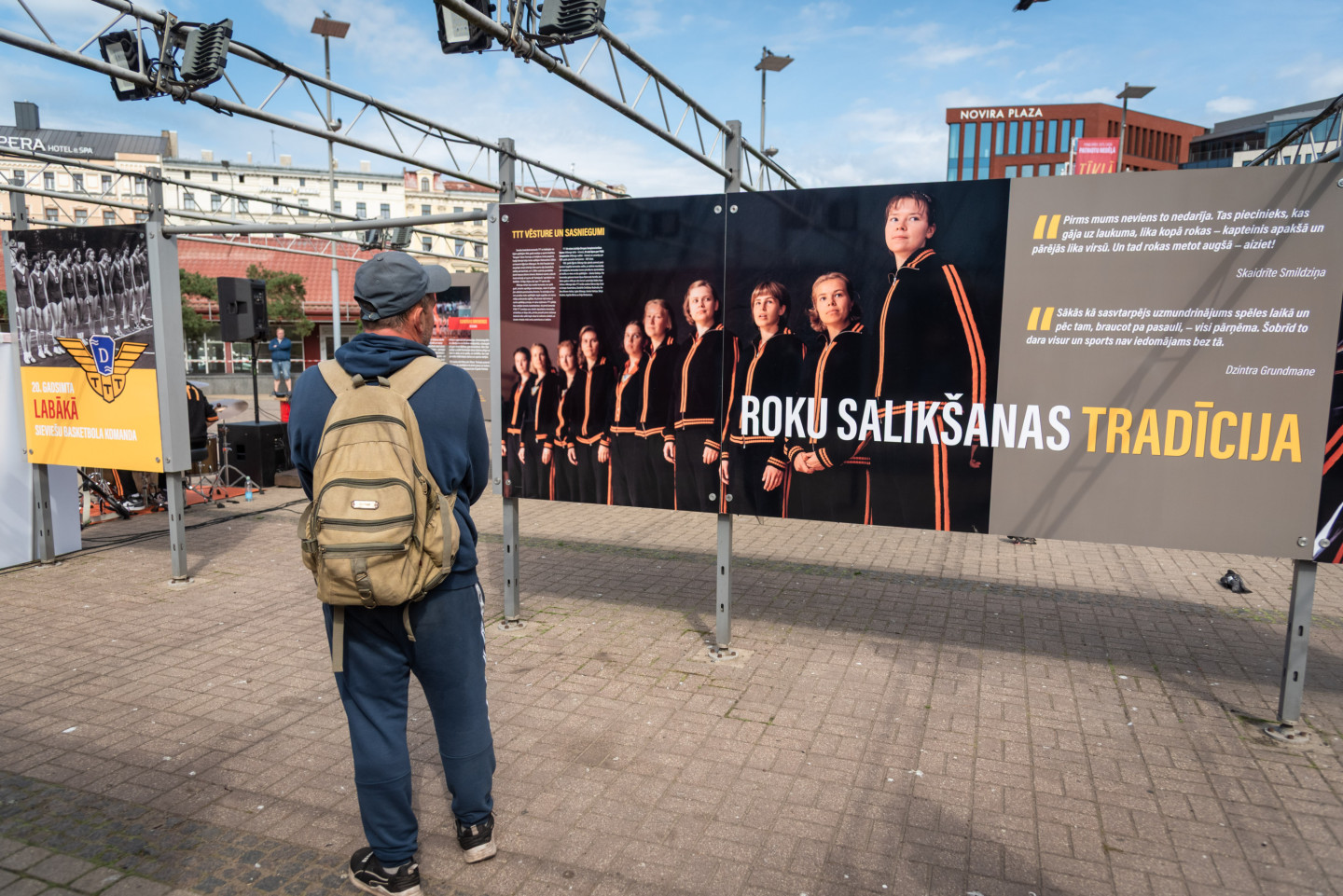 Basketbola komandas "TTT Rīga" un spēlfilmas "Tīklā. TTT leģendas dzimšana" fotoizstādes atklāšanas pasākums Stacijas laukumā.