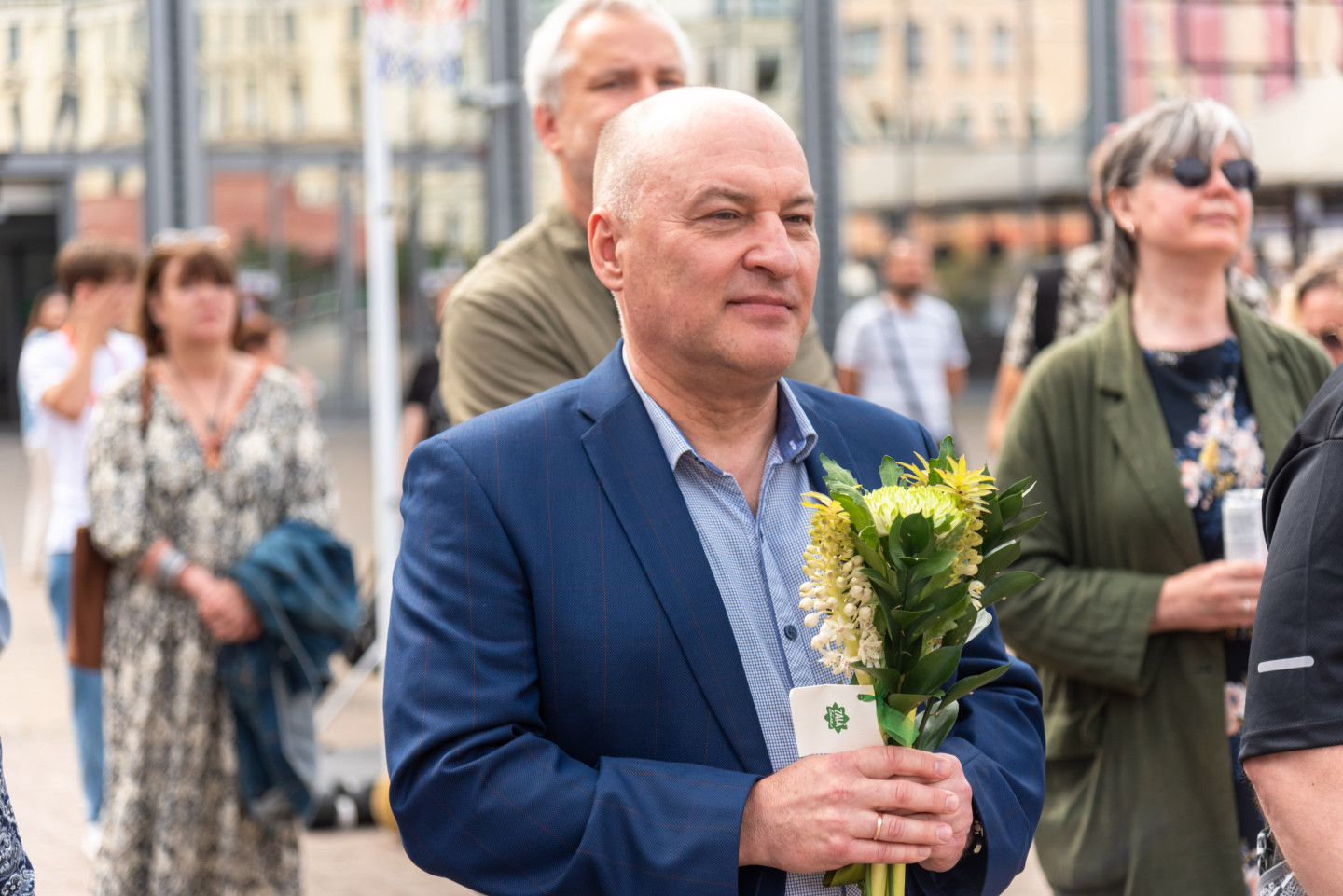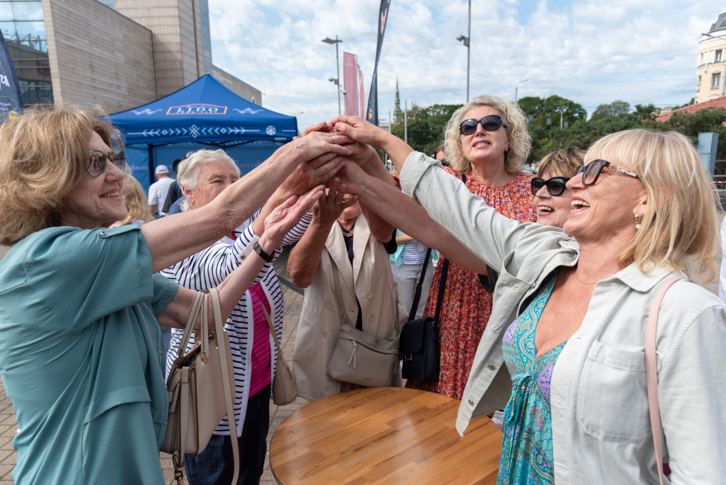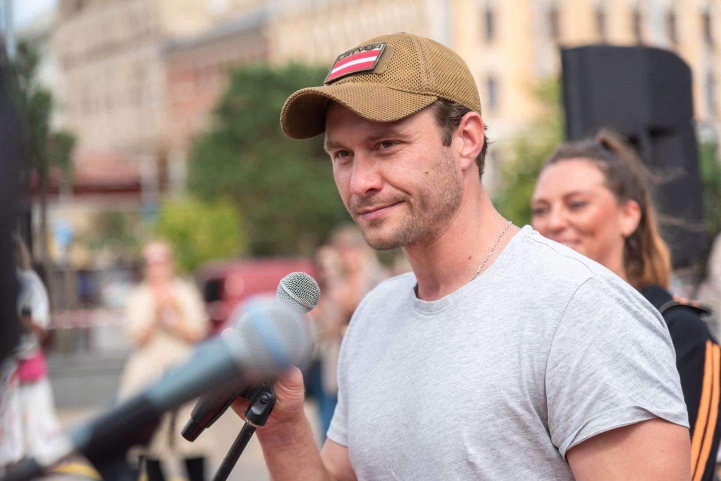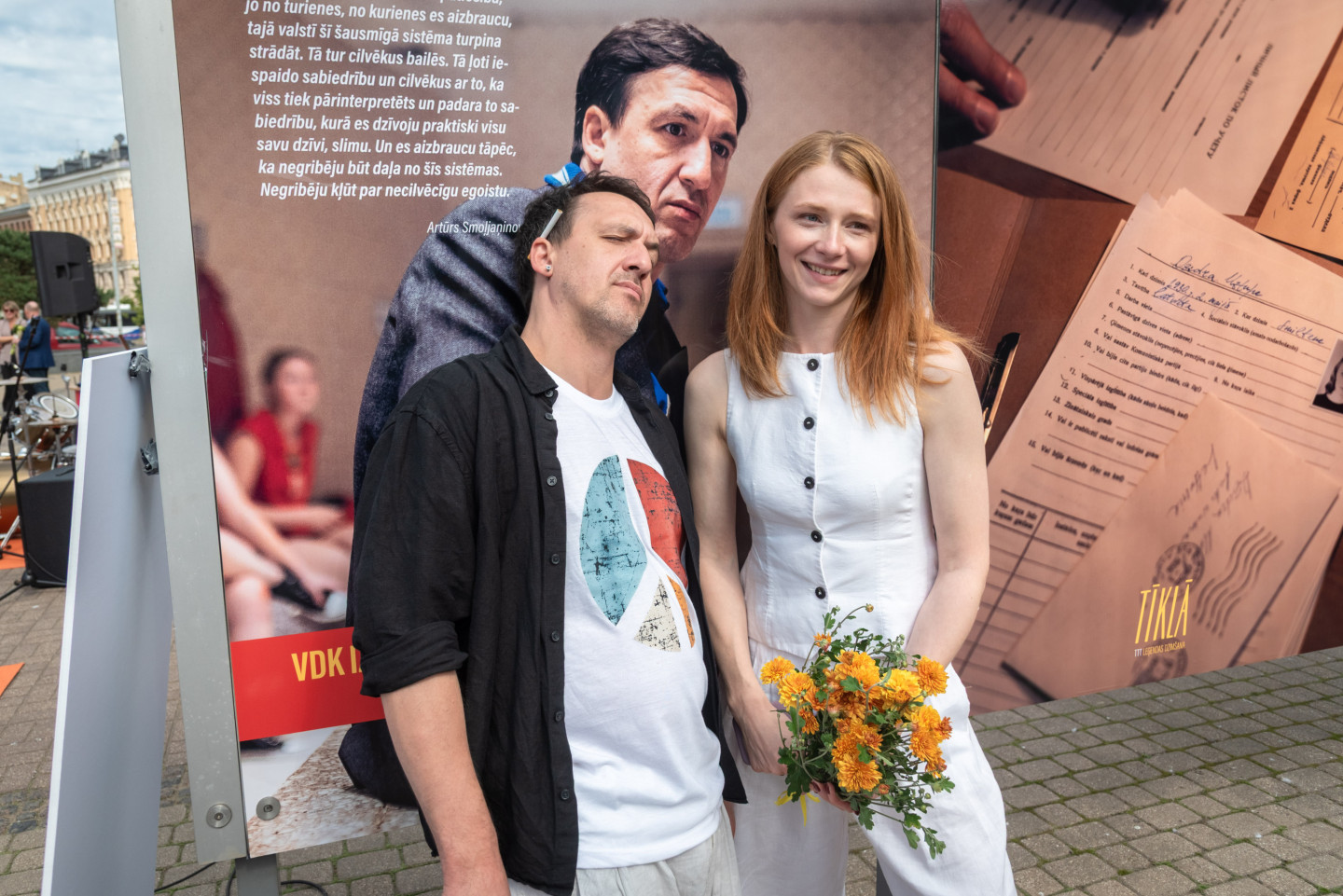 Basketbola komandas "TTT Rīga" un spēlfilmas "Tīklā. TTT leģendas dzimšana" fotoizstādes atklāšanas pasākums Stacijas laukumā.