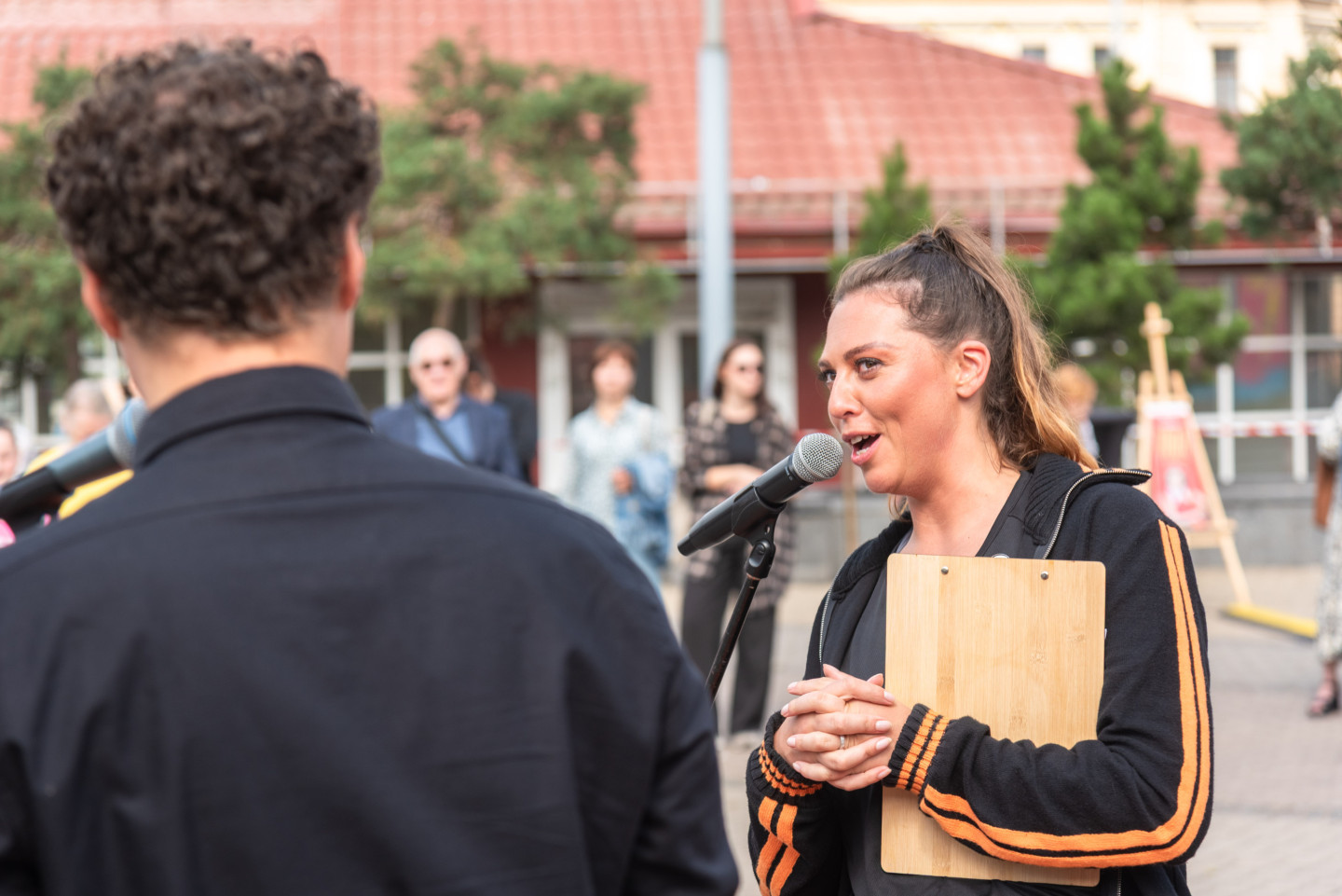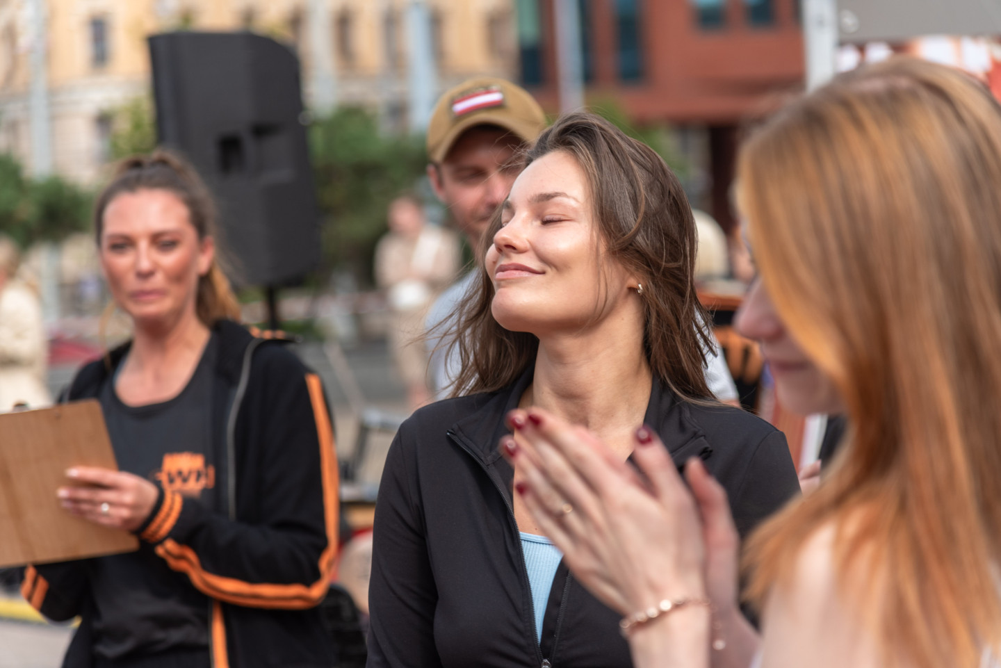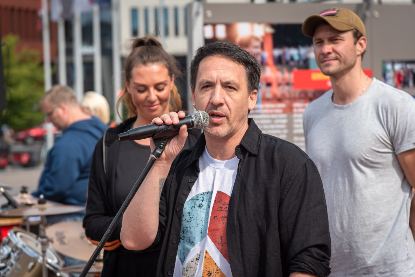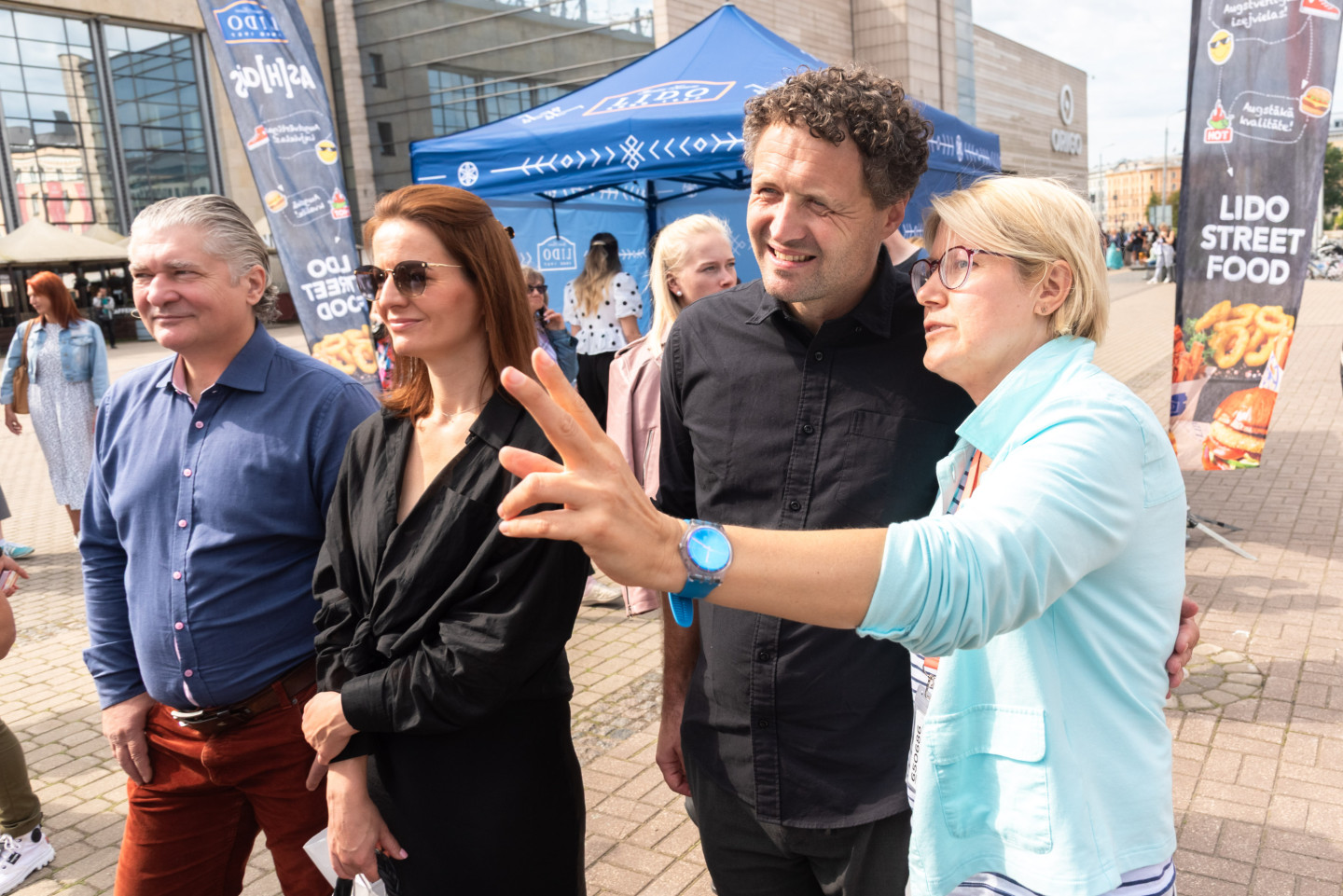 Basketbola komandas "TTT Rīga" un spēlfilmas "Tīklā. TTT leģendas dzimšana" fotoizstādes atklāšanas pasākums Stacijas laukumā.