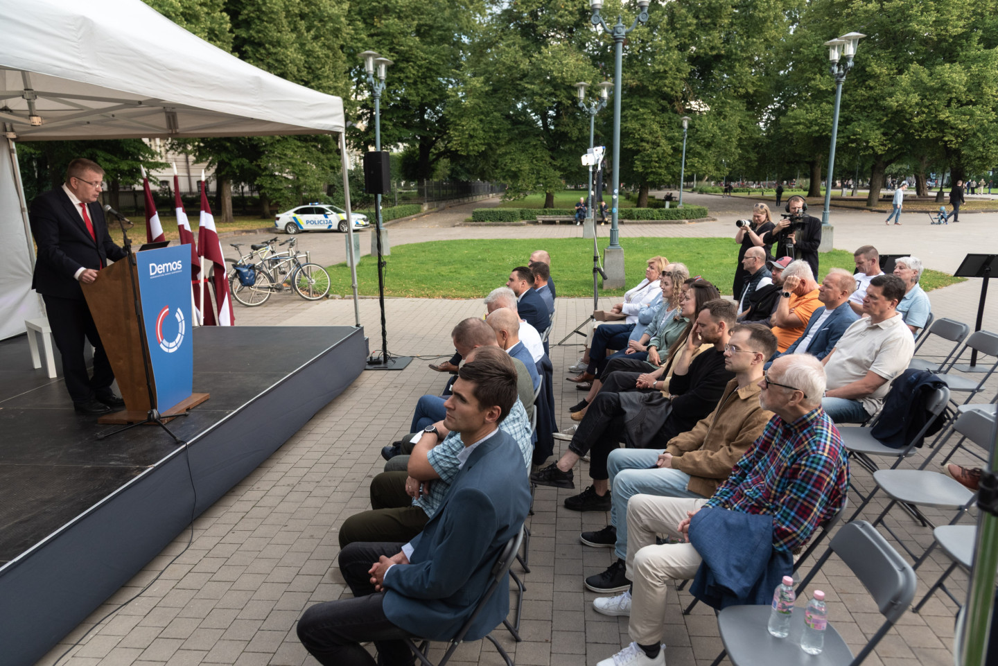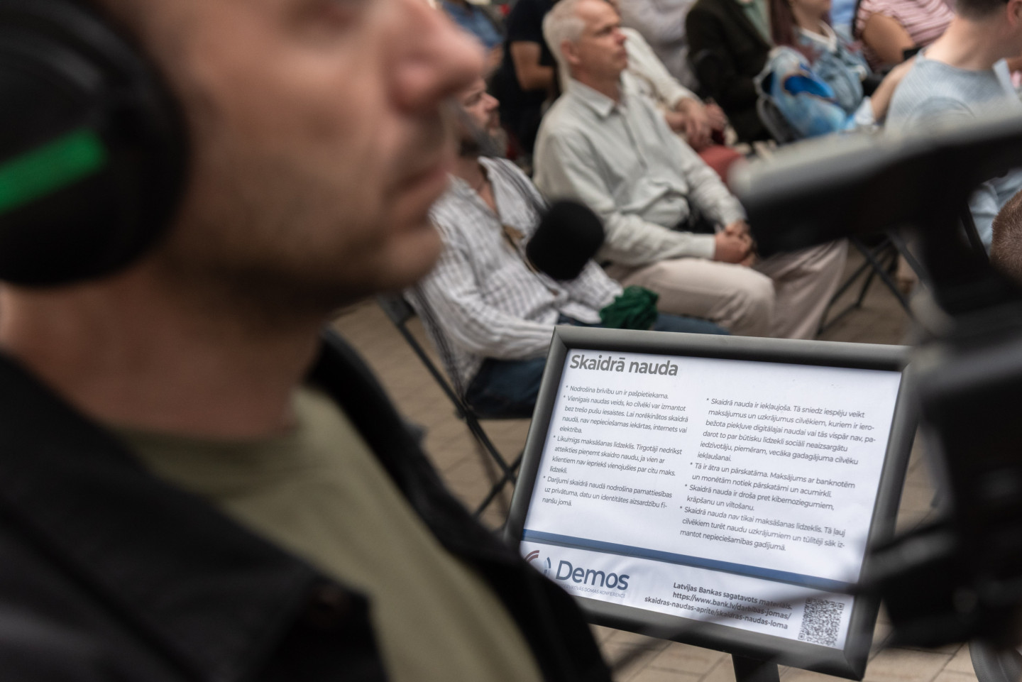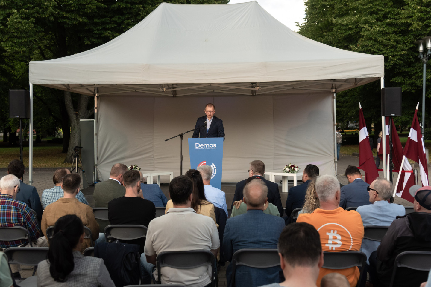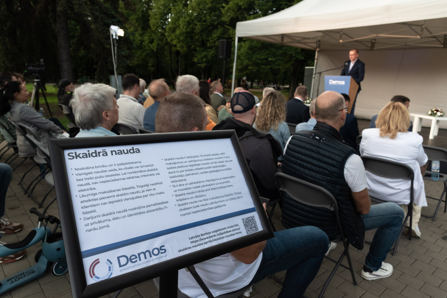 Esplanādē notiekošajā sapulcē "Skaidra valoda par skaidru naudu un brīvību" piedalās vairāki desmiti dalībnieku, tostarp arī zemkopības ministrs un Saeimas opozīcijas deputāti, visiem iestājoties pret ieceri ierobežot skaidras naudas apriti.