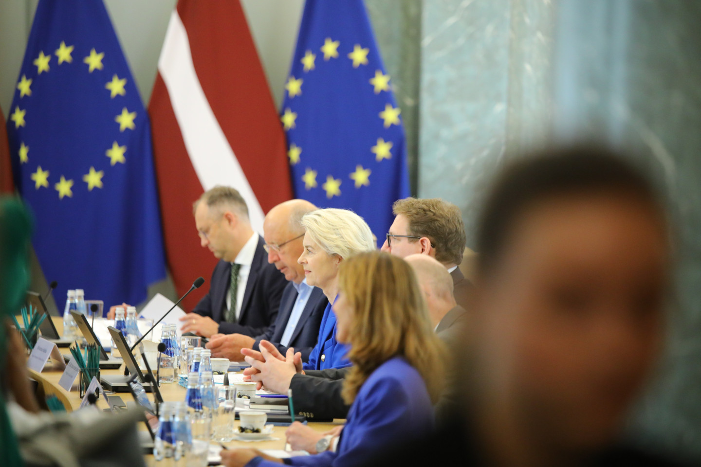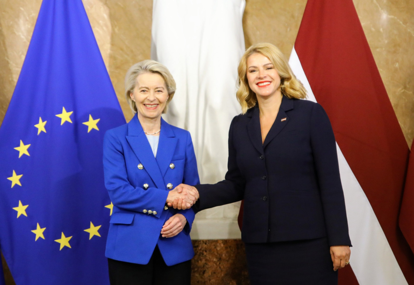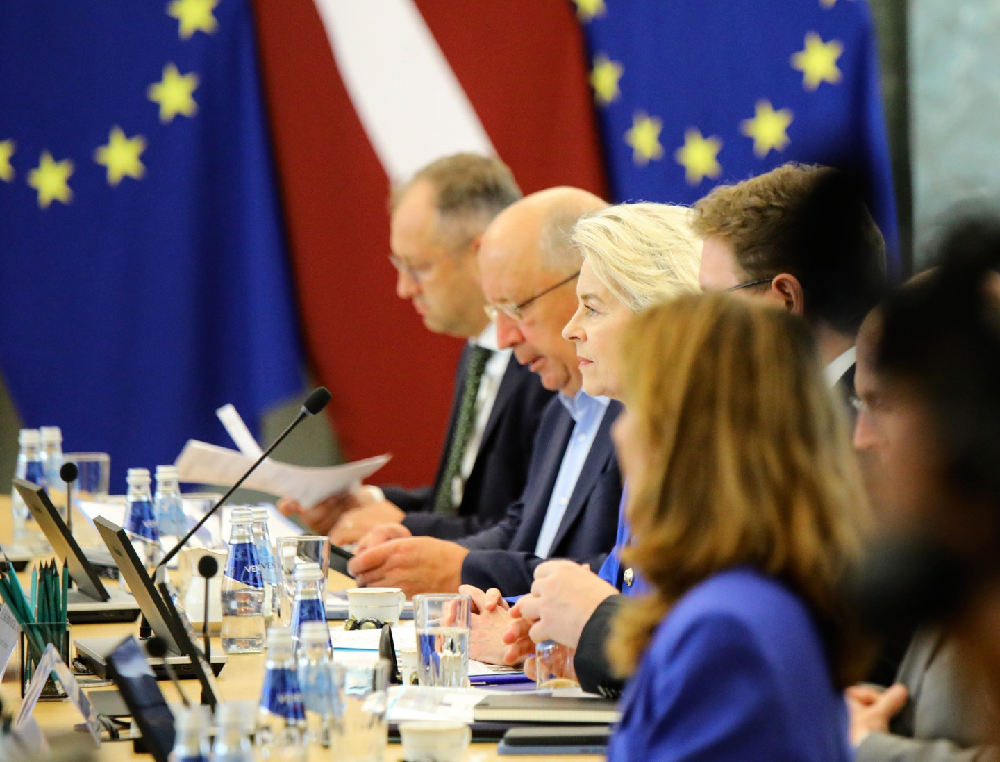 Šodien Latvijā ieradusies Eiropas Komisijas (EK) priekšsēdētāja Urzula fon der Leiena. Ar fon der Leienu tikās Ministru prezidente Evika Siliņa (JV).