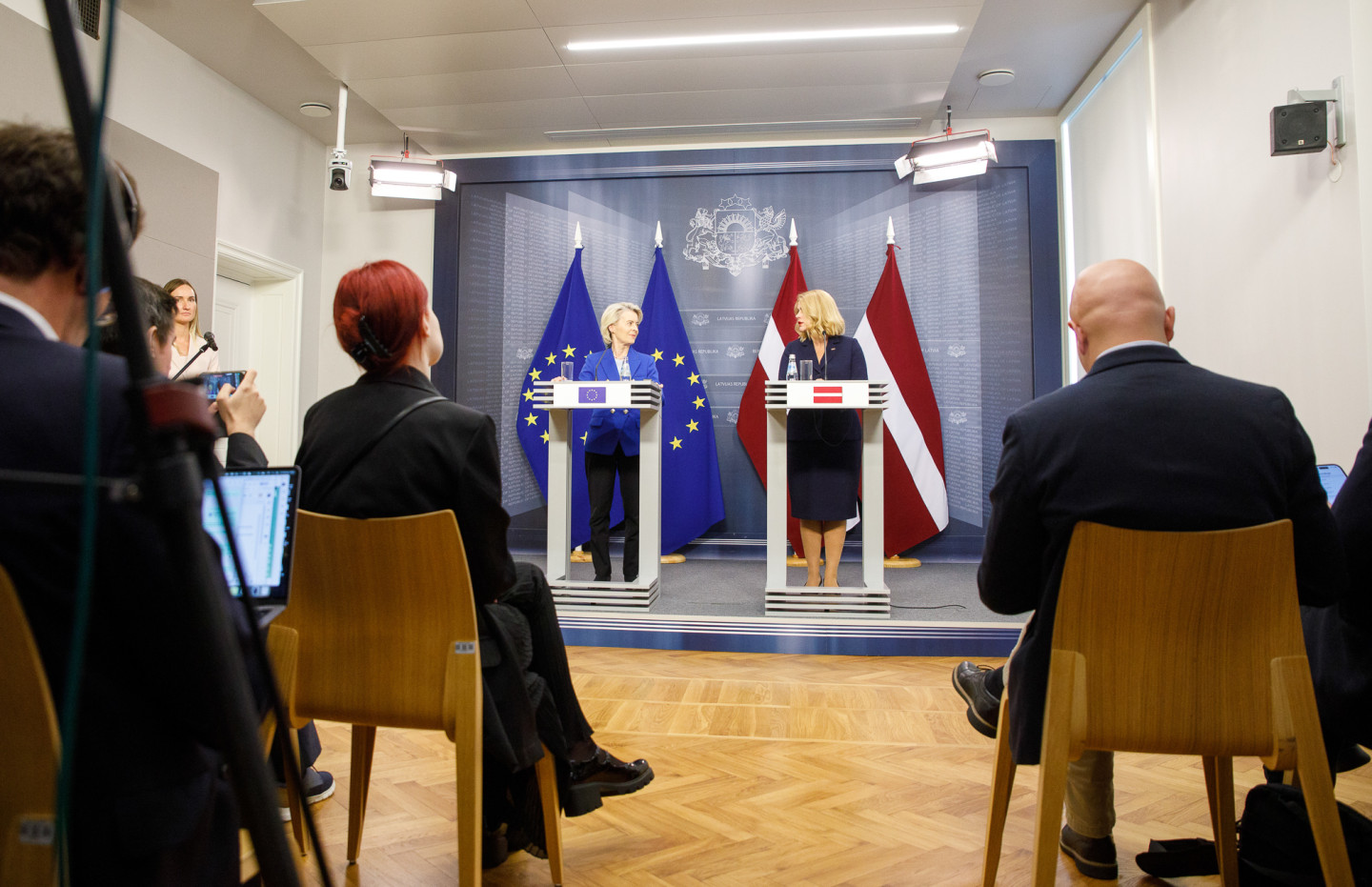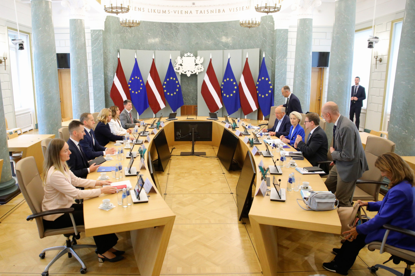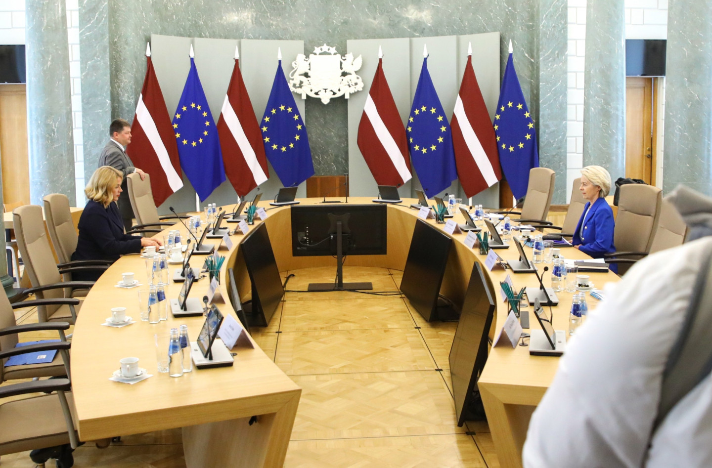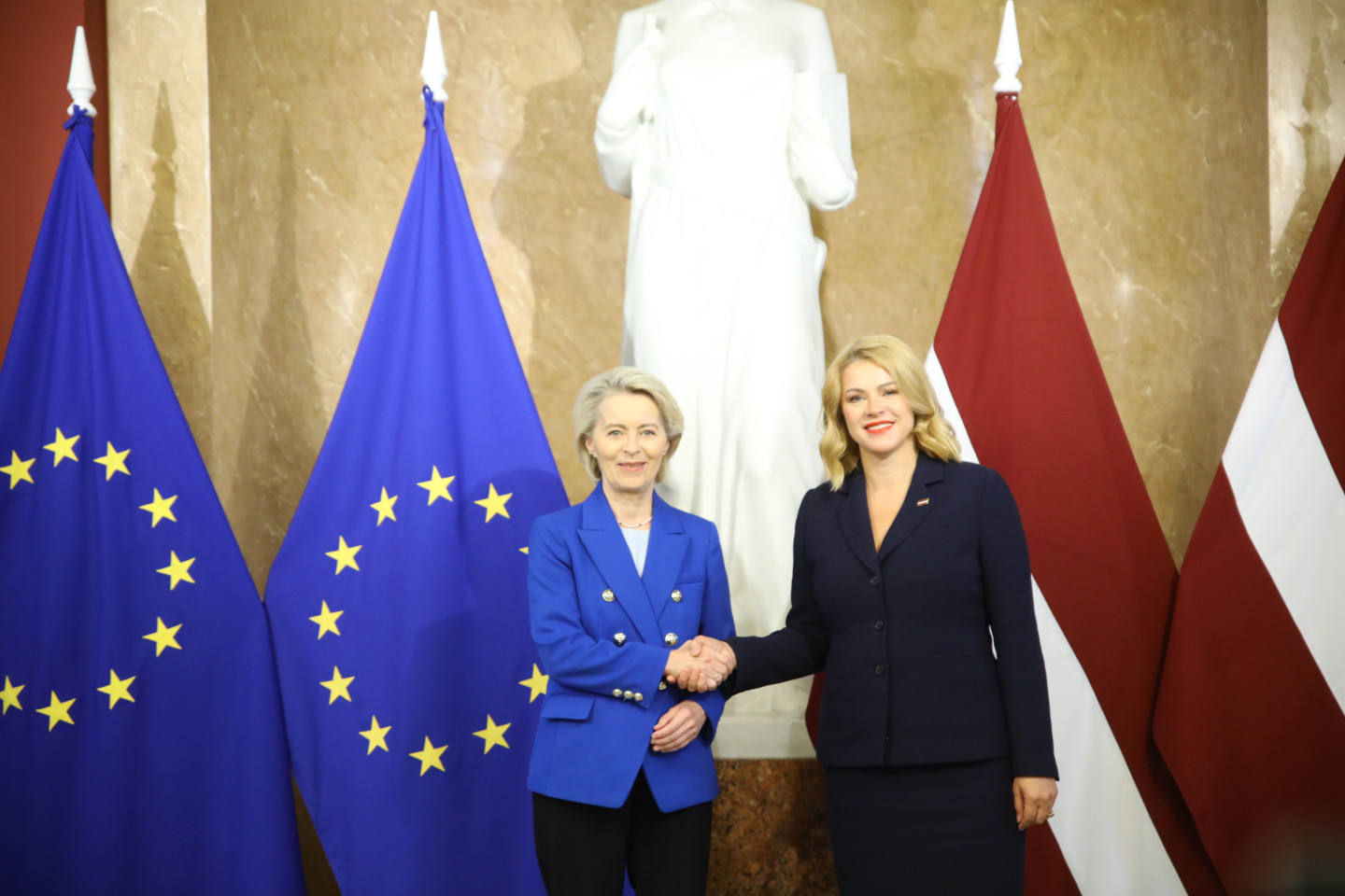 Šodien Latvijā ieradusies Eiropas Komisijas (EK) priekšsēdētāja Urzula fon der Leiena. Ar fon der Leienu tikās Ministru prezidente Evika Siliņa (JV).