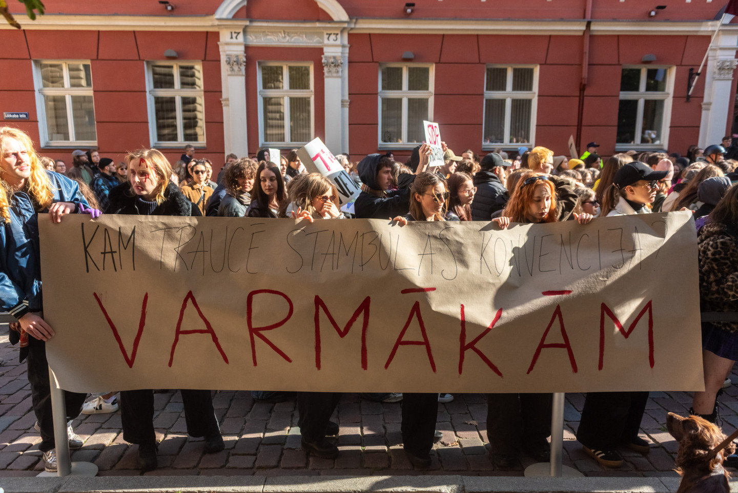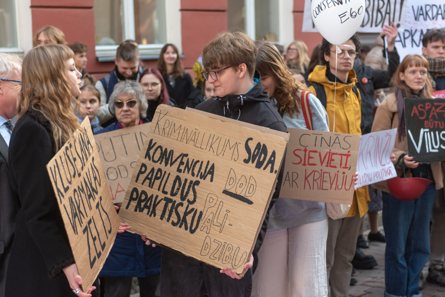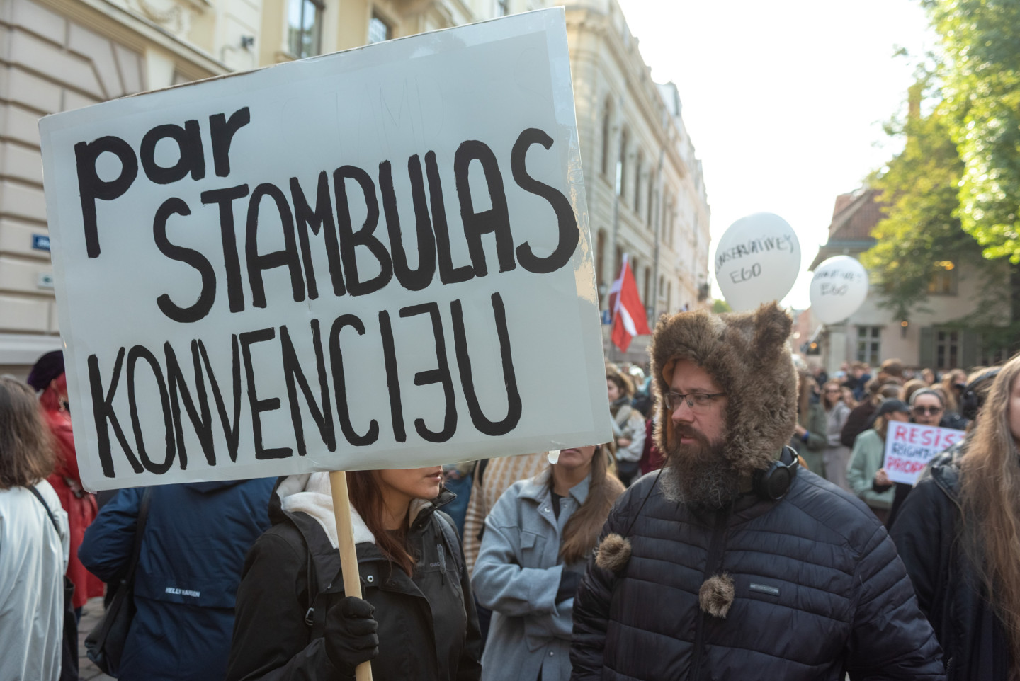 Nevalstiskās organizācijas pie Saeimas ēkas organizē protestu pret Latvijas iespējamo izstāšanos no Eiropas Padomes konvencijas par vardarbības pret sievietēm un vardarbības ģimenē novēršanu un apkarošanu