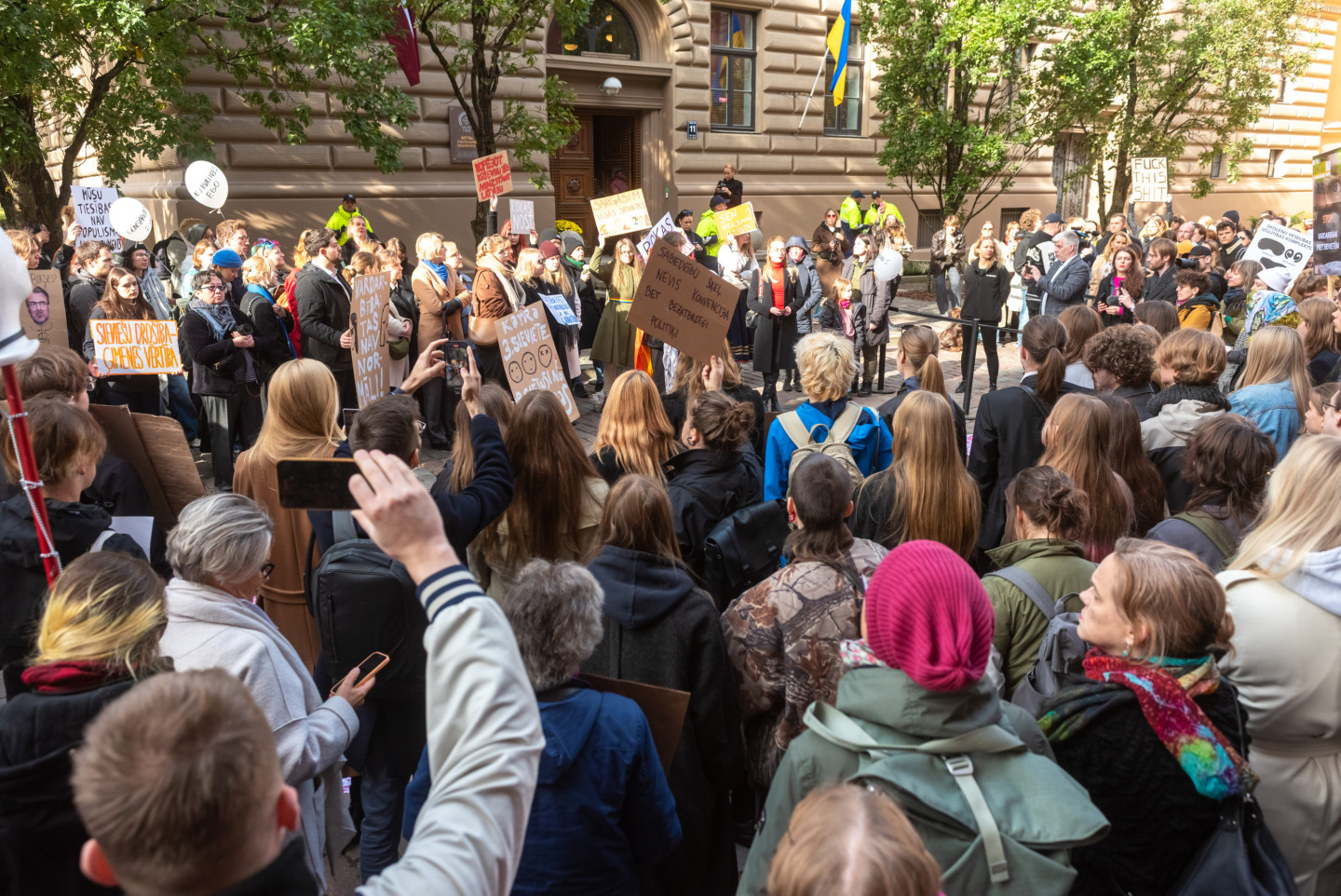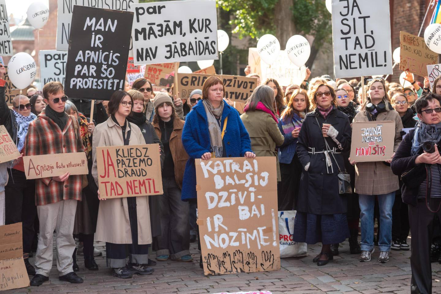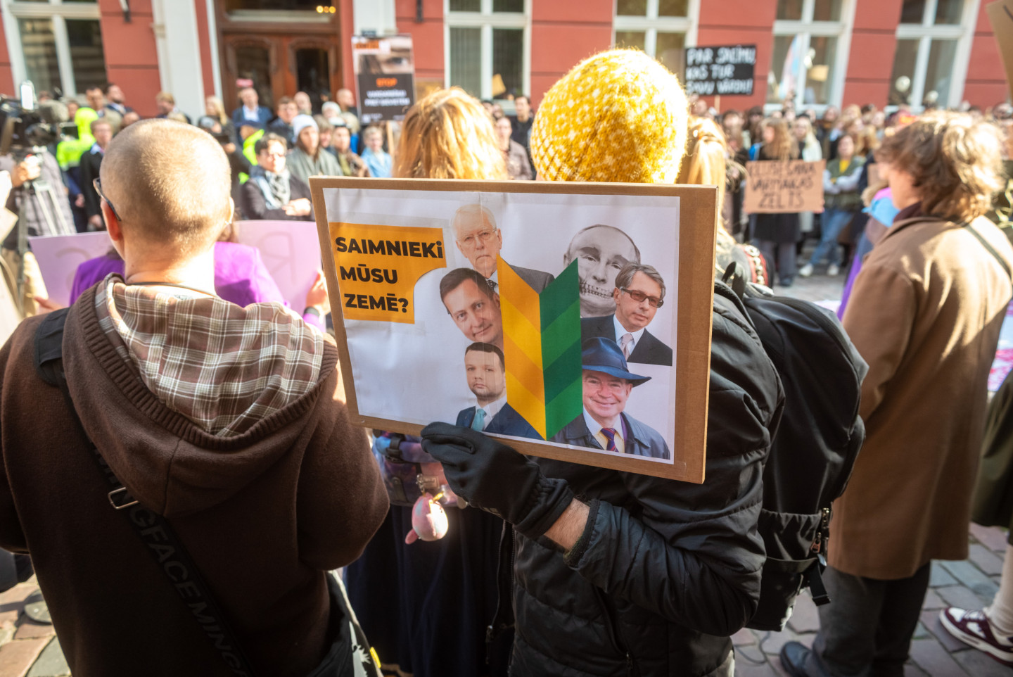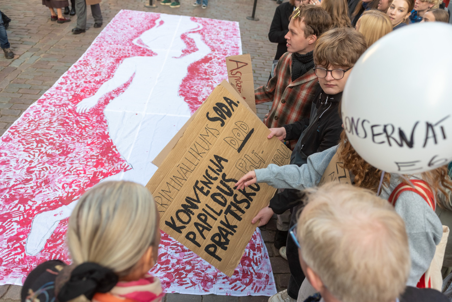 Nevalstiskās organizācijas pie Saeimas ēkas organizē protestu pret Latvijas iespējamo izstāšanos no Eiropas Padomes konvencijas par vardarbības pret sievietēm un vardarbības ģimenē novēršanu un apkarošanu