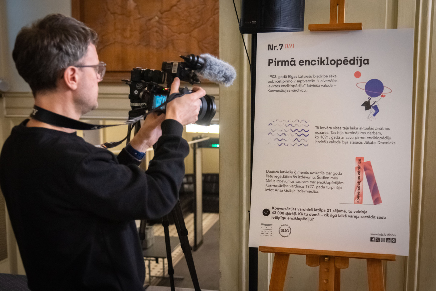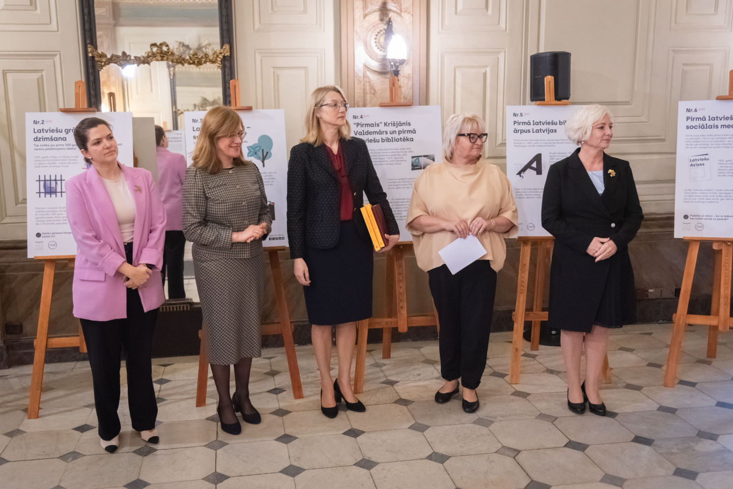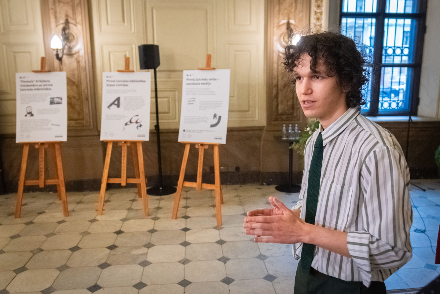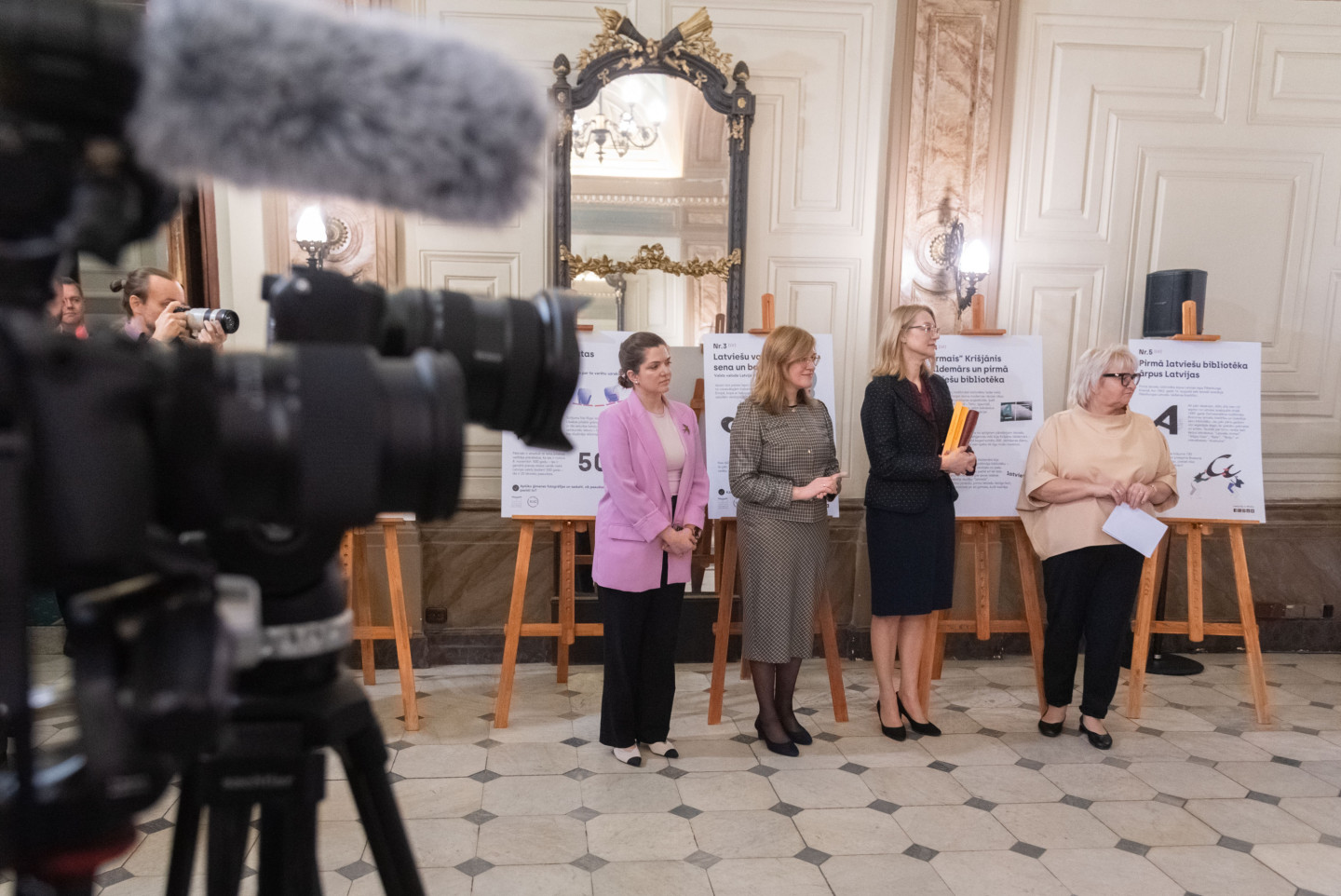 Atzīmējot latviešu grāmatniecības 500 gadus un Valsts valodas dienu, Saeimā atklāja tematisku plakātu izstādi "Latviešu grāmatai 500"