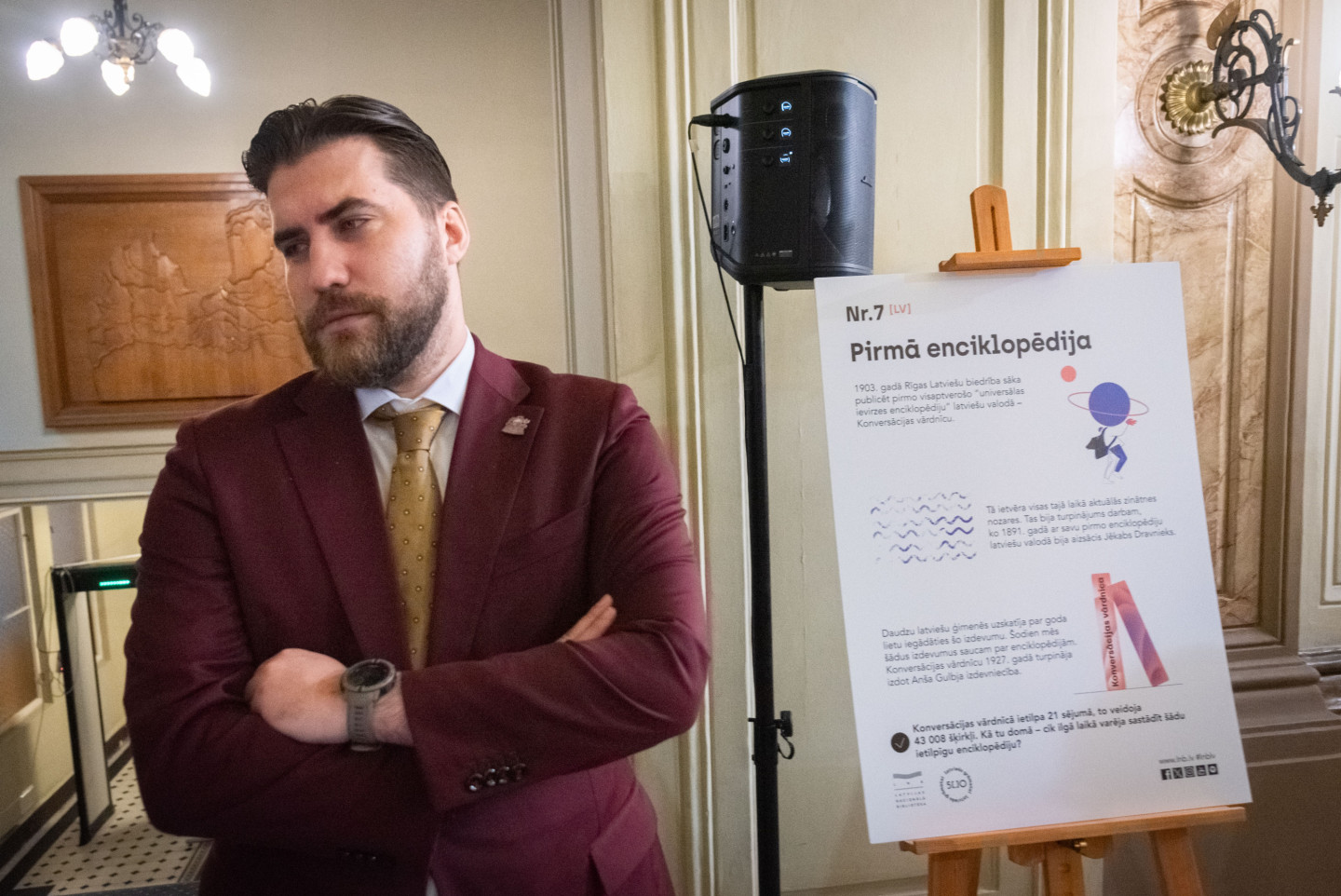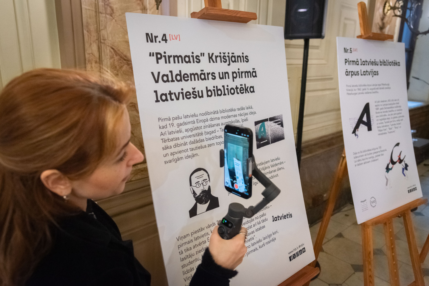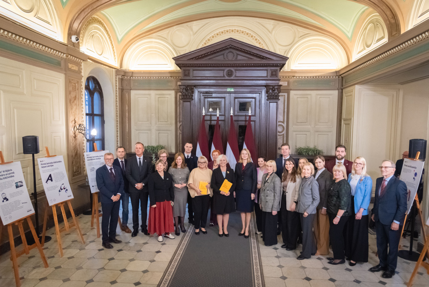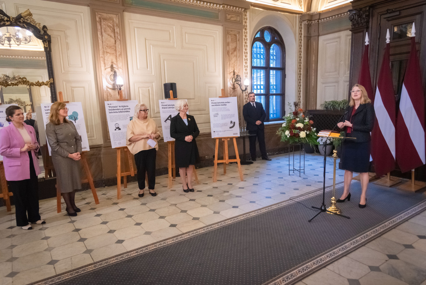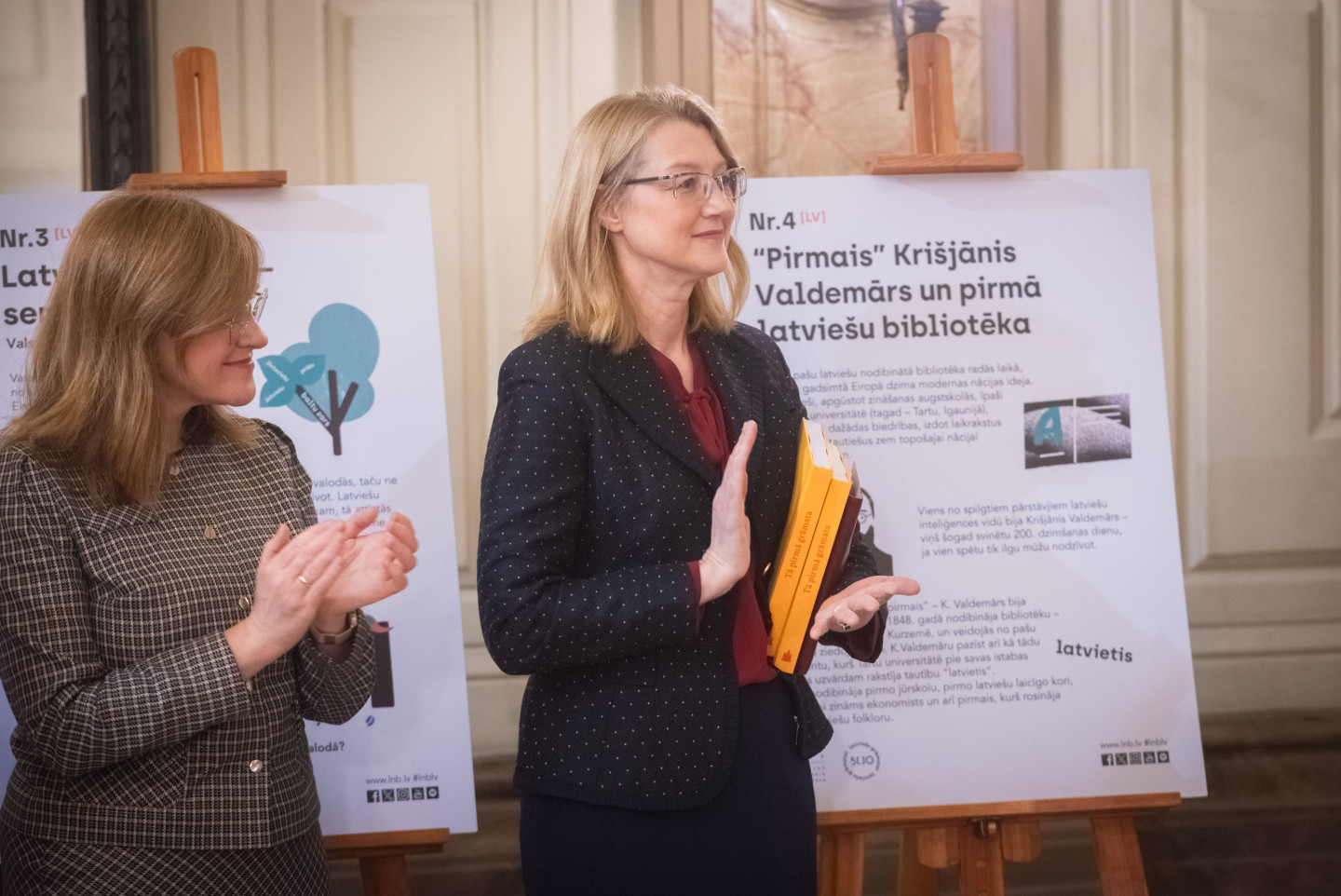 Atzīmējot latviešu grāmatniecības 500 gadus un Valsts valodas dienu, Saeimā atklāja tematisku plakātu izstādi "Latviešu grāmatai 500"