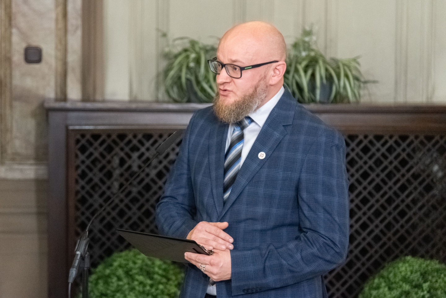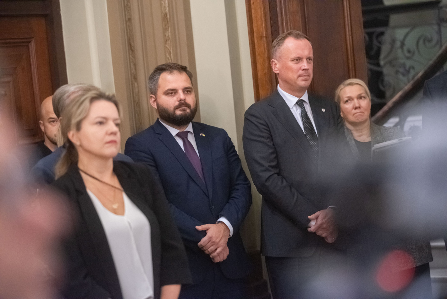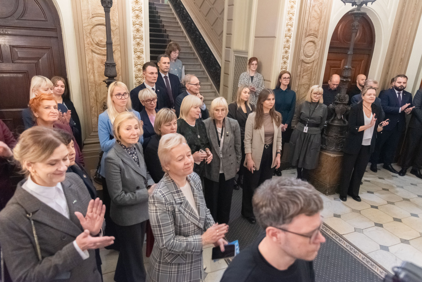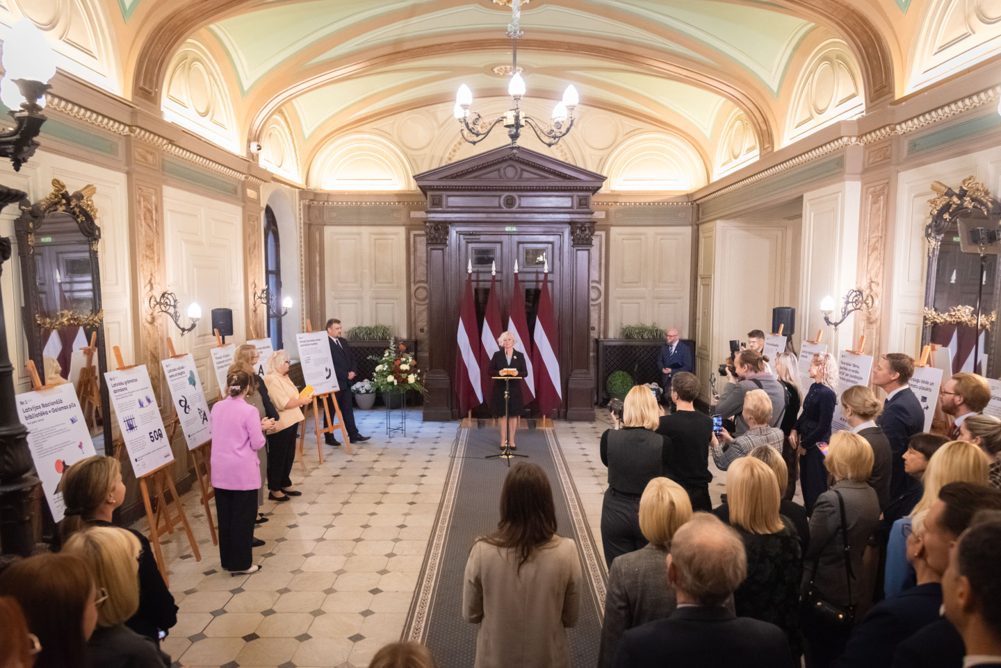 Atzīmējot latviešu grāmatniecības 500 gadus un Valsts valodas dienu, Saeimā atklāja tematisku plakātu izstādi "Latviešu grāmatai 500"