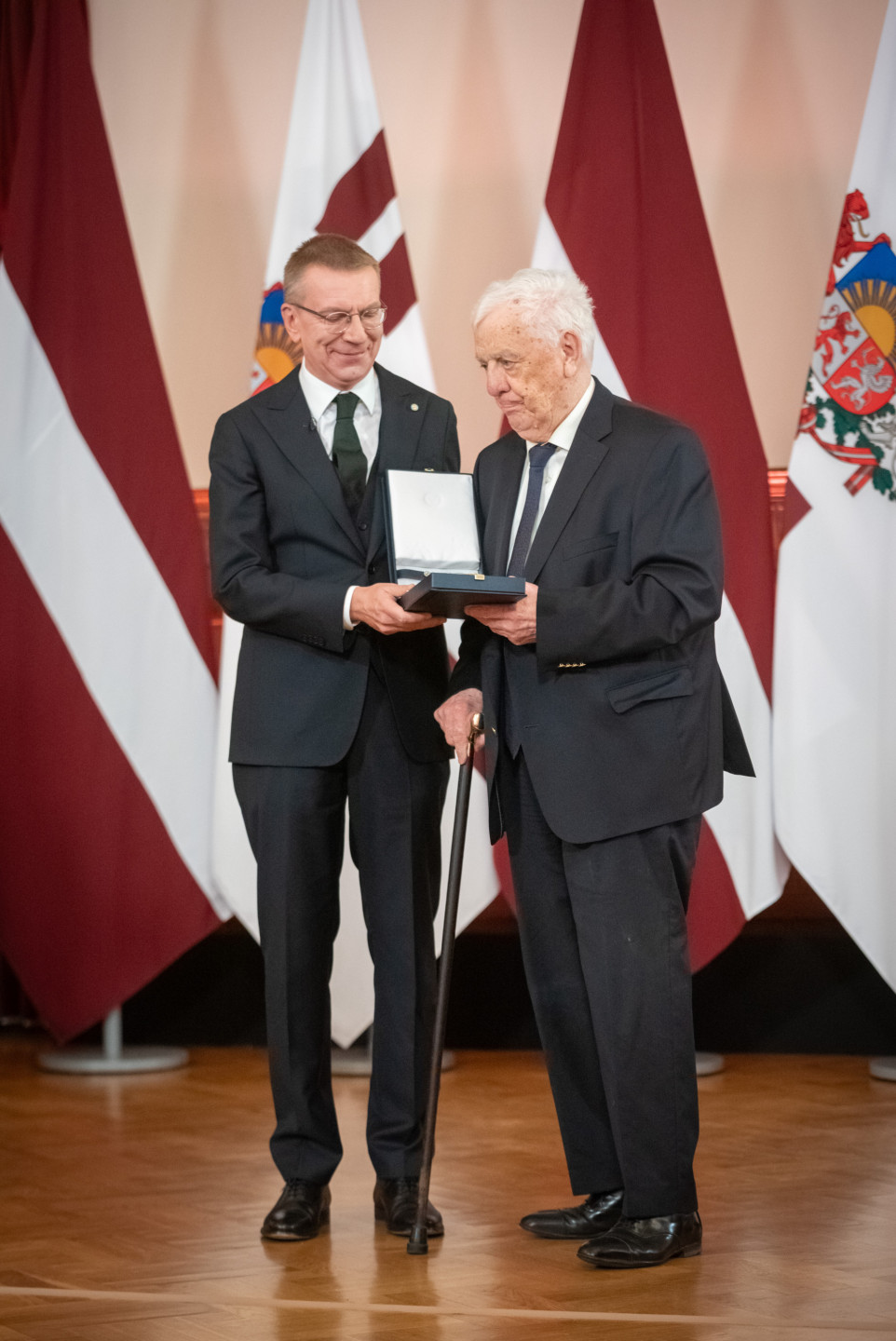 Valsts prezidents Edgars Rinkēvičs Latvijas Republikas proklamēšanas 107. gadadienā 33 personām pasniedzis valsts augstākos apbalvojumus. Par sevišķiem nopelniem Latvijas valsts labā Triju Zvaigžņu ordenis piešķirts un par ordeņa lielkrusta komandieri iecelts komponists un pianists Raimonds Pauls.
