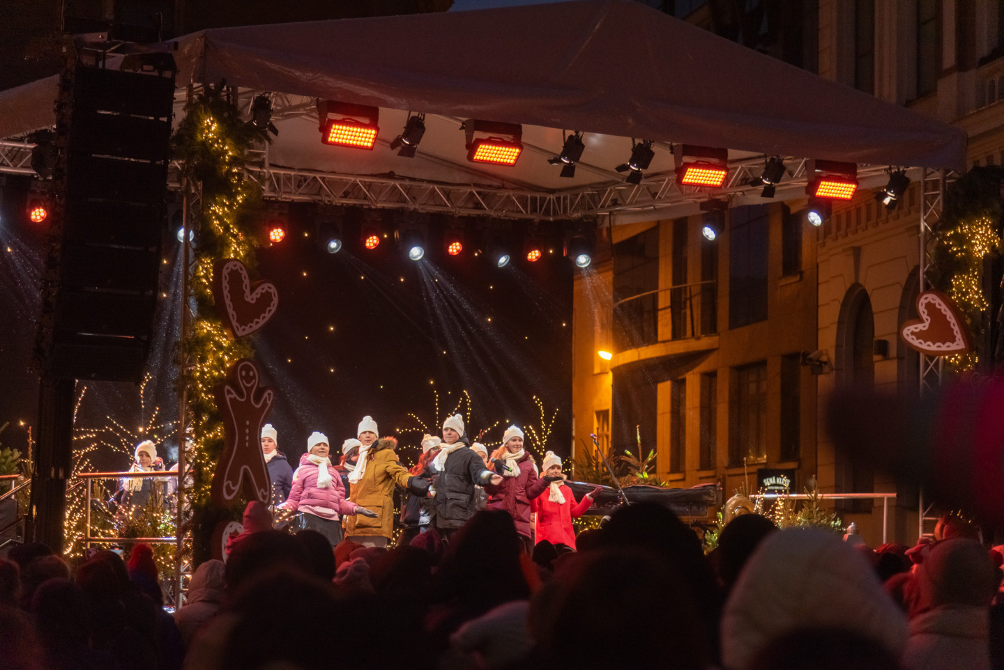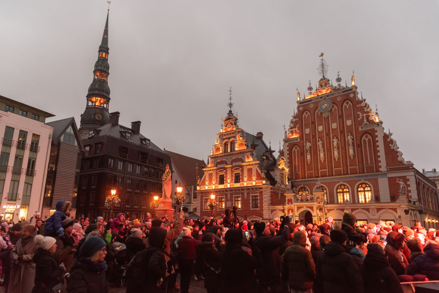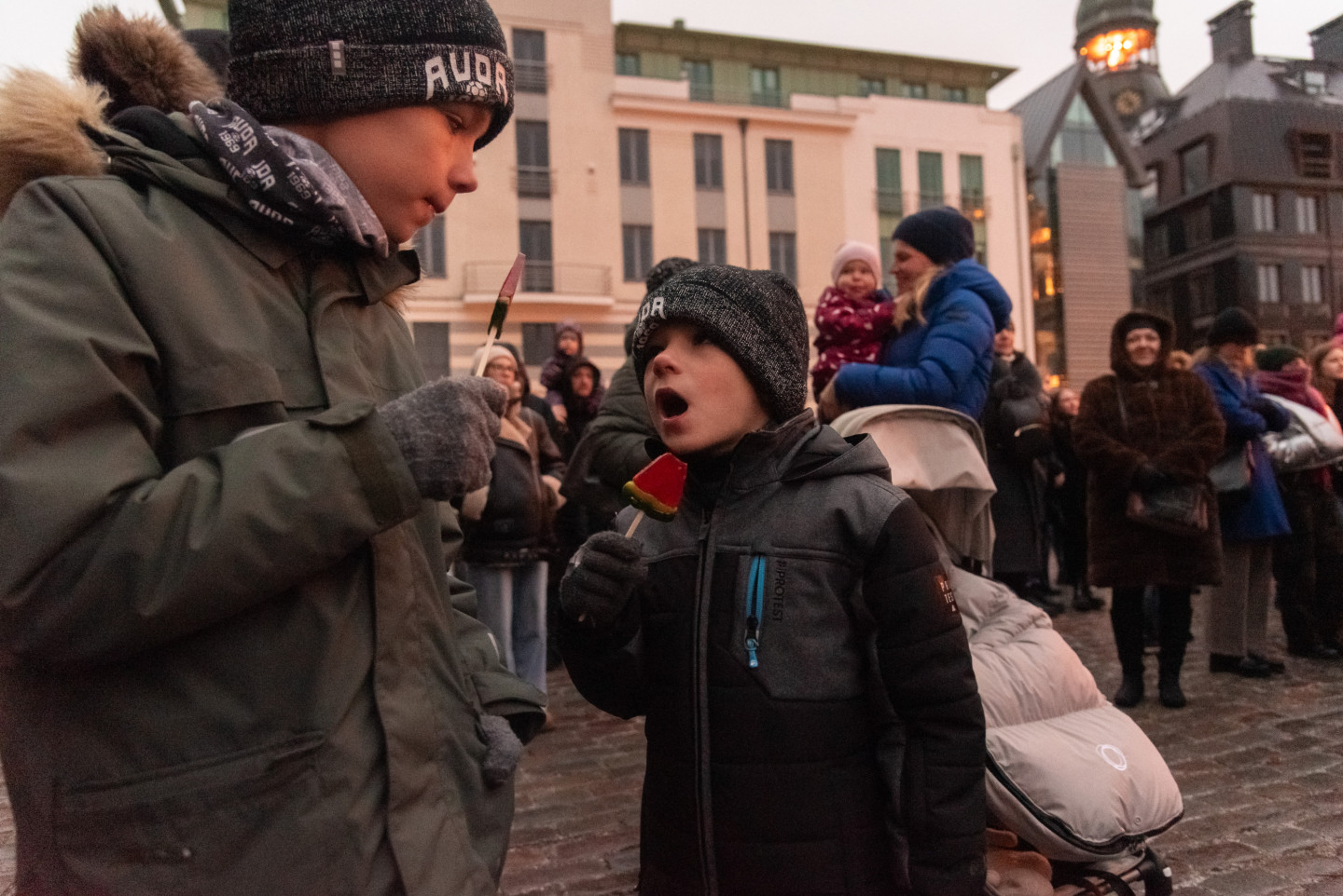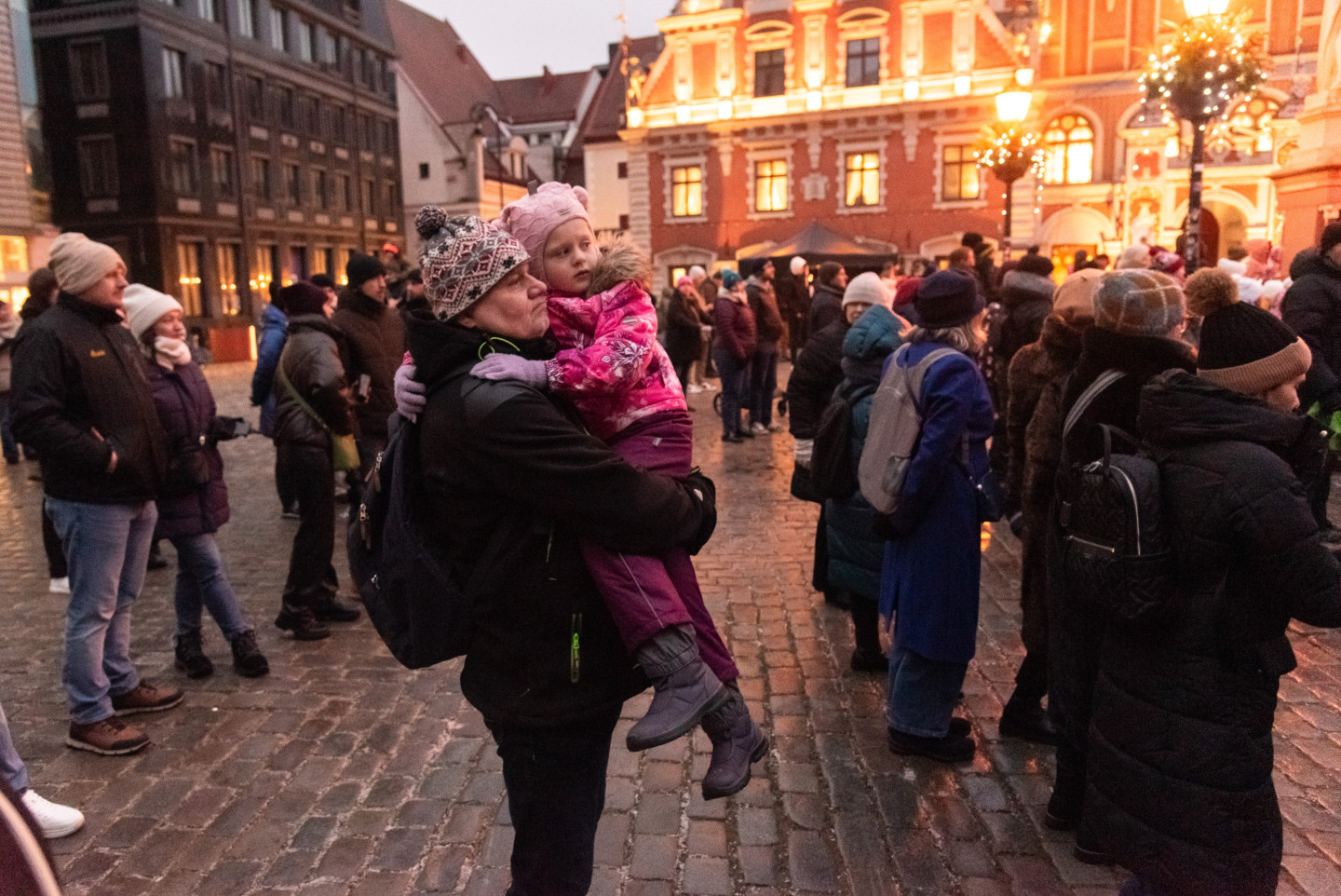 Rātslaukumā notiek pasākums, kura laikā iededz Rīgas Ziemassvētku egli. Pilns apskats,