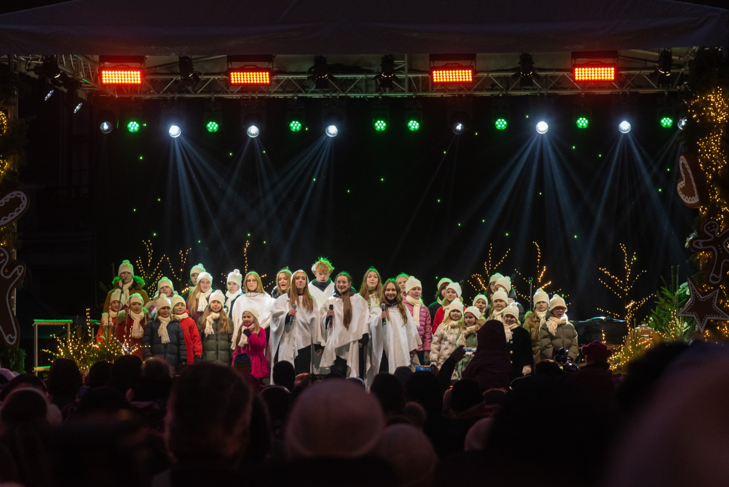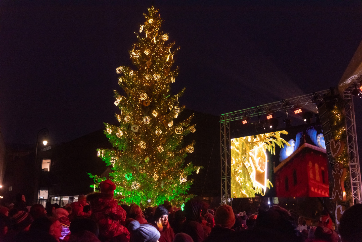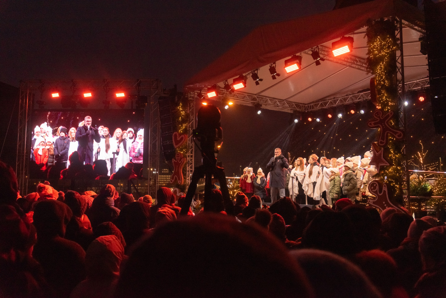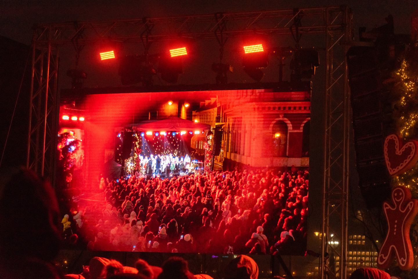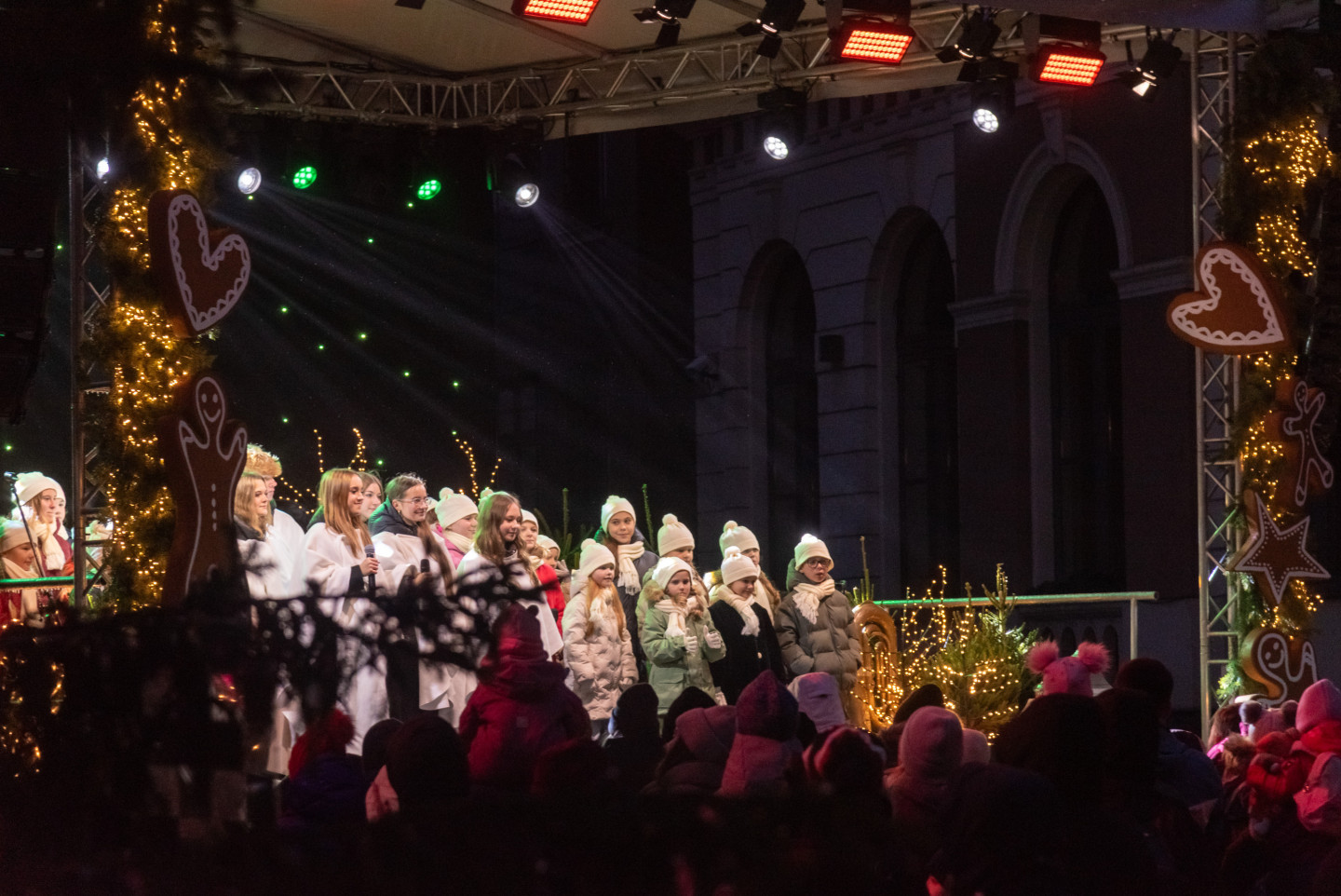 Rātslaukumā notiek pasākums, kura laikā iededz Rīgas Ziemassvētku egli. Pilns apskats,