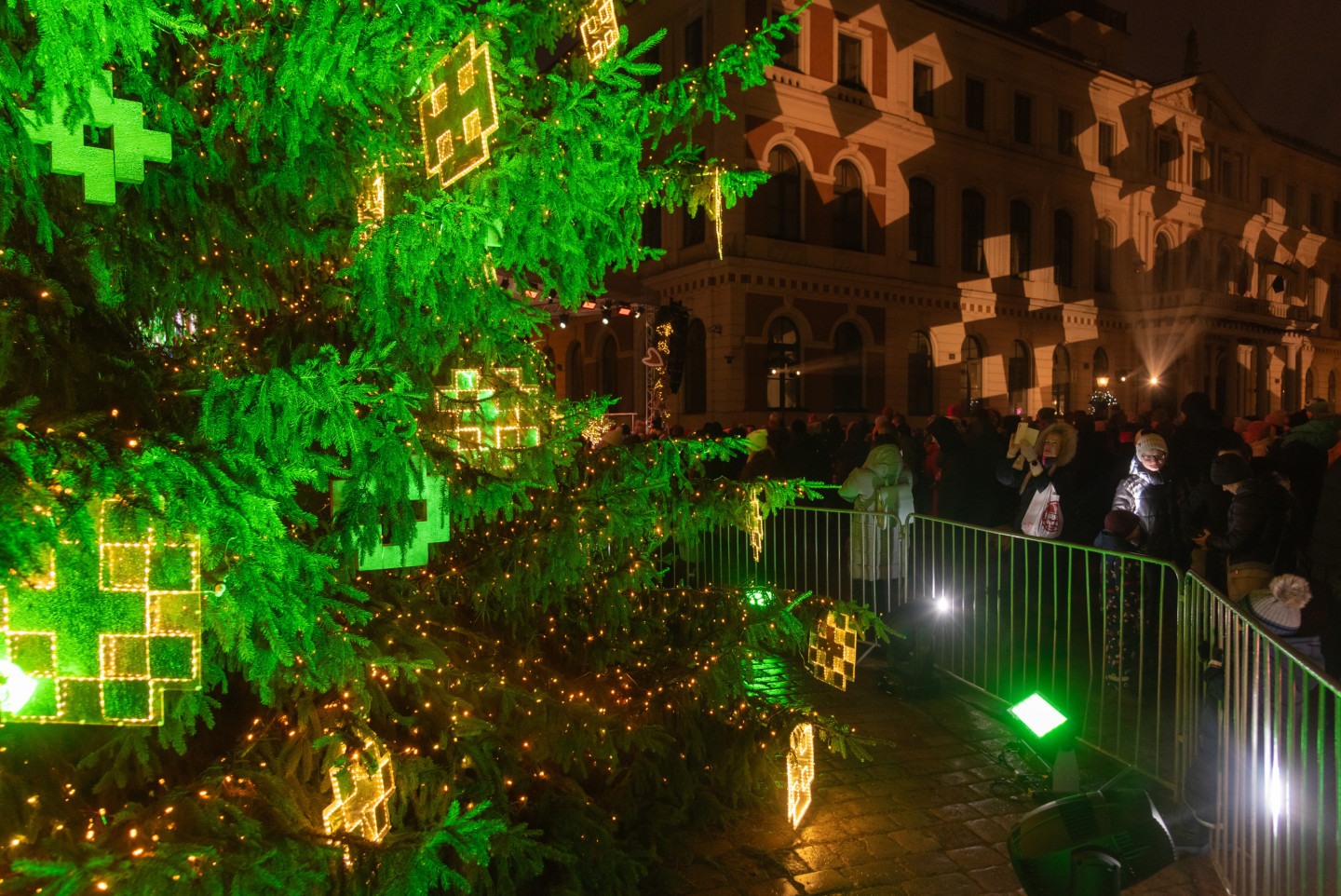 Rātslaukumā iededz Rīgas Ziemassvētku egli