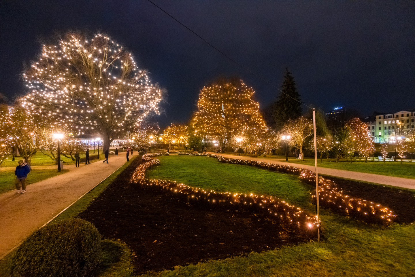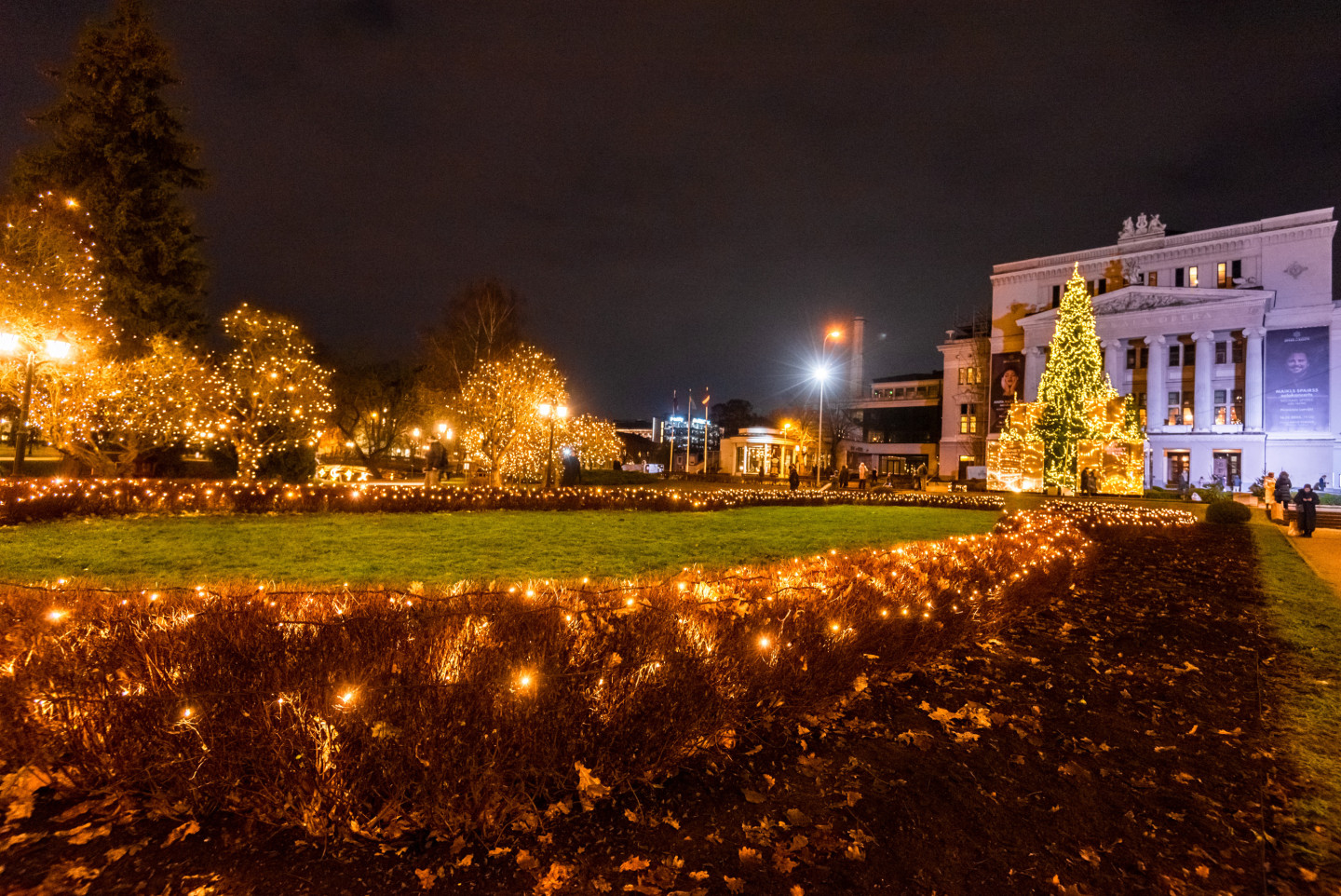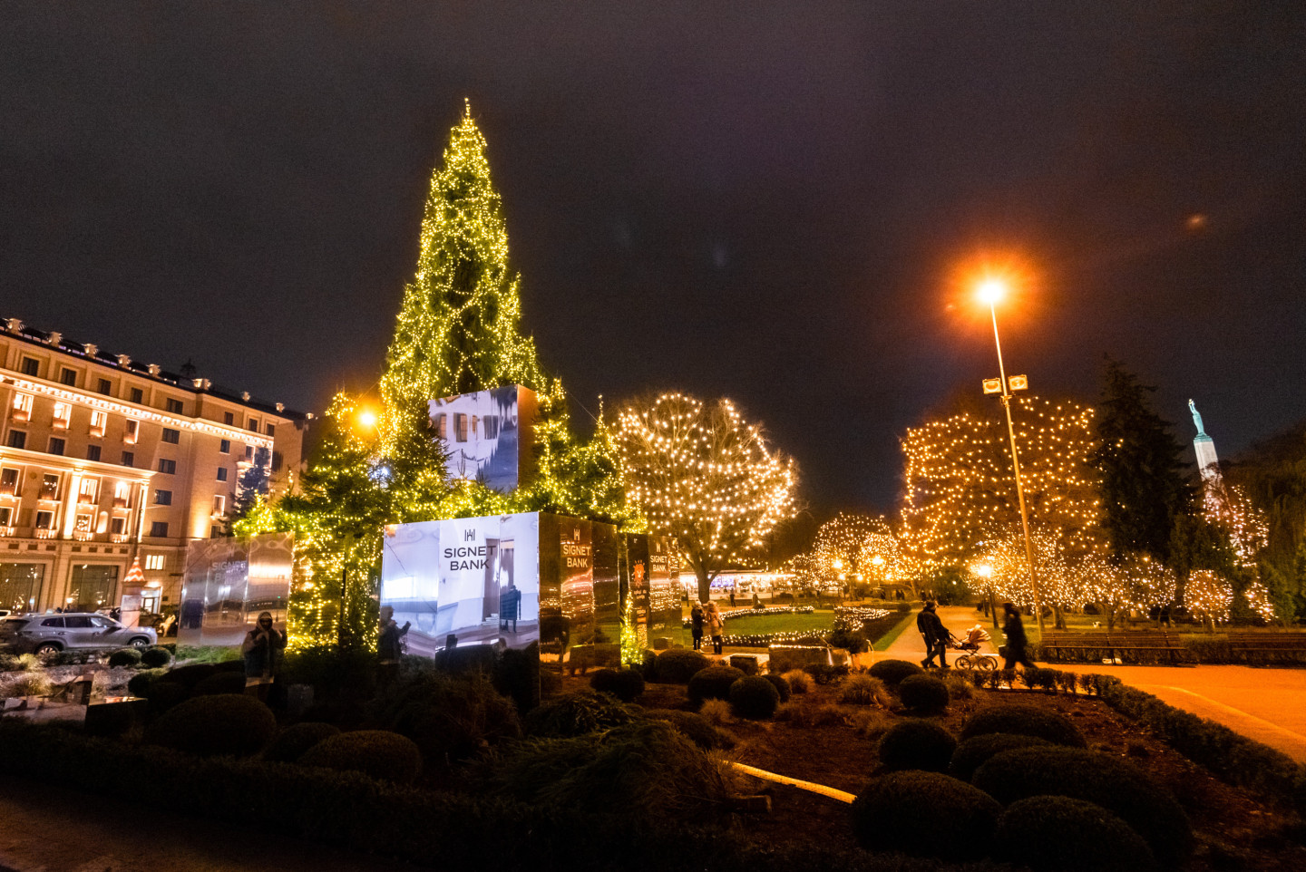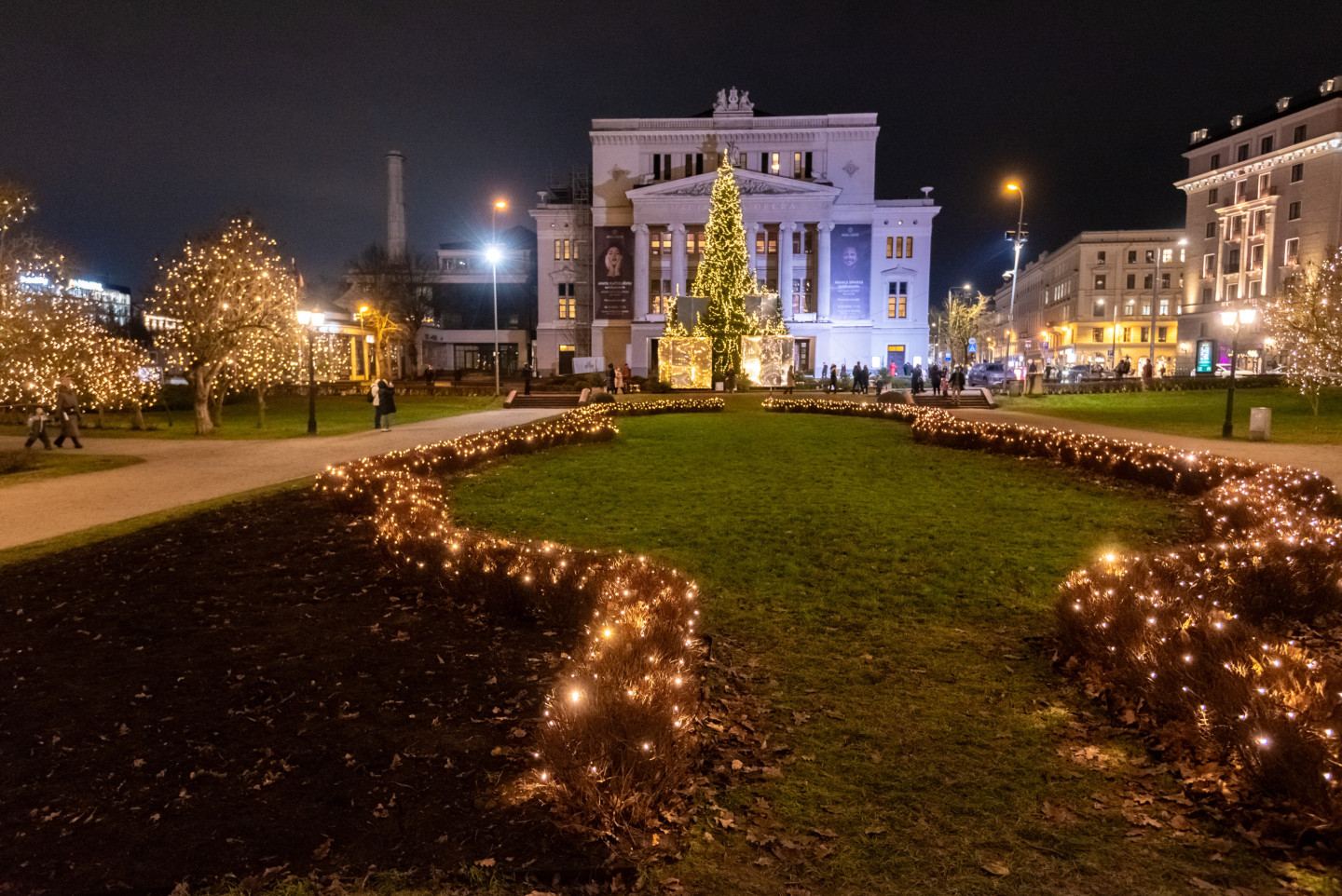 Izgaismots Bastejkalns un Operas skvērs svētku noskaņā