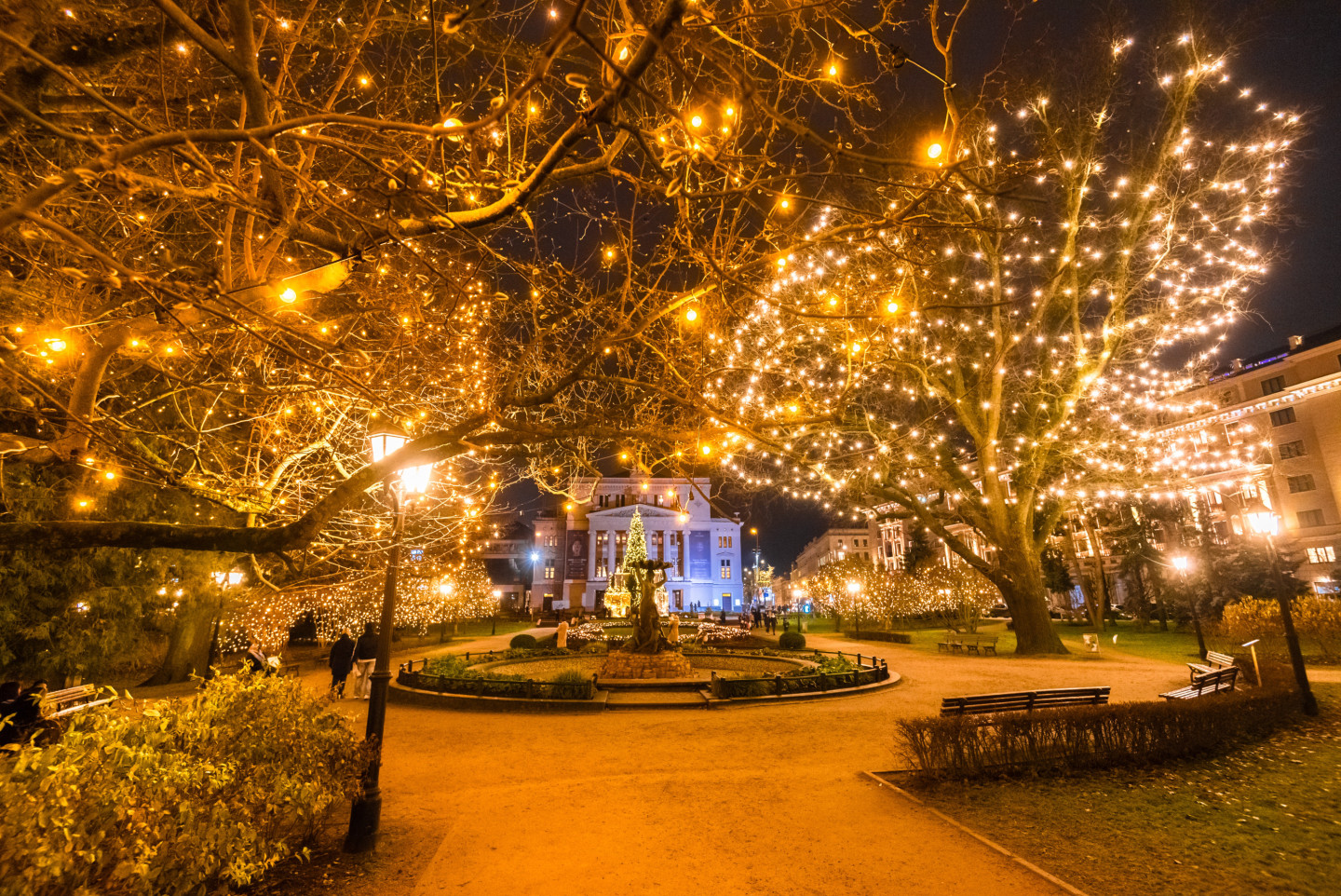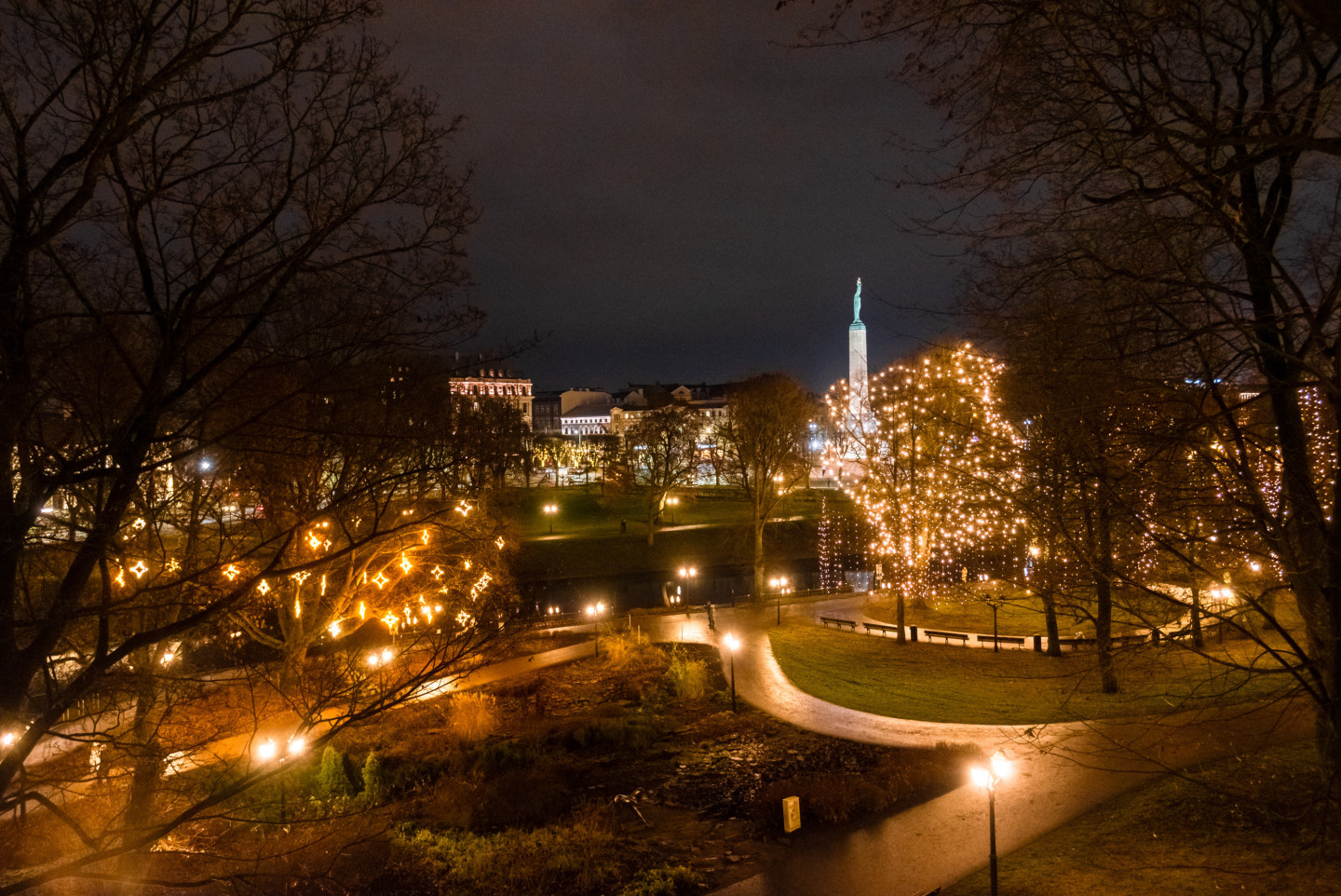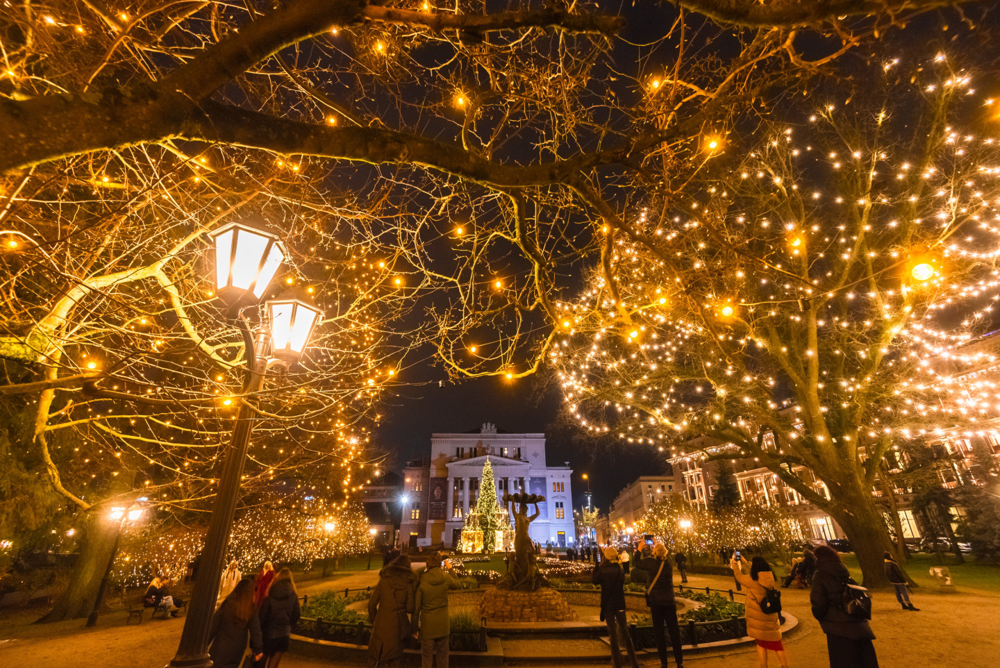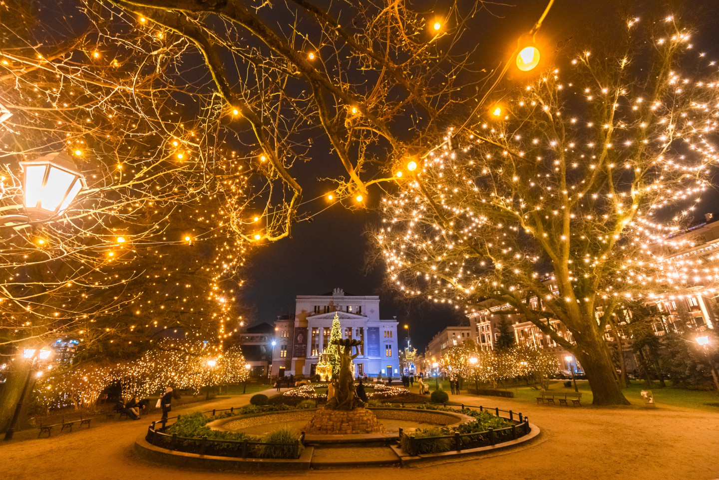 Izgaismots Bastejkalns un Operas skvērs svētku noskaņā