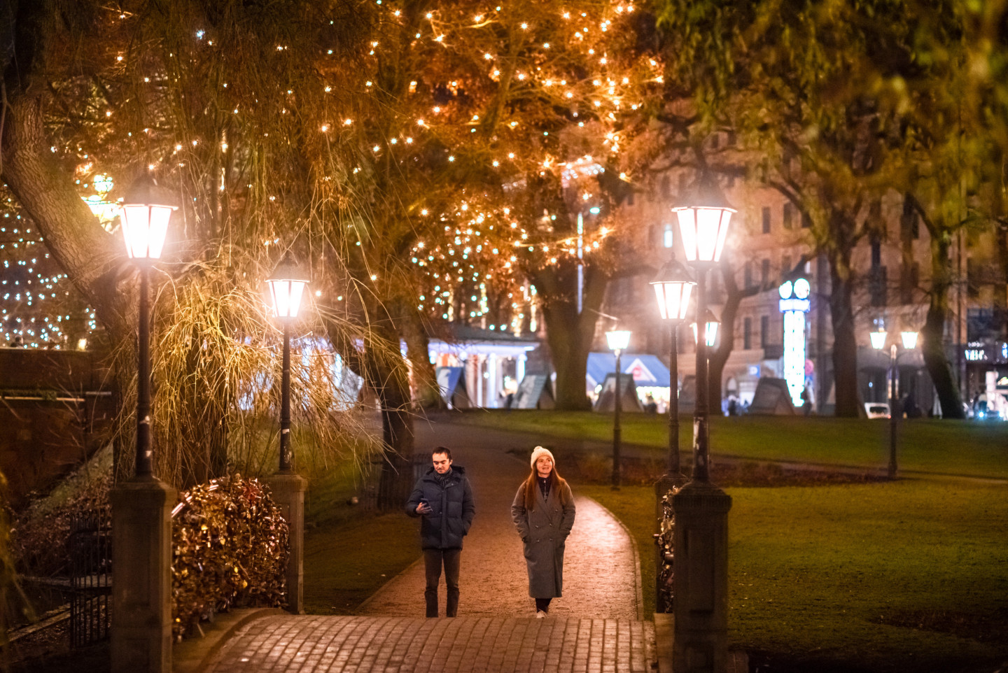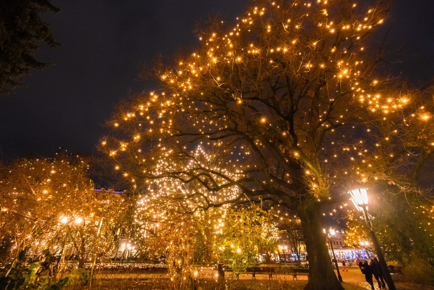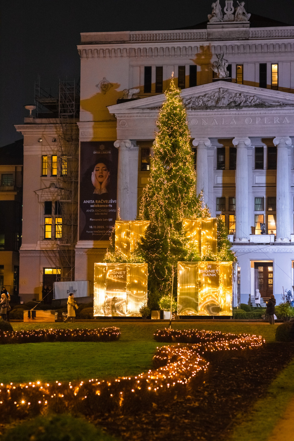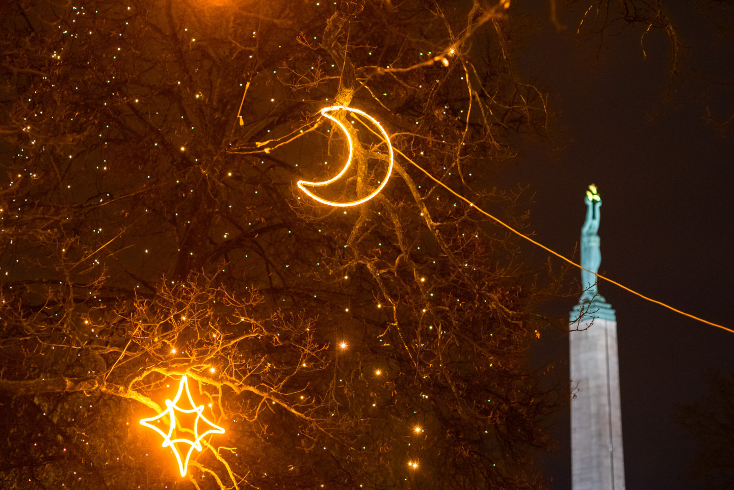 Izgaismots Bastejkalns un Operas skvērs svētku noskaņā