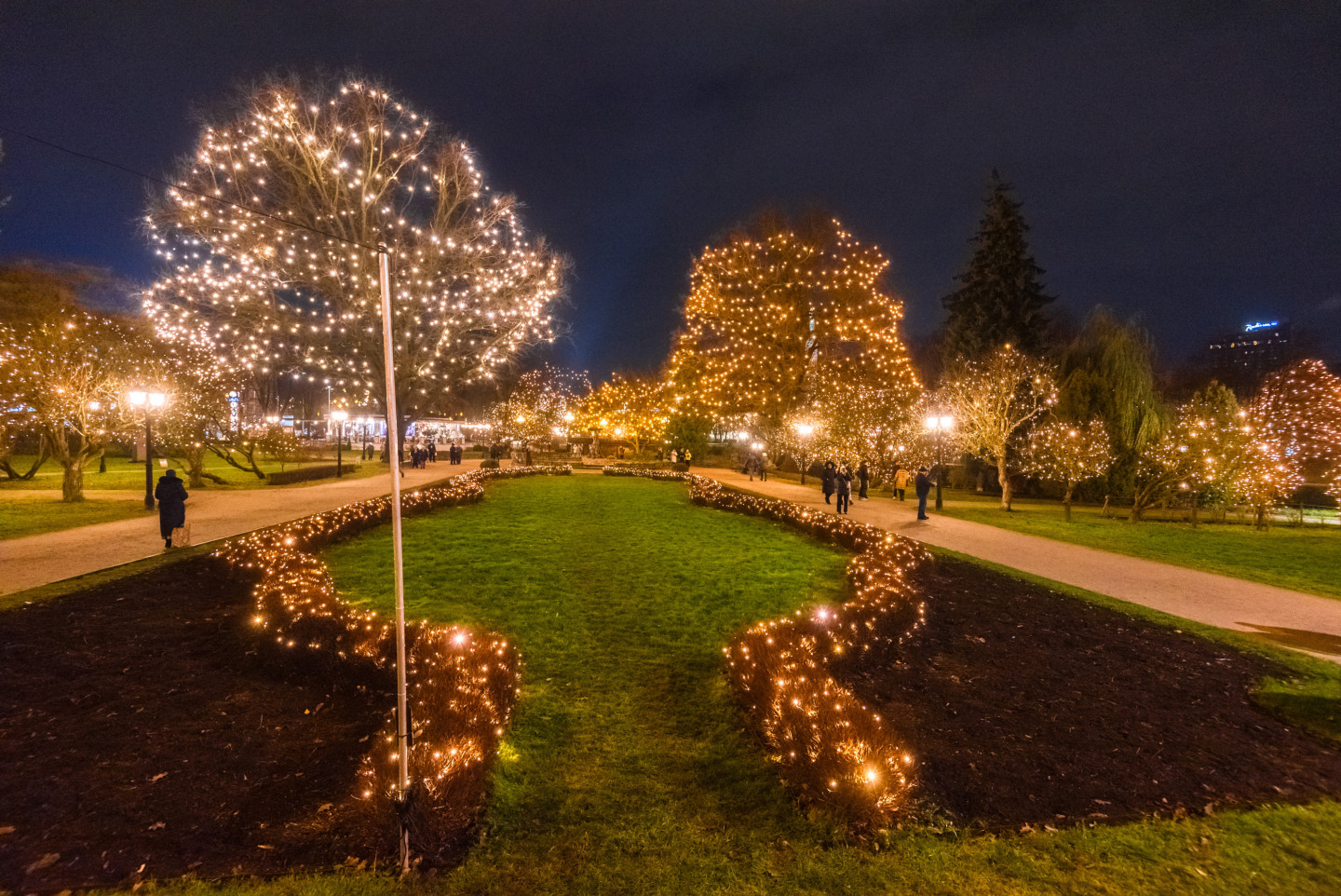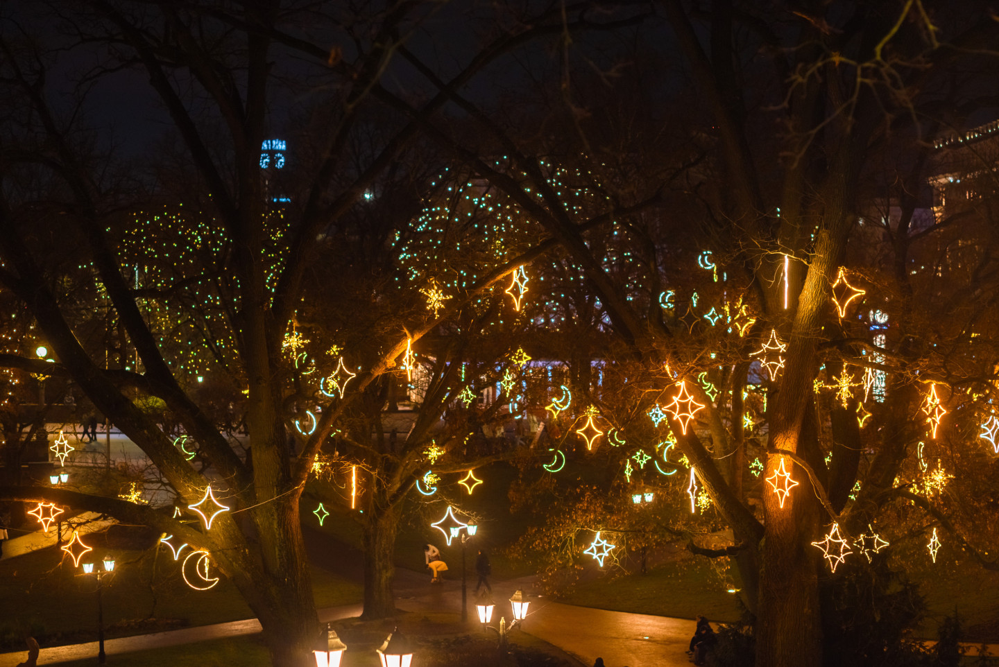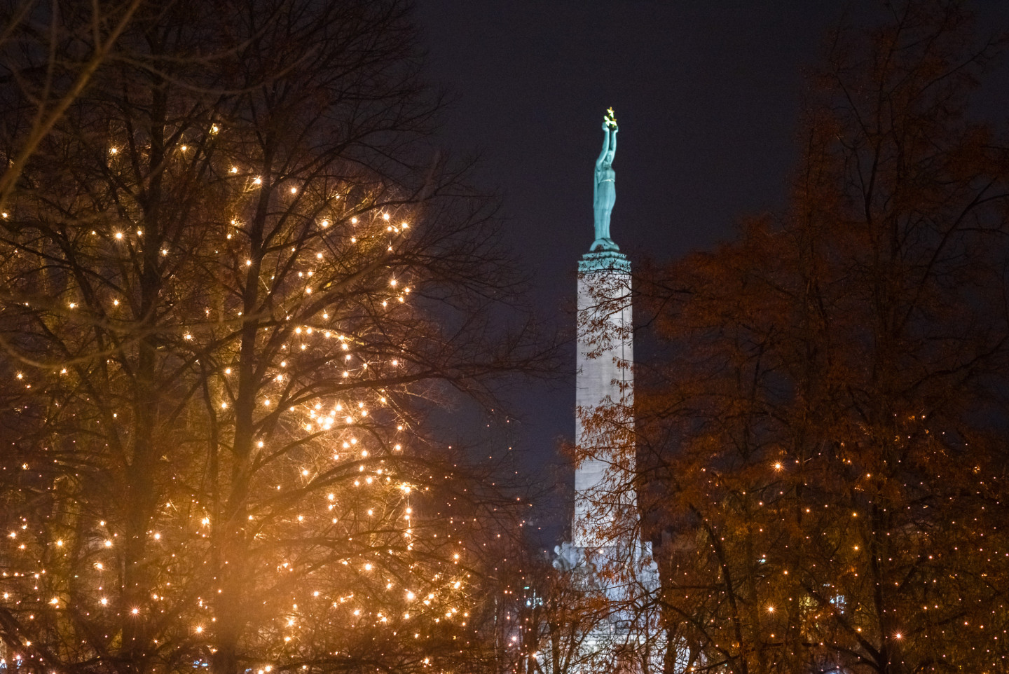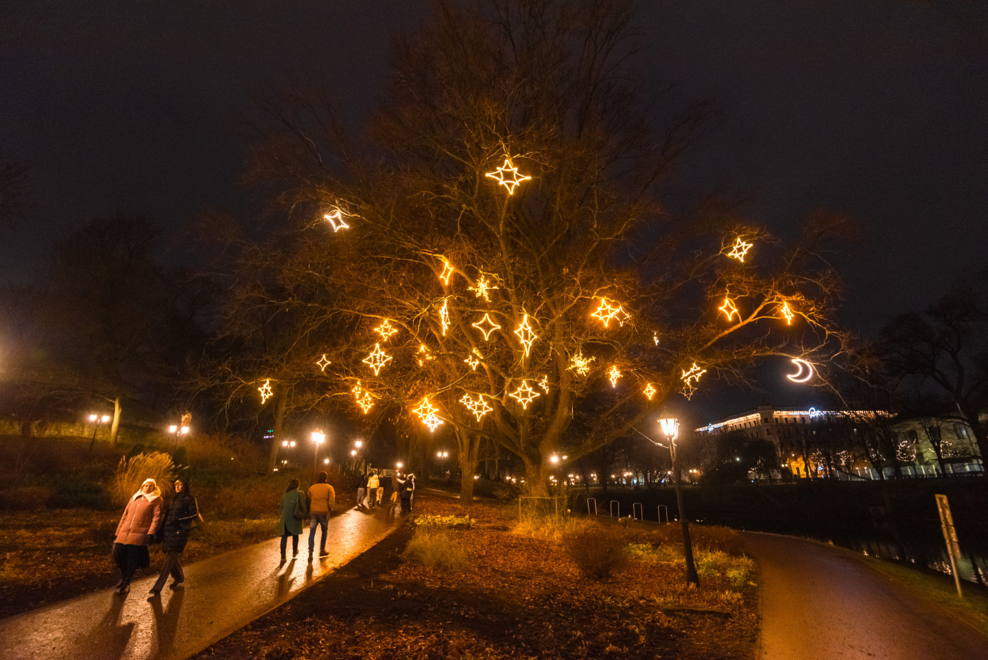 Izgaismots Bastejkalns un Operas skvērs svētku noskaņā