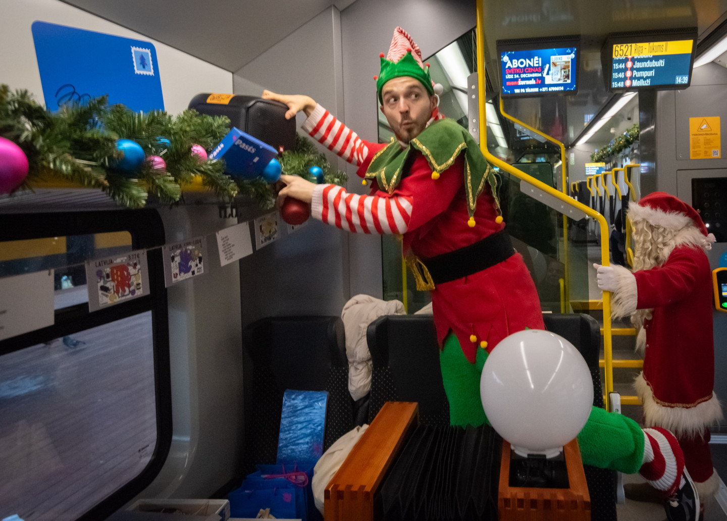 "Vivi" pasažierus pārsteidz un iepriecina Ziemassvētku vecītis