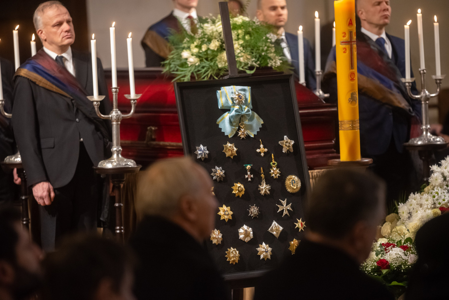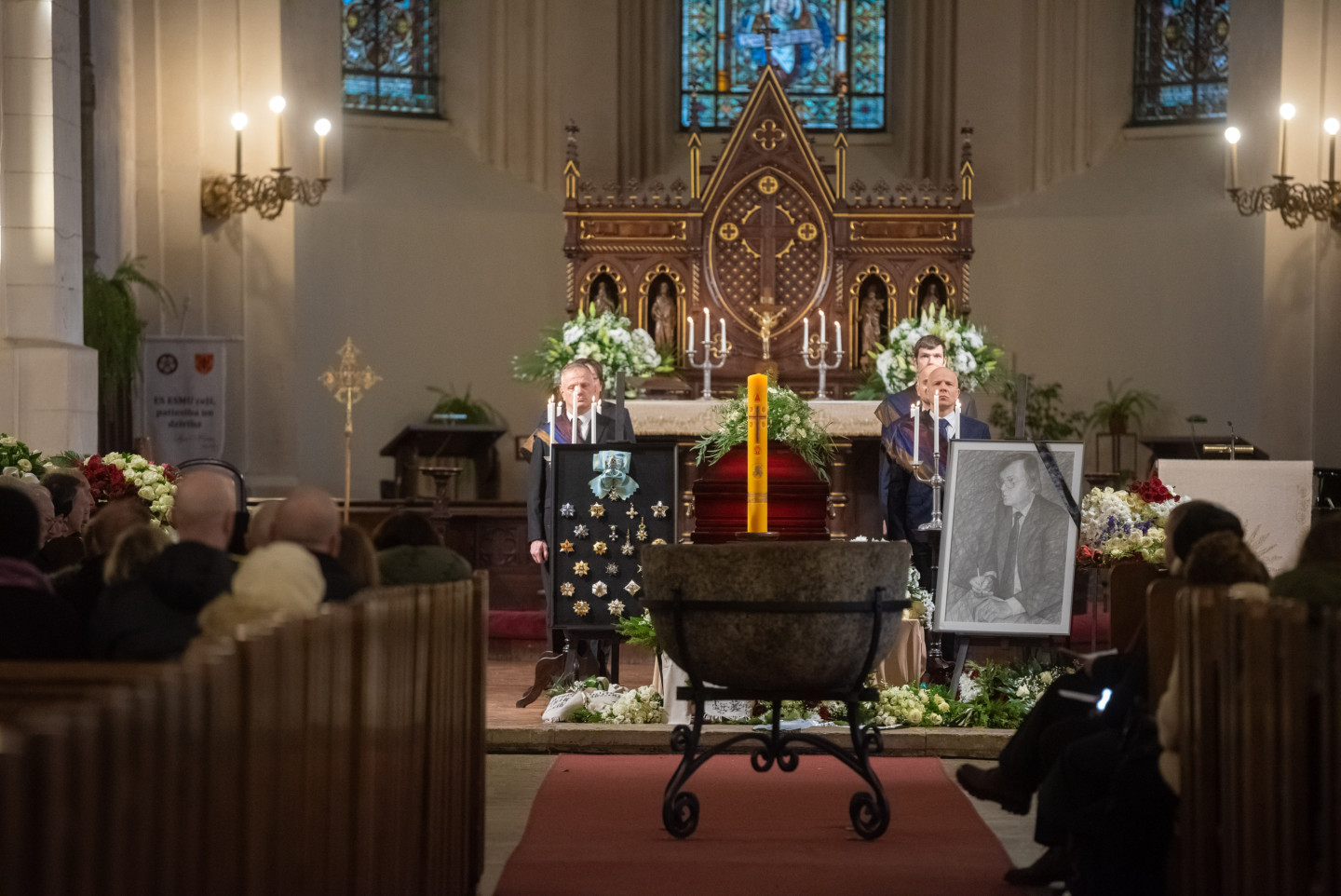Rīgas Doma baznīcā notiek atvadīšanās no mūžībā aizgājušā bijušās eksprezidentes Vairas Vīķes-Freibergas vīra Imanta Freiberga