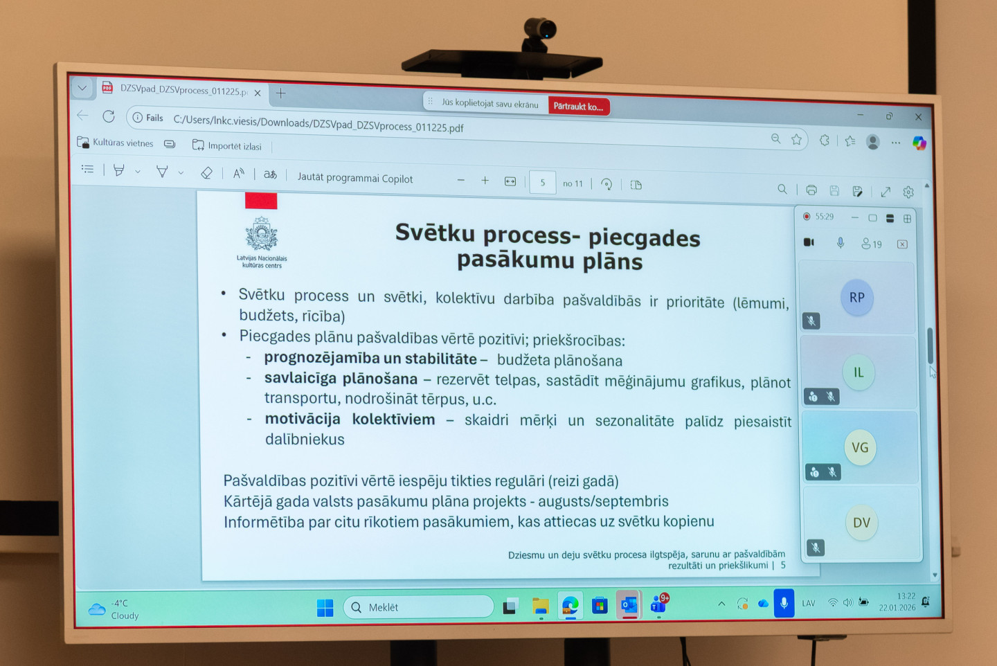 Latvijas Nacionālā kultūras centra Lielajā zālē norisinās Dziesmu un deju svētku padomes sēde