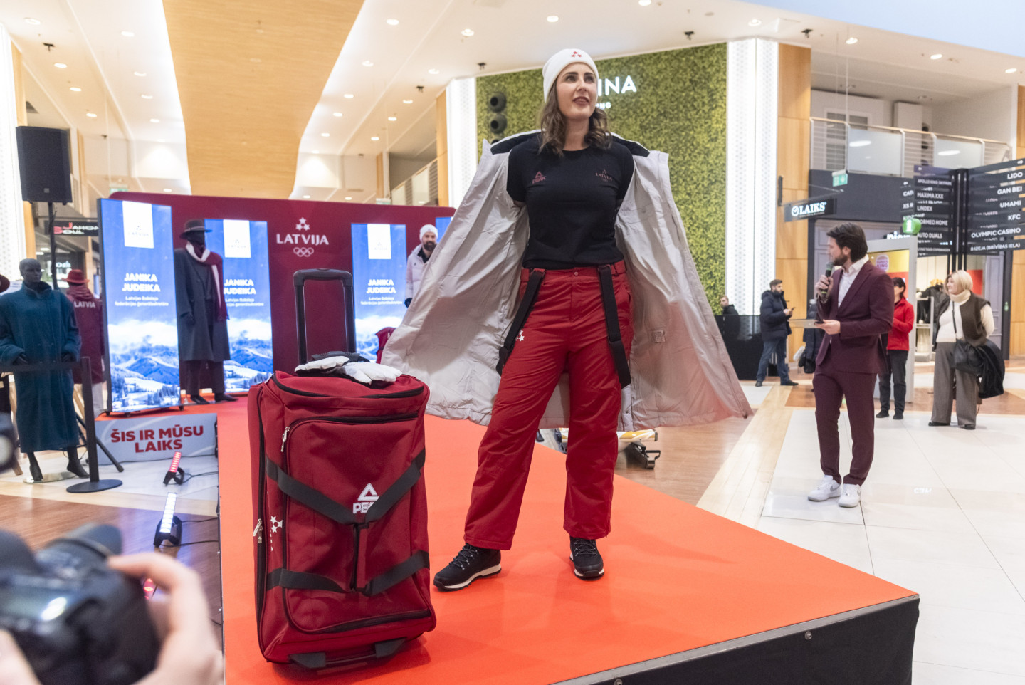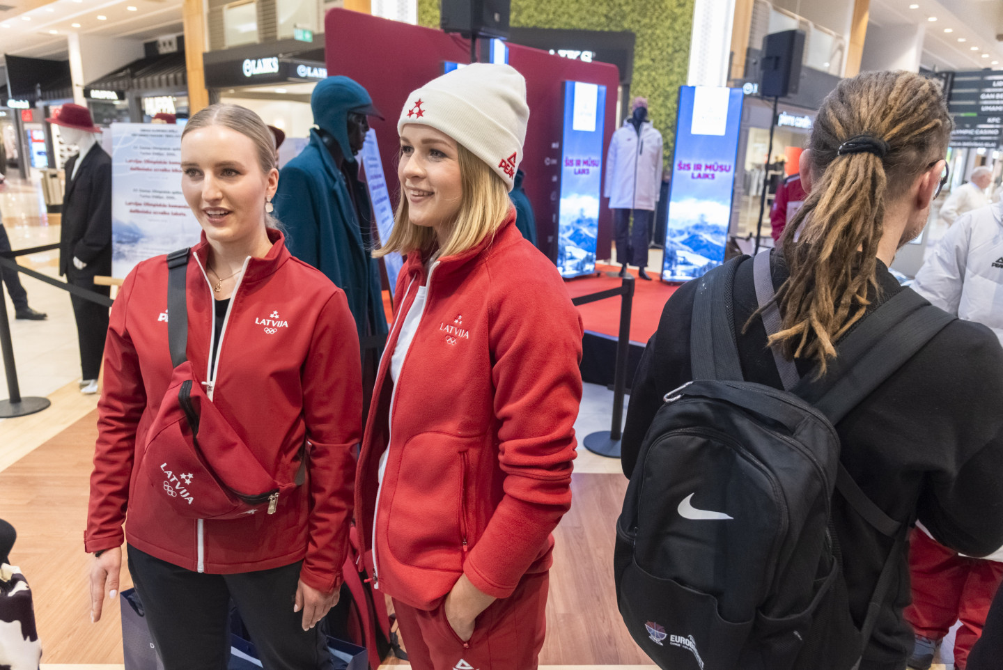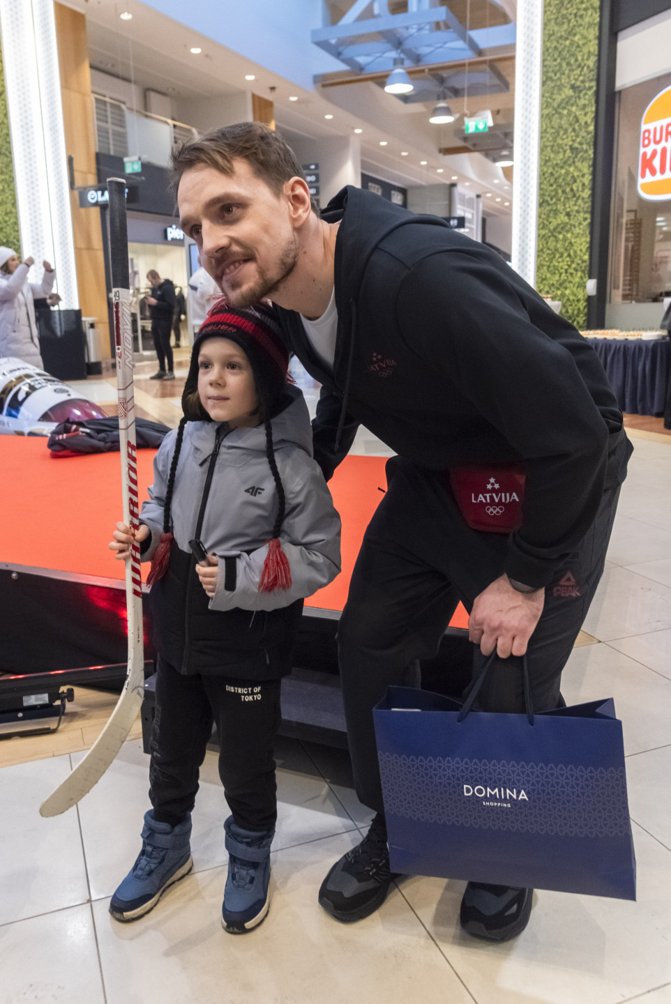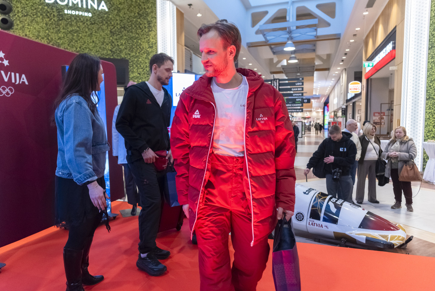 Tirdzniecības centrā "Domina Shopping" centrālajā laukumā šodien norisinājās Latvijas Olimpisko spēļu komandas sporta un brīvā laika tērpu prezentācija, kurā piedalījās Latvijas hokejisti Kaspars Daugaviņš, Renārs Krastenbergs, Kristers Gudļevskis un Ralfs Freibergs, savukārt dāmu tērpus demonstrēja Kristīne Kramēna, Katrīna Gaidule un Janika Judeika.