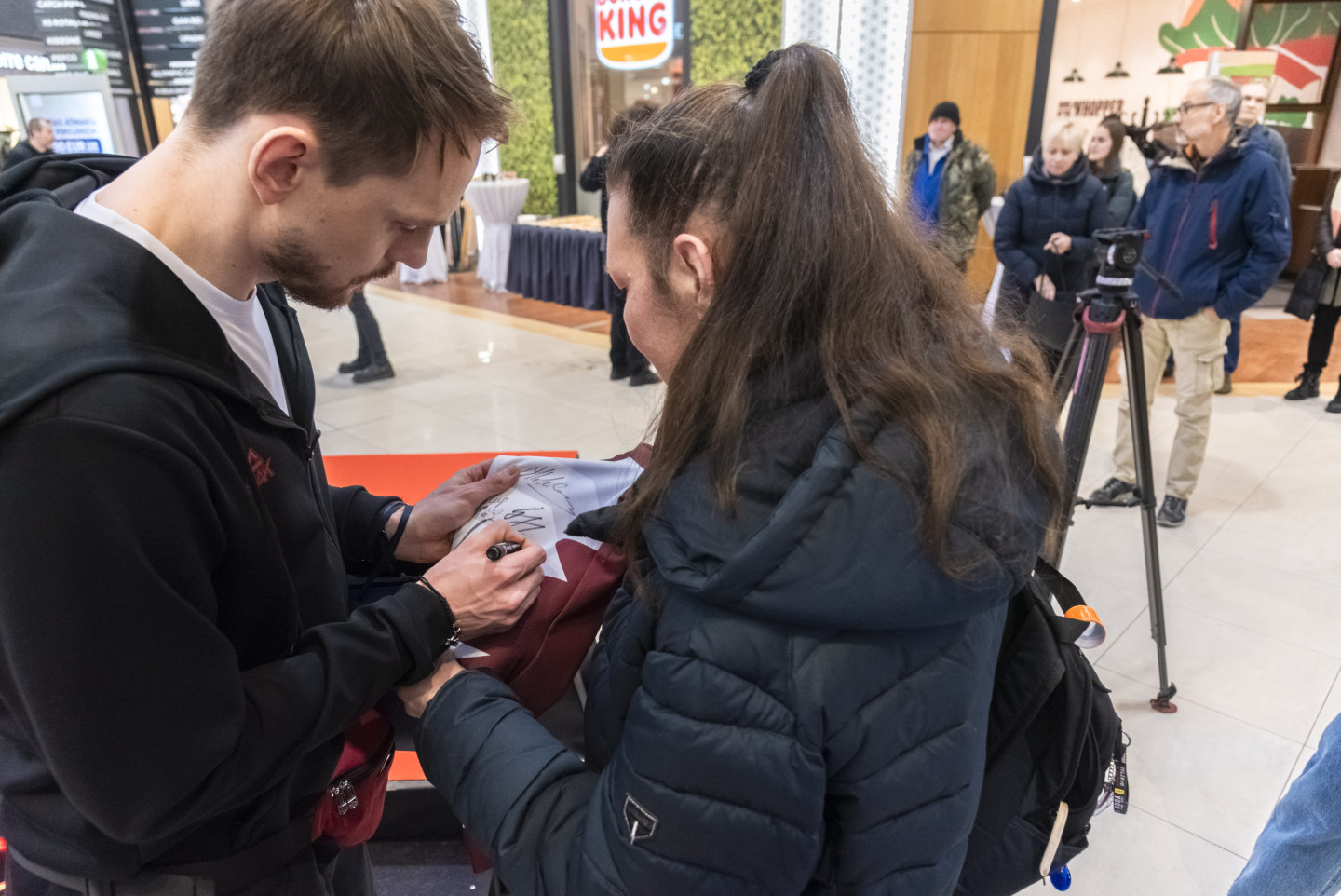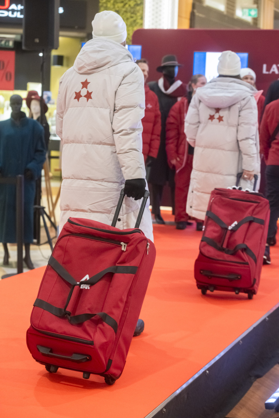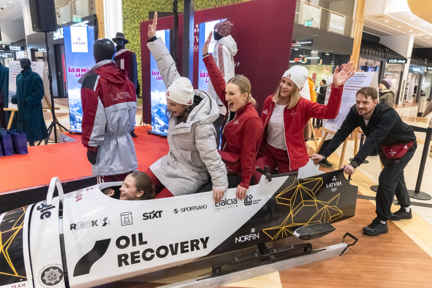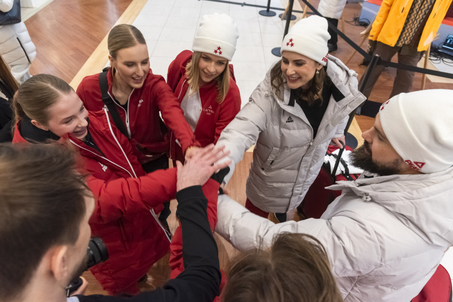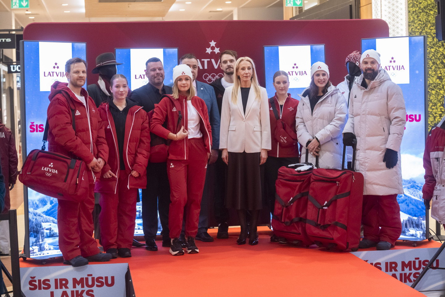Tirdzniecības centrā "Domina Shopping" centrālajā laukumā šodien norisinājās Latvijas Olimpisko spēļu komandas sporta un brīvā laika tērpu prezentācija, kurā piedalījās Latvijas hokejisti Kaspars Daugaviņš, Renārs Krastenbergs, Kristers Gudļevskis un Ralfs Freibergs, savukārt dāmu tērpus demonstrēja Kristīne Kramēna, Katrīna Gaidule un Janika Judeika.