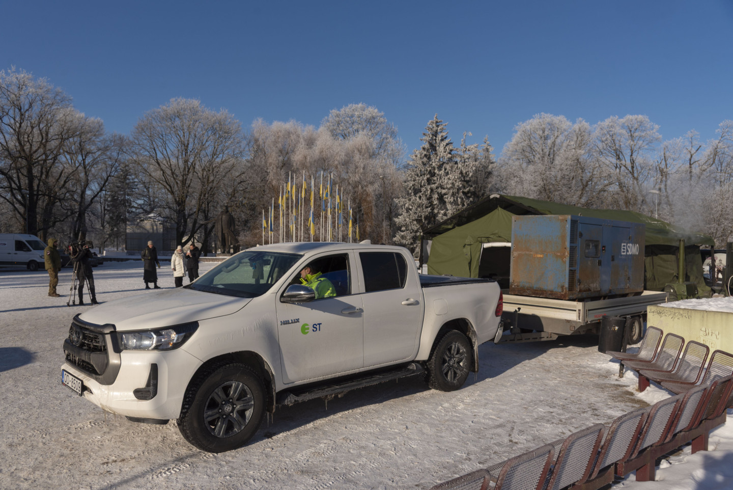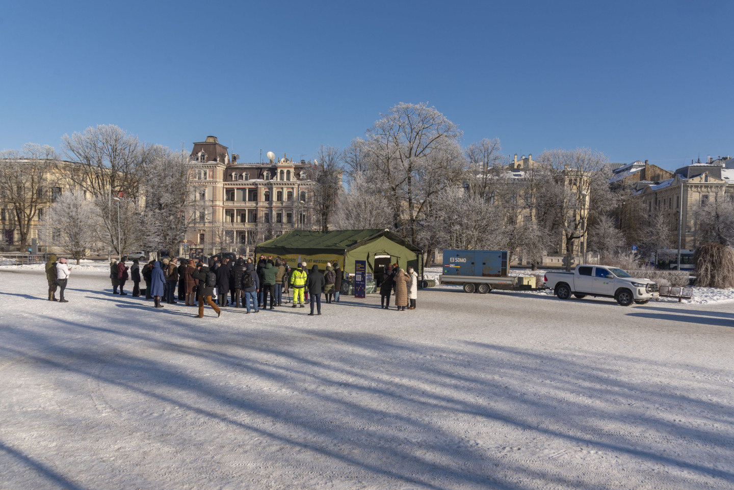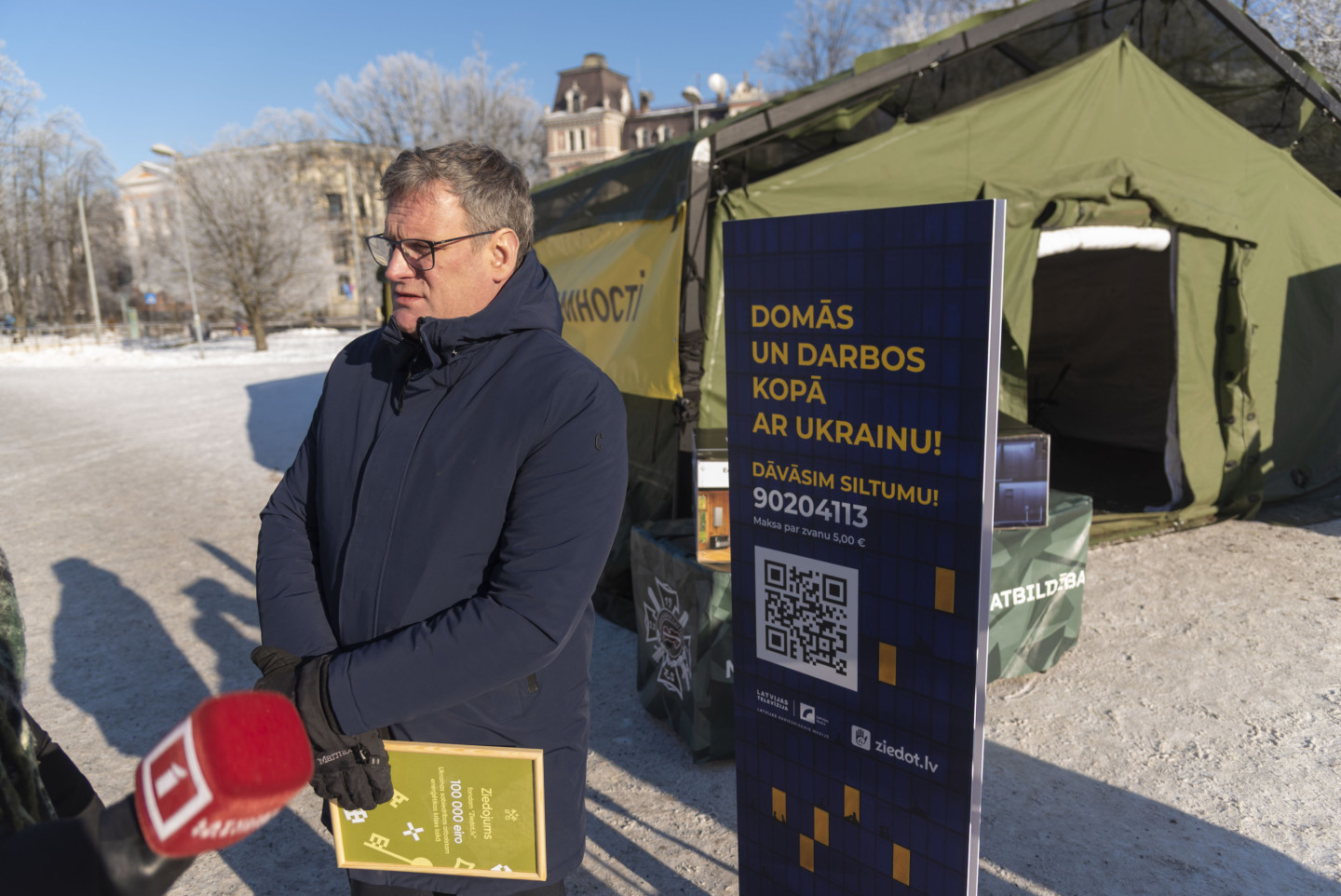 Laukumā pie Rīgas Kongresu nama notiek labdarības akcijas "Siltums Ukrainai no Latvijas" atklāšana, kurā Latvijas iedzīvotāji un uzņēmumi aicināti ziedot Ukrainas enerģētikas nozares atbalstam Krievijas iznīcinātās enerģētikas apstākļos. Pasākumā piedalās "Ziedot.lv" vadītāja Rūta Dimanta, AS "Sadales tīkls" valdes priekšsēdētājs Sandis Jansons, Ekonomikas ministrijas parlamentārais sekretārs Jurģis Miezainis, Ukrainas vēstnieka vietnieks Latvijā Jurijs Zaharčuks, kā arī fonda "Namejs" valdes priekšsēdētājs Raimonds Graube