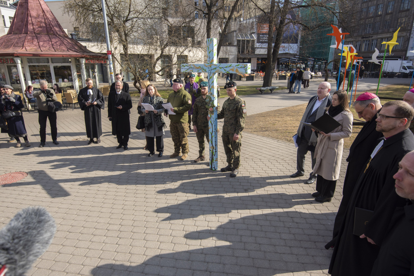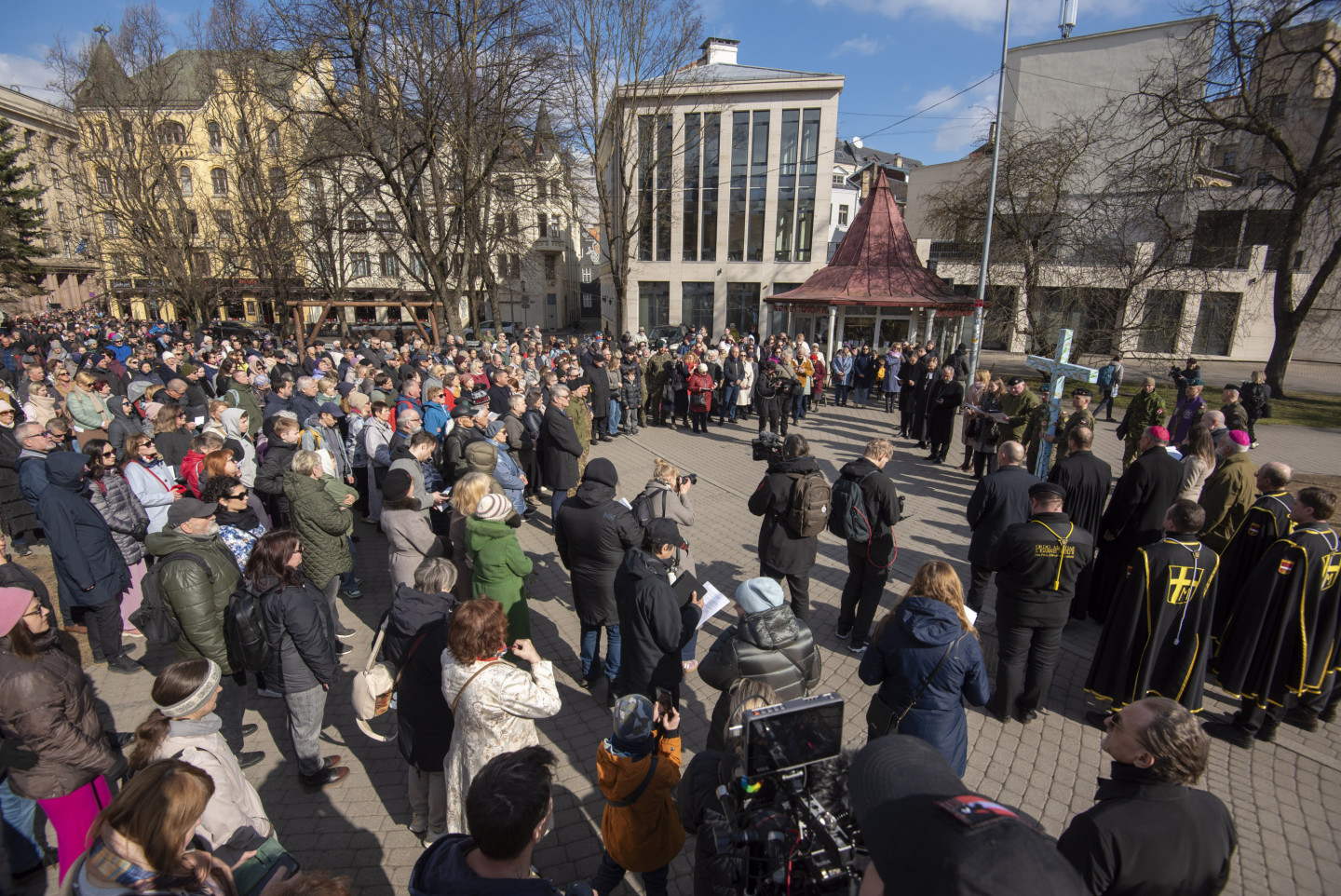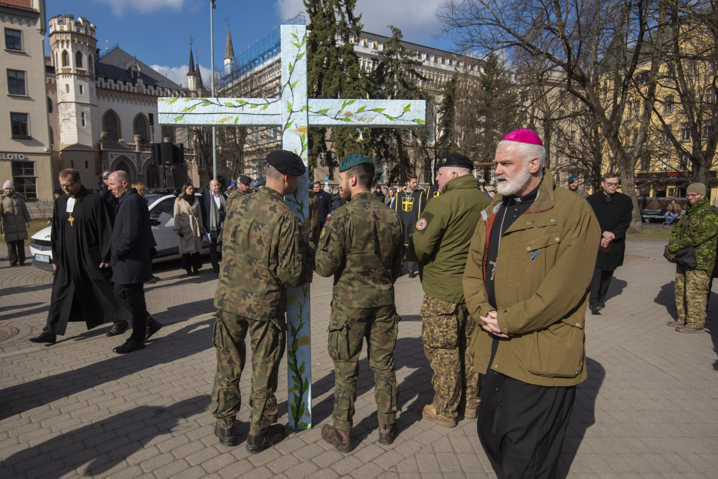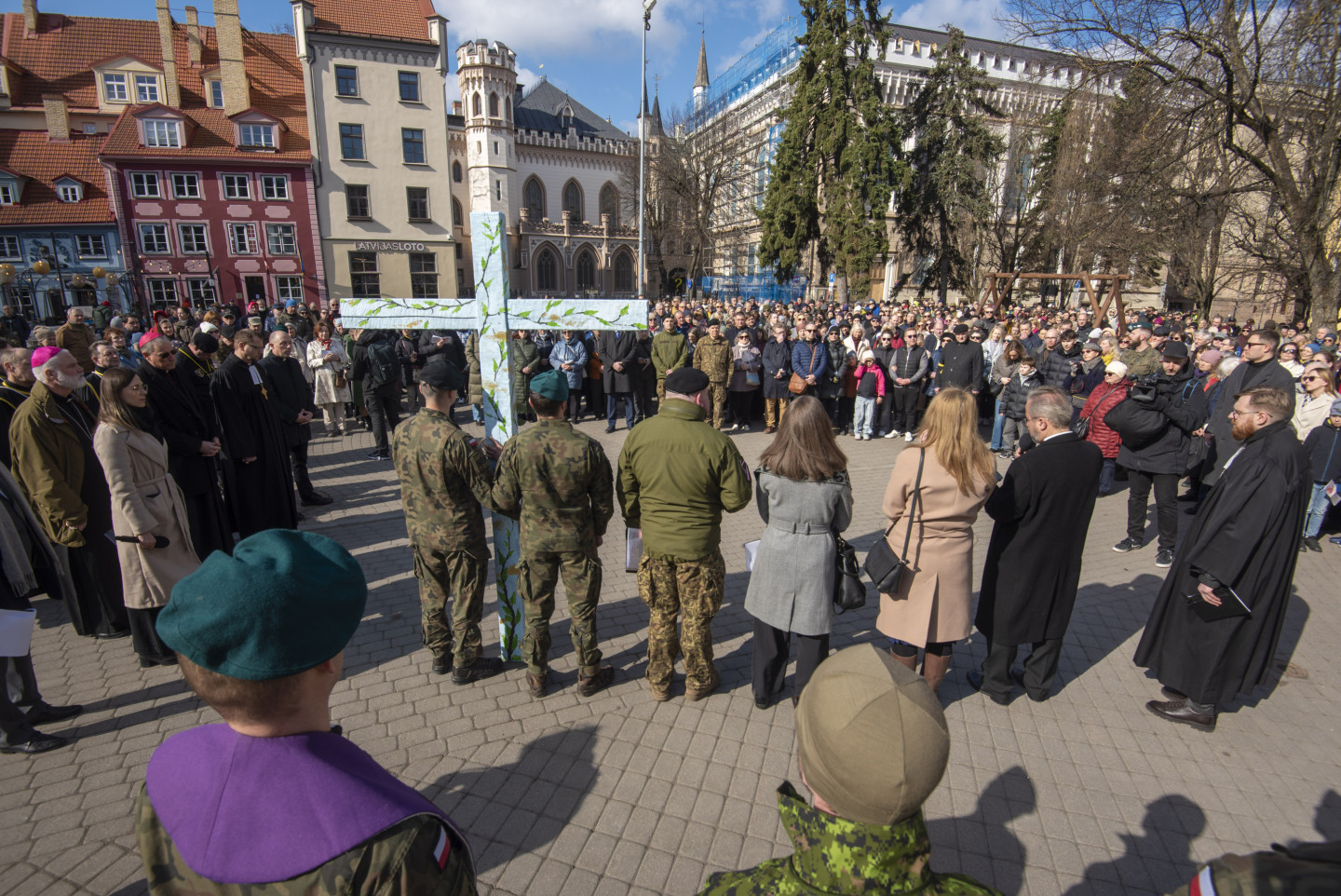 Vecrīgas ielās notiek Ekumeniskais Krusta ceļš, kas pulcē dažādu konfesiju pārstāvjus, sabiedrībā zināmus māksliniekus un NATO sabiedrotos, lai kopīgās lūgšanās un pārdomās vienotos par mieru un cilvēka garīgo veselumu