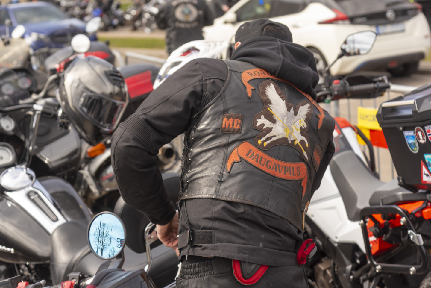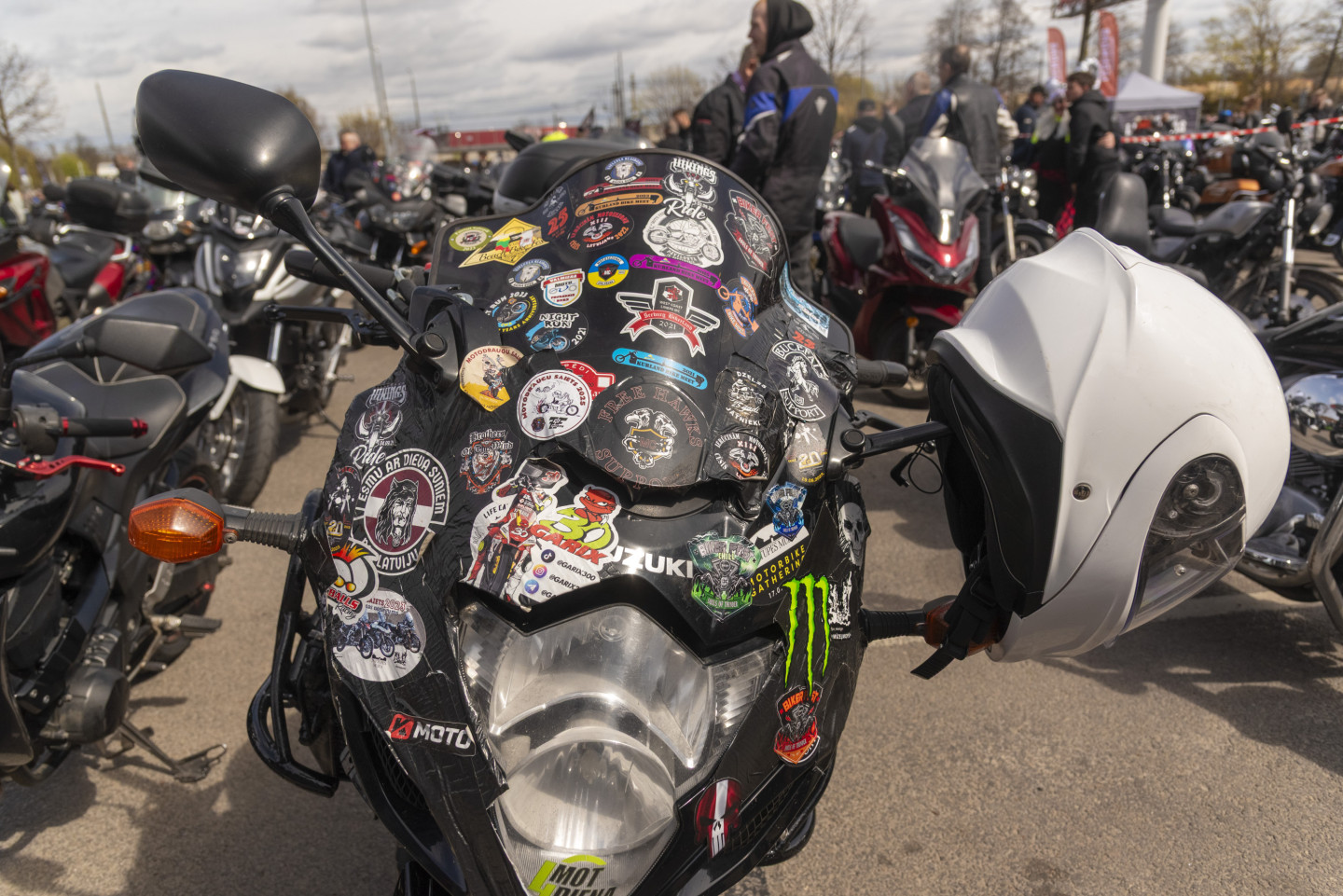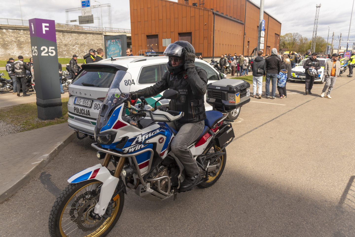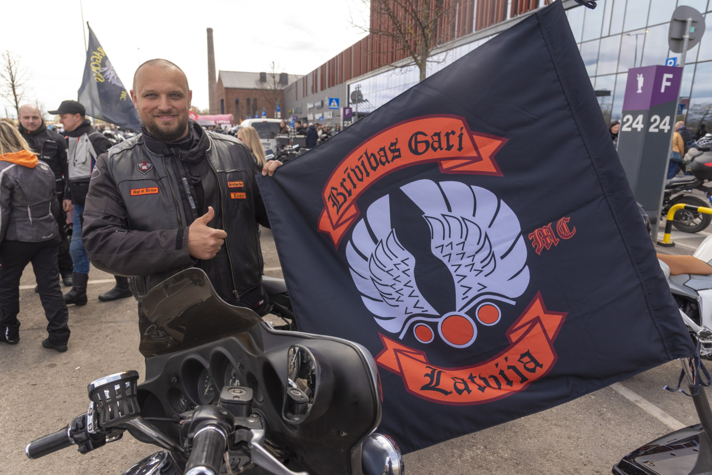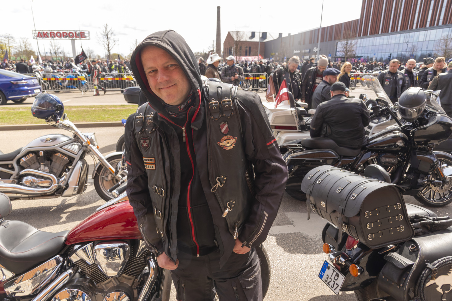 Pie tirdzniecības centra "Akropole Rīga" notiek motosezonas atklāšanas pasākums. Motokolonnas brauciens no "Akrapoles" pa Rīgas ielām uz Spilves lidostu