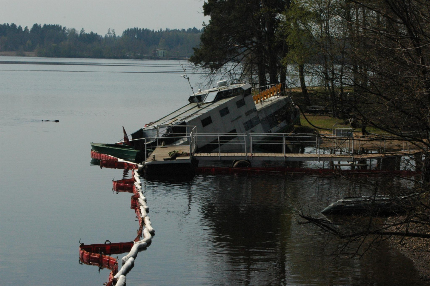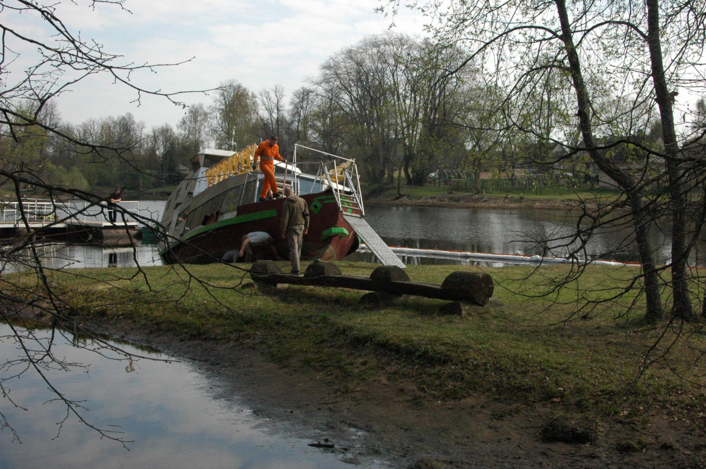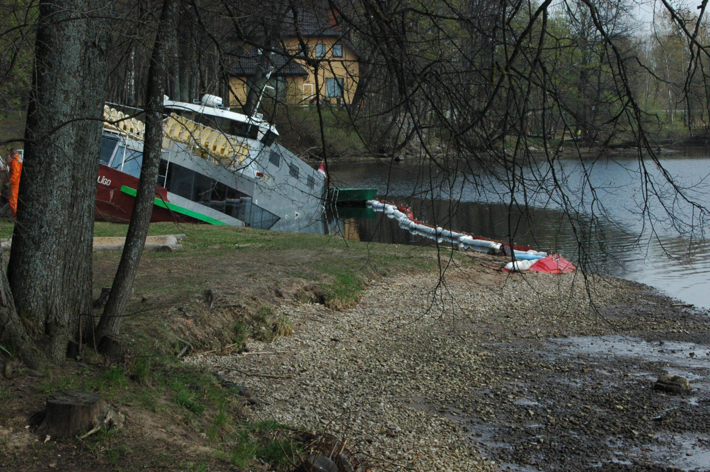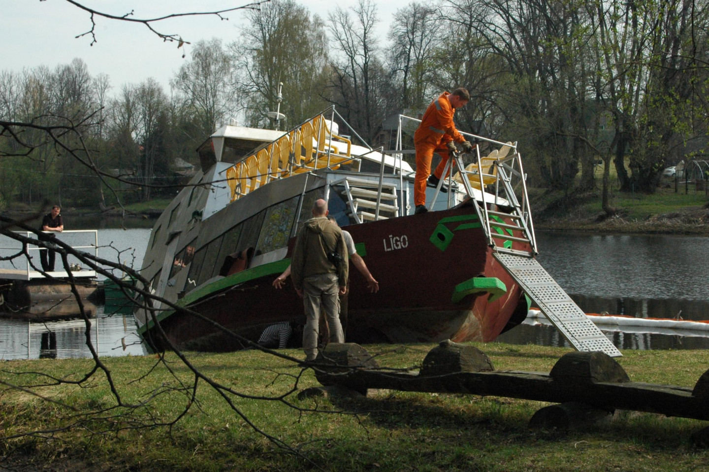 Lielvārdē, netālu Lielvārdes koka pils, Daugavas krastā aizvien turpinās nogrimušā atpūtas kuģīša glābšanas darbi. Daugavā ir novietotas naftu absorbējošas bonas. Kā Neatkarīgajai pastāstīja uz vietas esošie Valsts ugunsdzēsības un glābšanas dienesta pārstāvji, naftas produkti noplūduši aptuveni 400 kvadrātmetru platībā, kas uzskatāms par nelielu daudzumu. Šobrīd Daugavā joprojām izvilktas norobežojošās bonas, kas aiztur naftas produktu tālāku izplatīšanos. \notikuma vieta darbojās VUGD brigādes. Kuģītis «Līgo» ir nogādāts krastā un no tā tiek atsūkts ūdens. Jāatgādina, ka Lieldienās, ap pulkst.18 Valsts vides dienesta Lielrīgas Reģionālā vides pārvalde saņēma ziņu par Lielvārdes novadā grimstošu izklaides kuģīti «Līgo». Kuģītis sācis grimt piestātnē, Daugavas upes krastā. Ierodoties notikuma vietā, vides inspektori konstatēja, ka kuģīša grimšanas rezultātā ūdenī nonāk naftas produkti. Noplūde tika apturēta pēc pāris stundām, un VUGD izvietoja norobežojošās un absorbējošās bonas. Savukārt SIA «EKO osta» sāka veikt naftas produktu savākšanas darbus. Pirmdienas pēcpusdienā VUGD likvidējis eļļas un dīzeļdegvielas noplūdi.