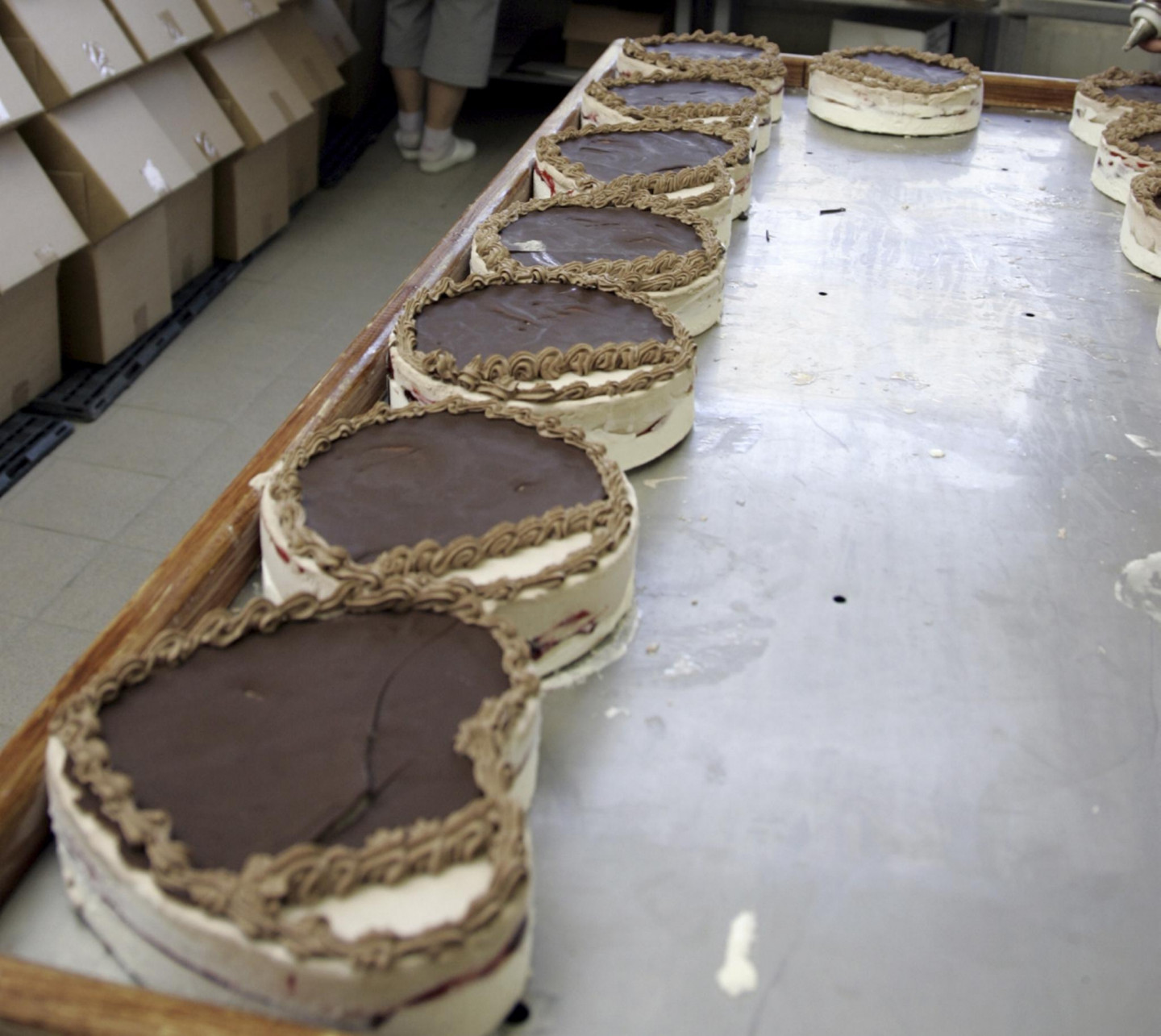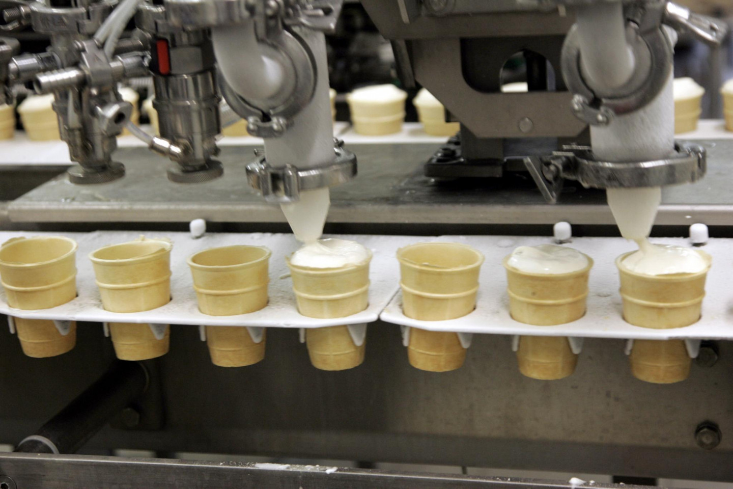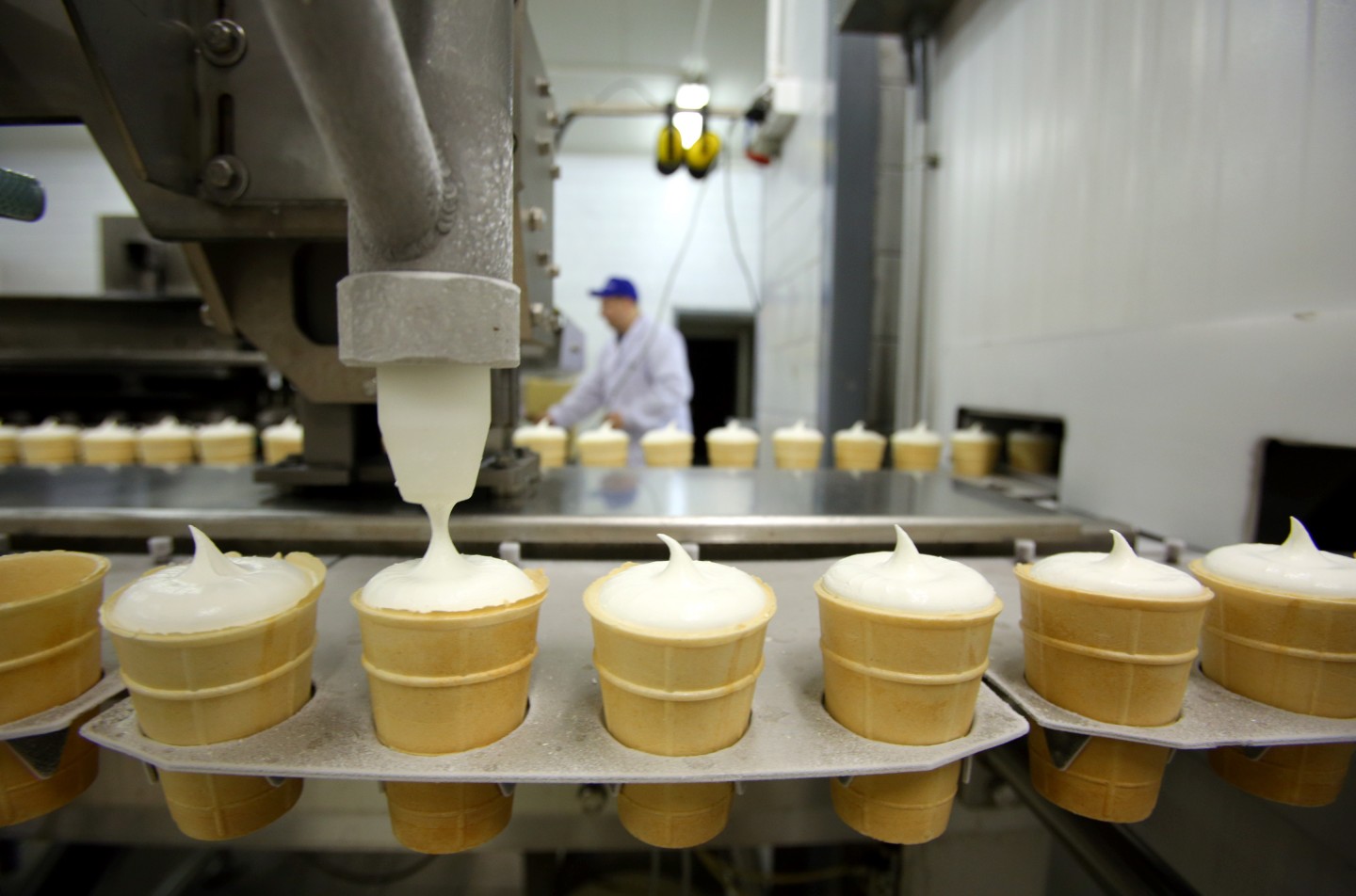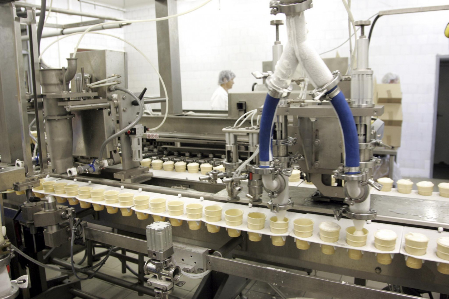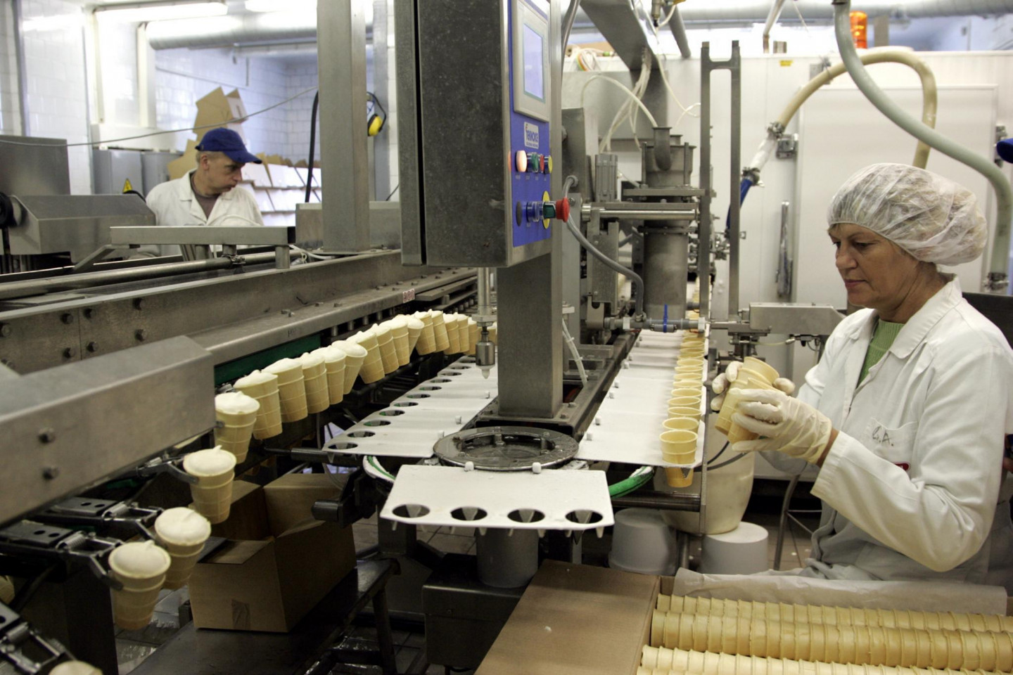 Saldējuma ražošanas konveijers Rūjienas piensaimniekā.