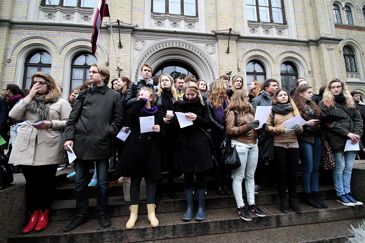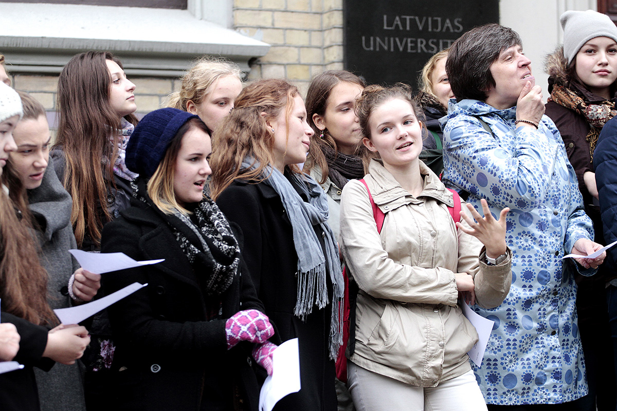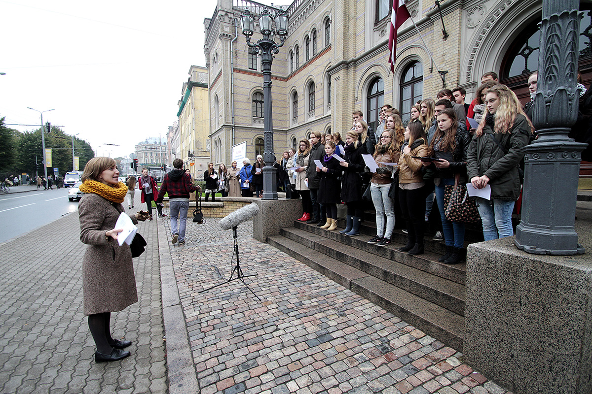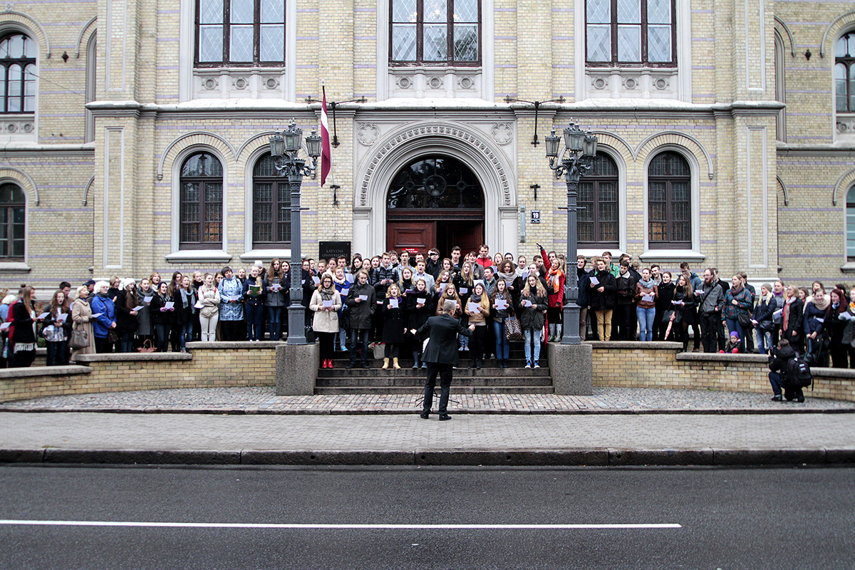 Uz Latvijas Universitātes galvenās ēkas kāpnēm Rakstniecības un mūzikas muzejs rīkotajā zibakcijā, kopā sanākušie nodziedāja populārāko Latvijas skolas dziesmu „Dar’ man, tēvis, pastaliņas” LU studentu kora „Juventus” diriģenta Rūdolfa Krēsliņa vadībā. Zibakcija tiks izmantota Rakstniecības un mūzikas muzeja topošajā ekspozīcijā „Dziesma”.