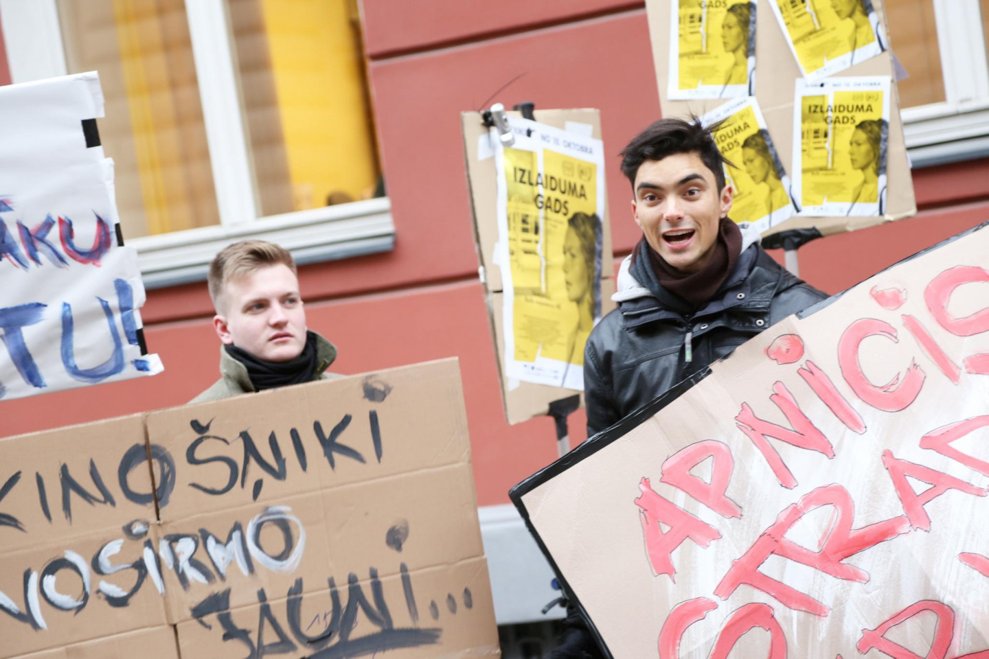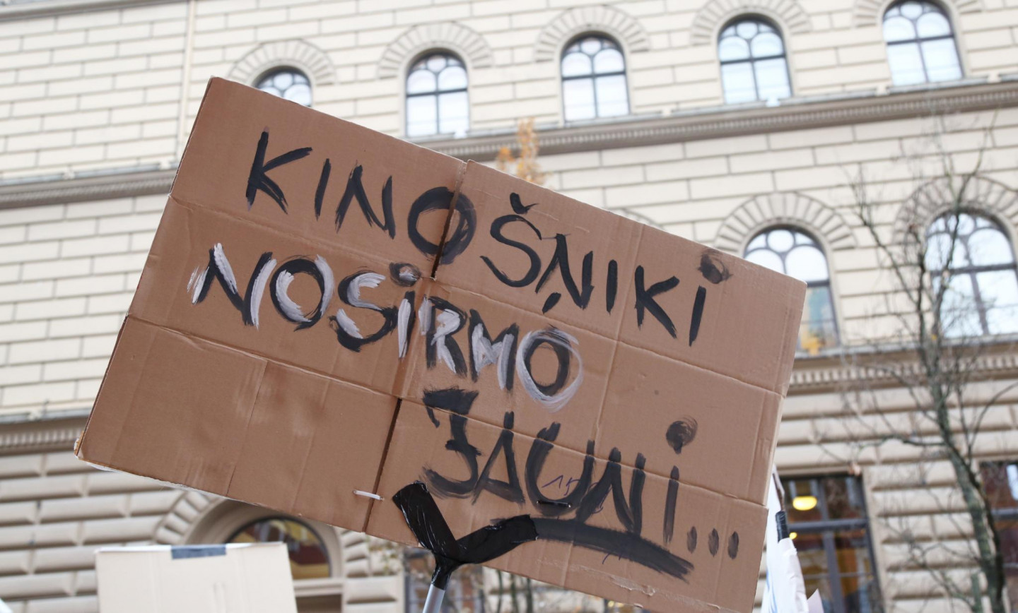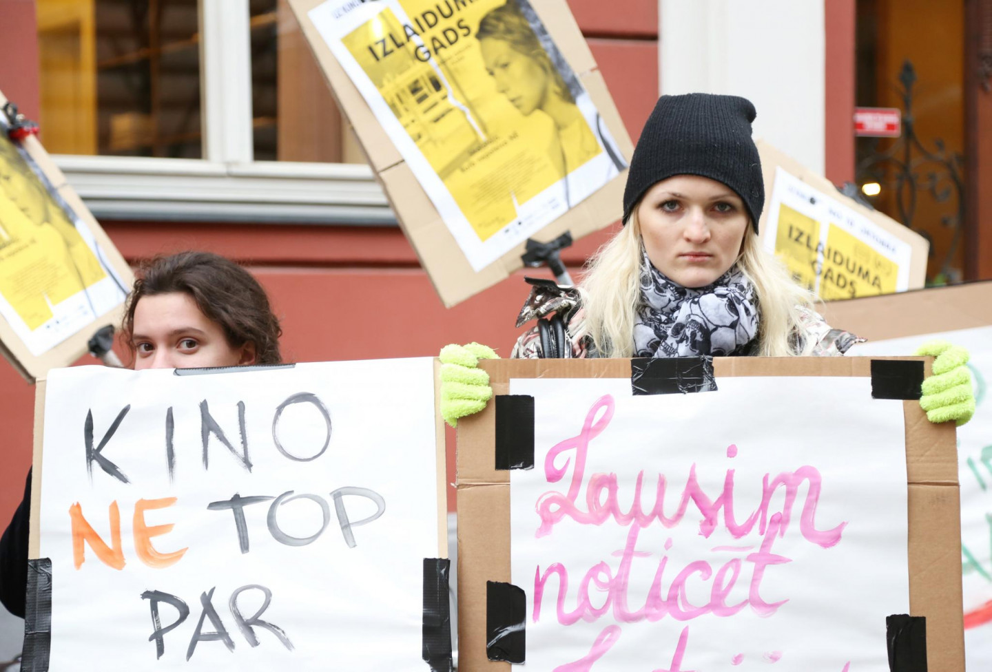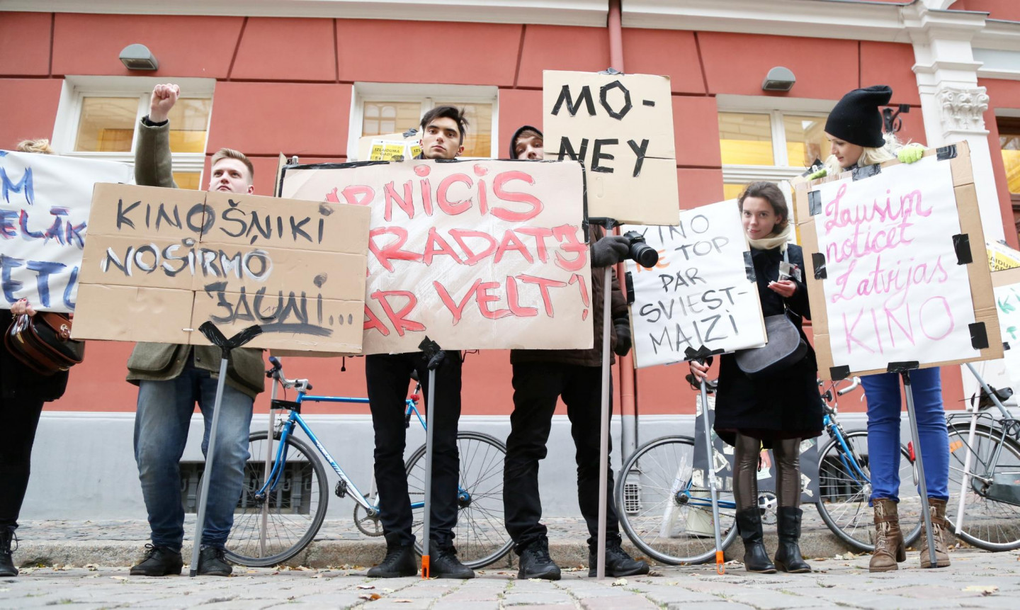 Pie Saeimas piketē par budžeta finansējumu kino industrijai