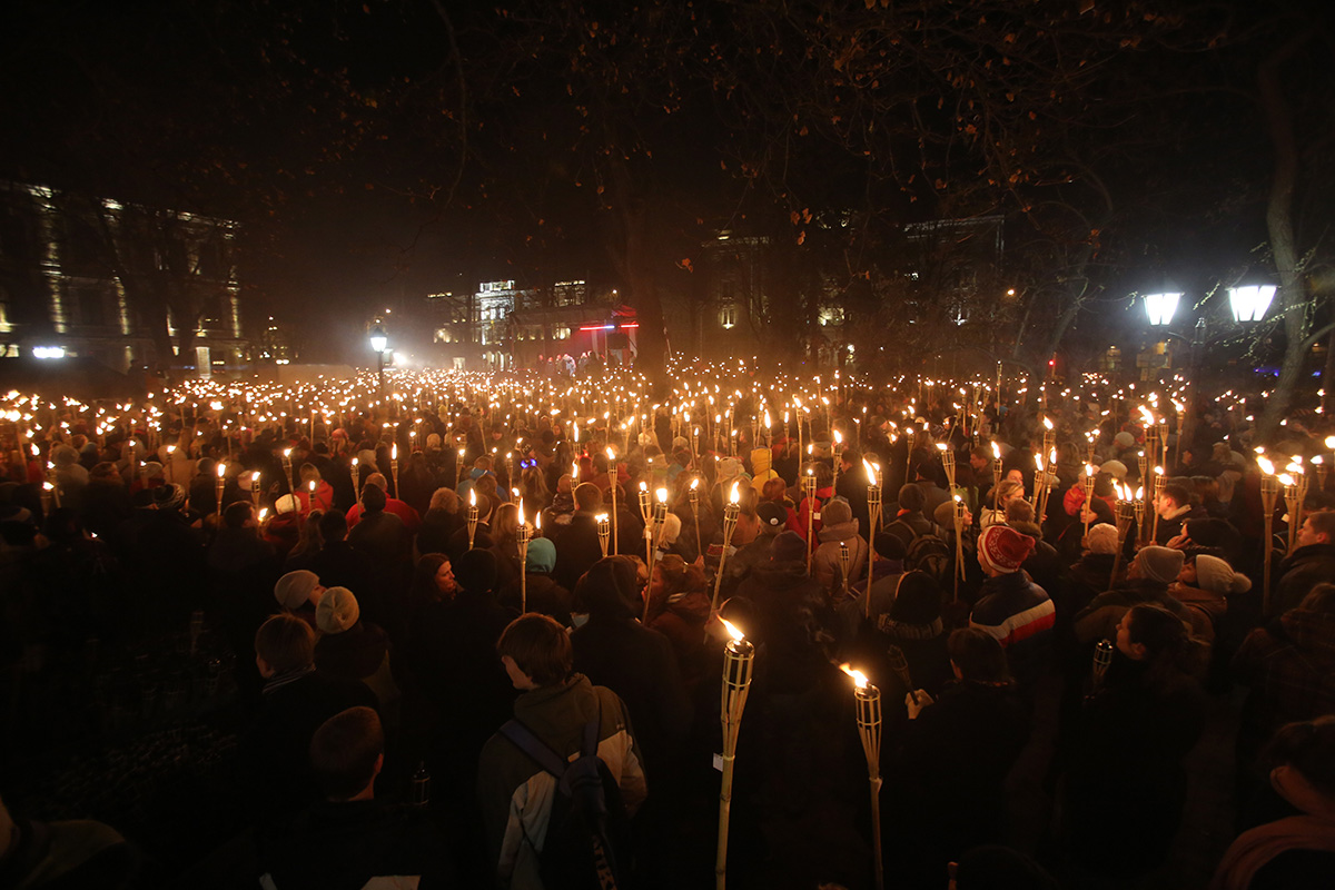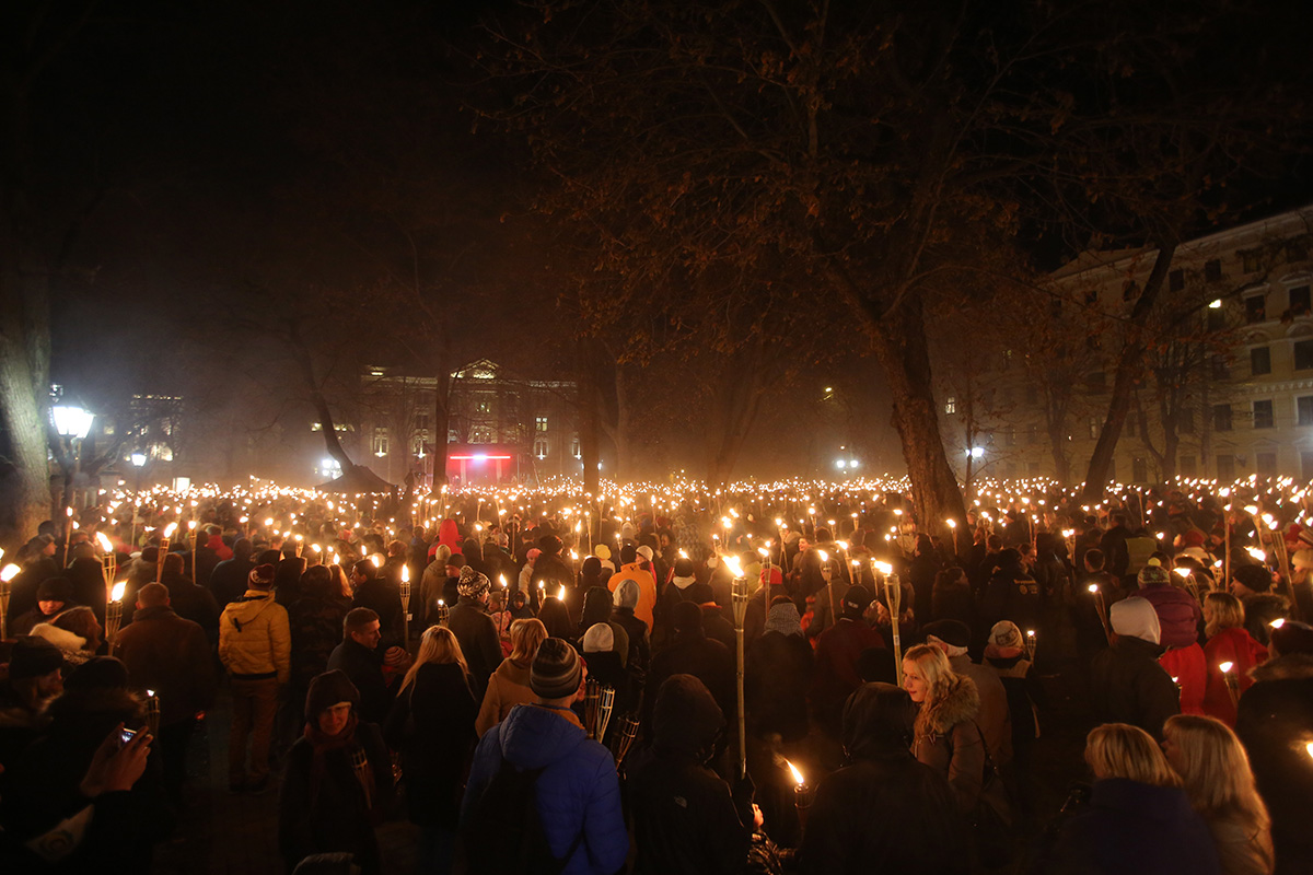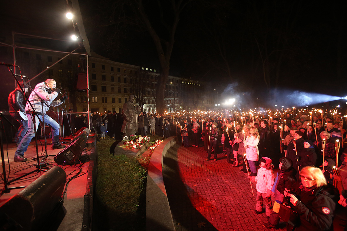 Par godu Latvijas Republikas Proklamēšanas dienai lāpu gājienā piedalījās gandrīz 14 000 dalībnieku. Šodien, 18.novembrī, Rīgā notika vērienīgs Latvijas valstiskumam veltīts gājiens. Lāpu gājiens ar devīzi "Latvijas uguns cauri laikiem" ir simbolisks mīlestības apliecinājums Latvijas neatkarībai un brīvībai. 13 820 cilvēki šovakar apliecināja uzticību savai valstij. Nacionālās apvienības "Visu Latvijai”-TB/LNNK” un biedrības "Sargi valodu un Latviju!" rīkotais lāpu gājiens šogad notika jau divpadsmito gadu, un tika veltīts Latvijas Republikas proklamēšanas 96. gadadienai.