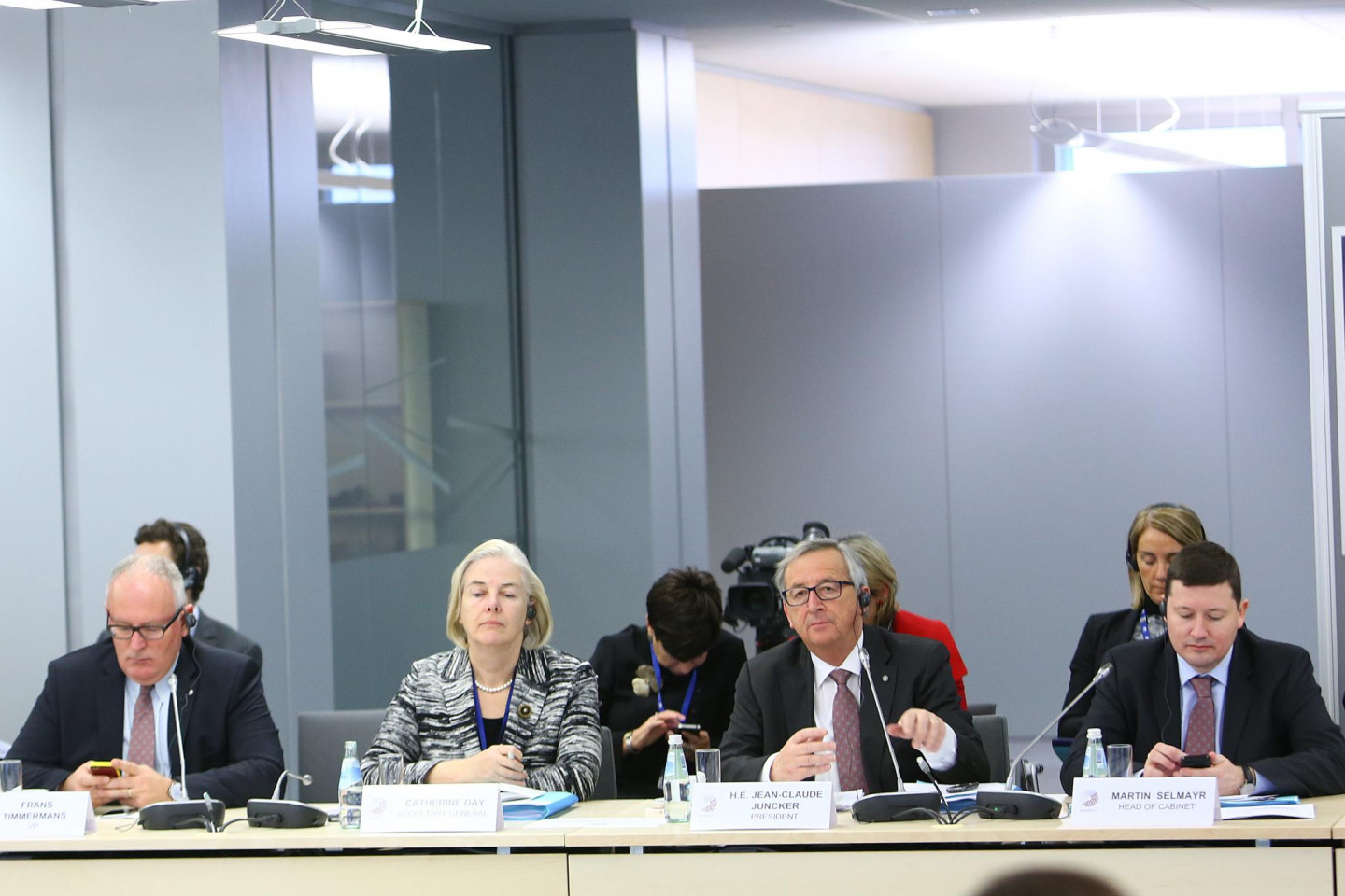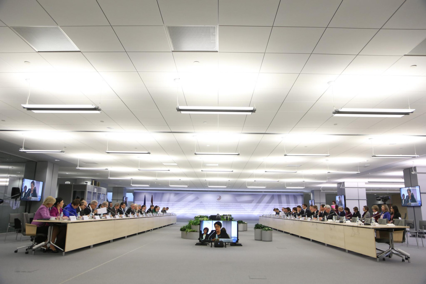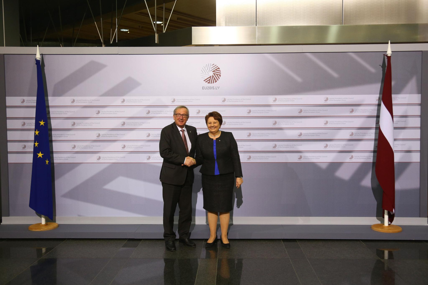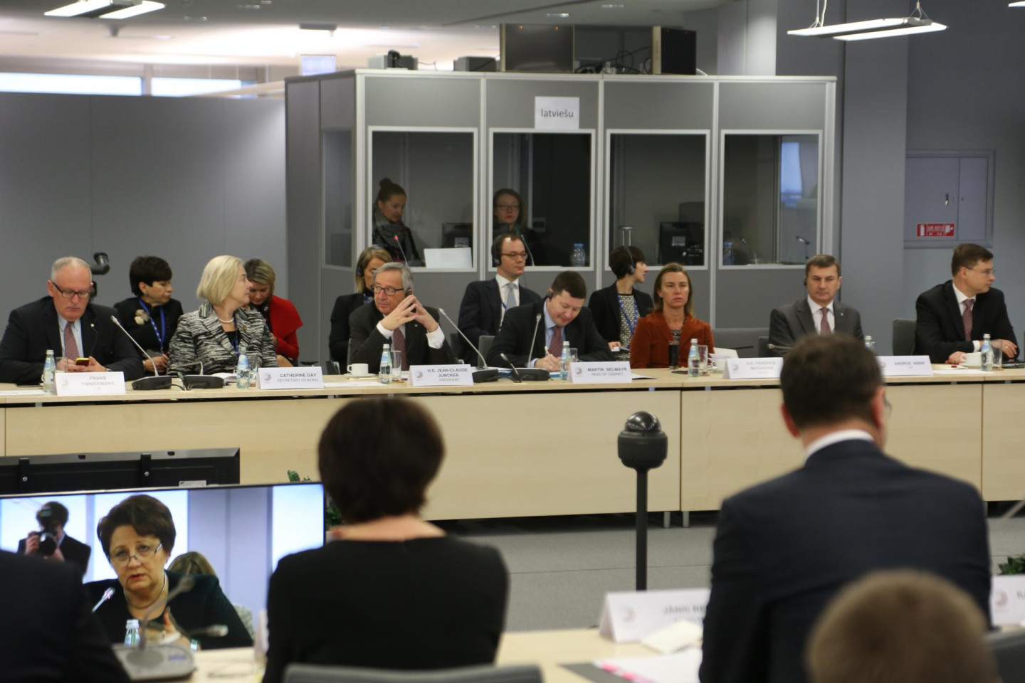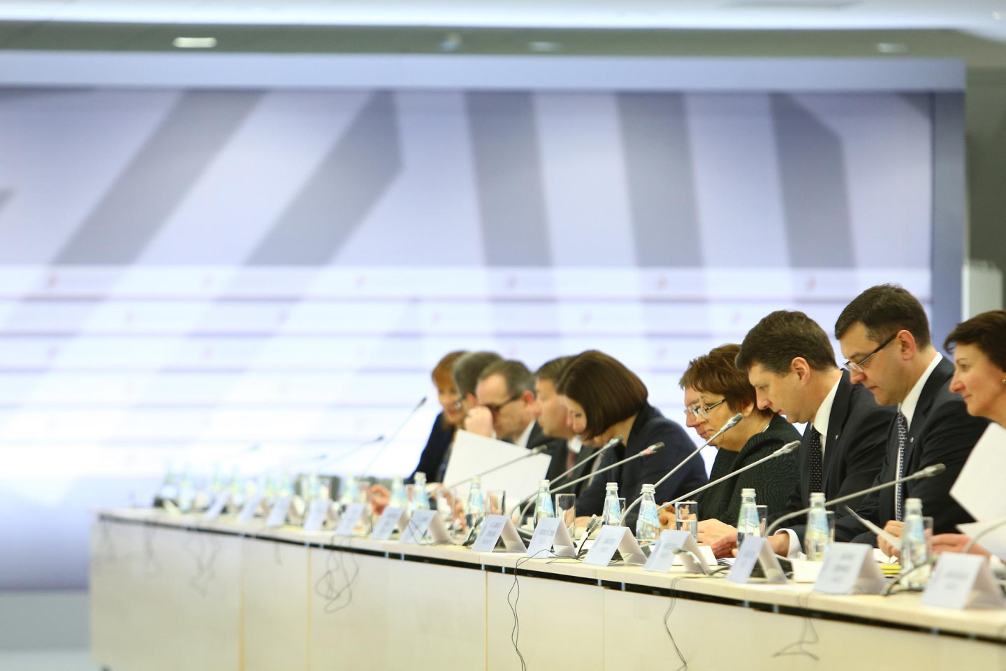 Ministru prezidente Laimdota Straujuma un ministri piedalās Latvijas valdības un Eiropas Komisijas komisāru sanāksmē, kuras laikā tiek pārrunāta Latvijas prezidentūras programma un prioritātes