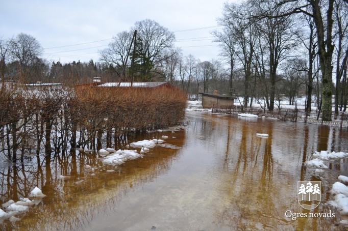 Ogrē ceļas ūdens līmenis, appludinot 10 ēkas