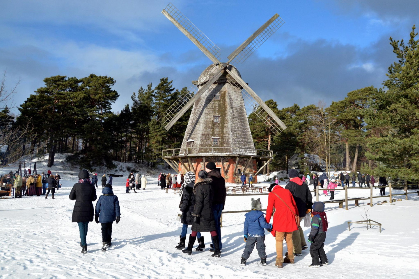 Ventspils Piejūras brīvdabas muzejā svinēja Meteņus, "Sniega suņi ievelk Meteņus"
