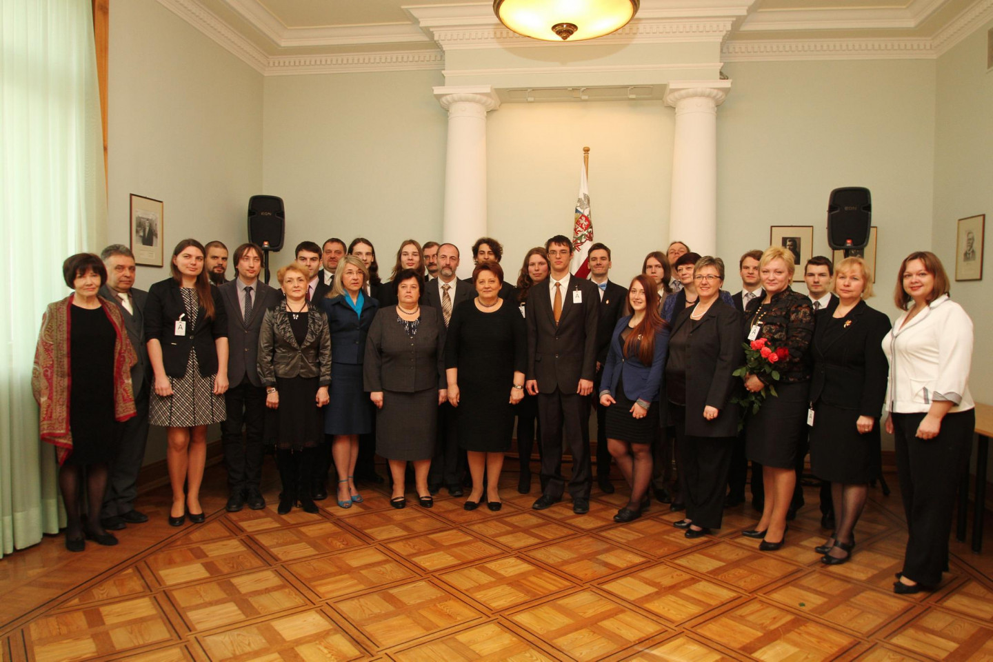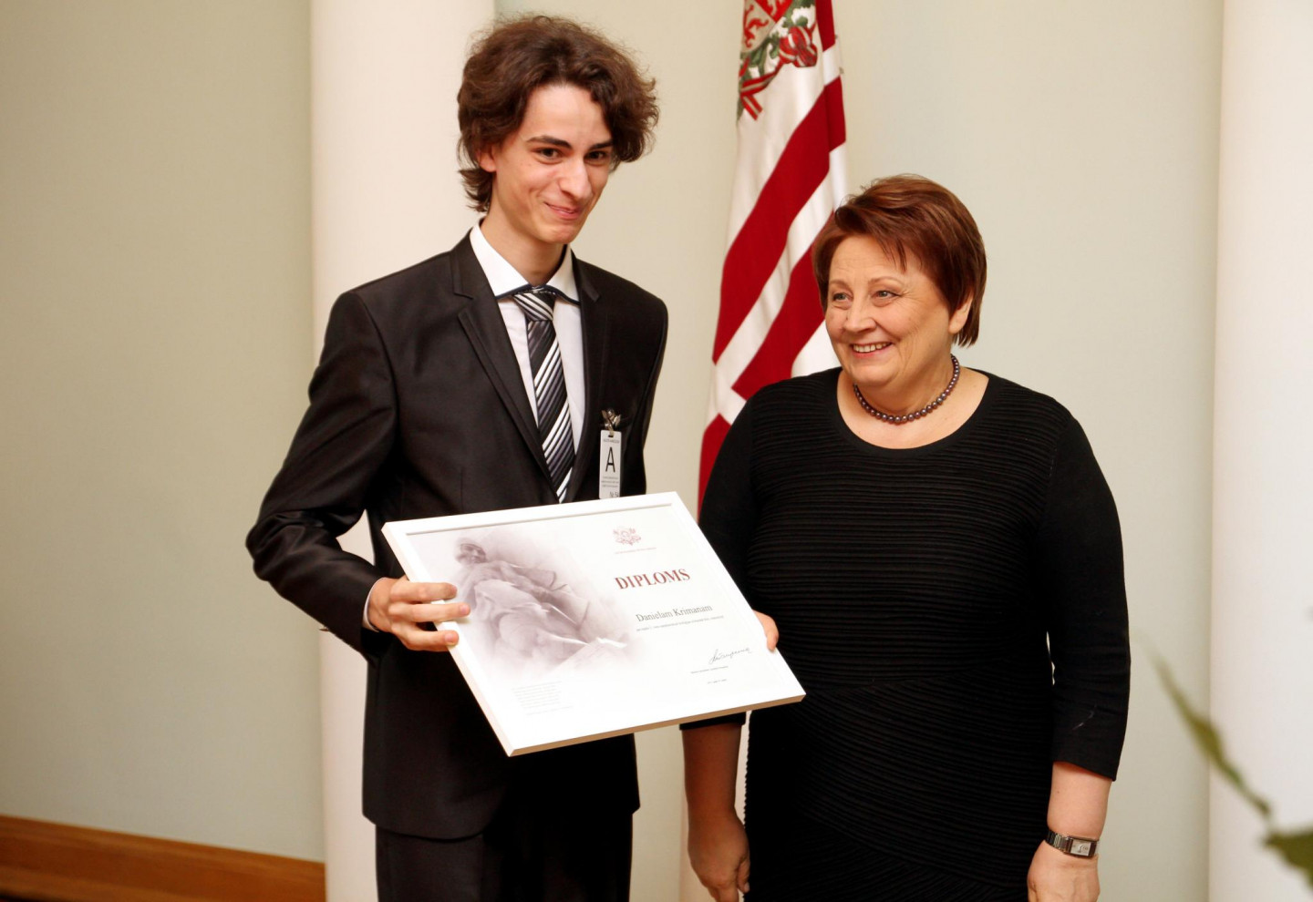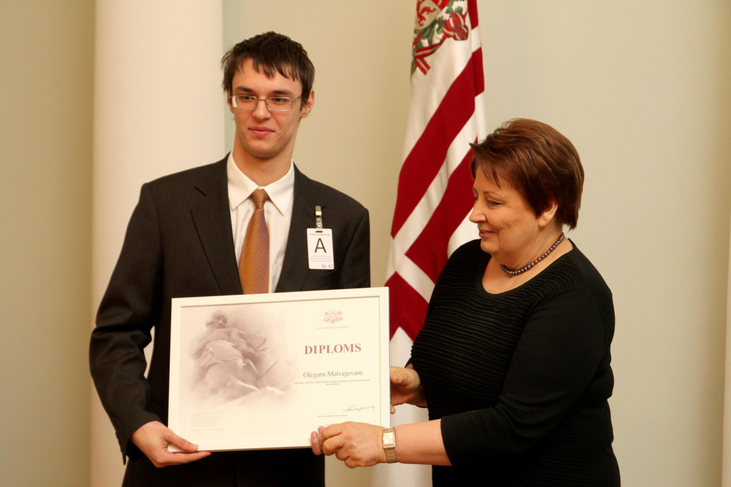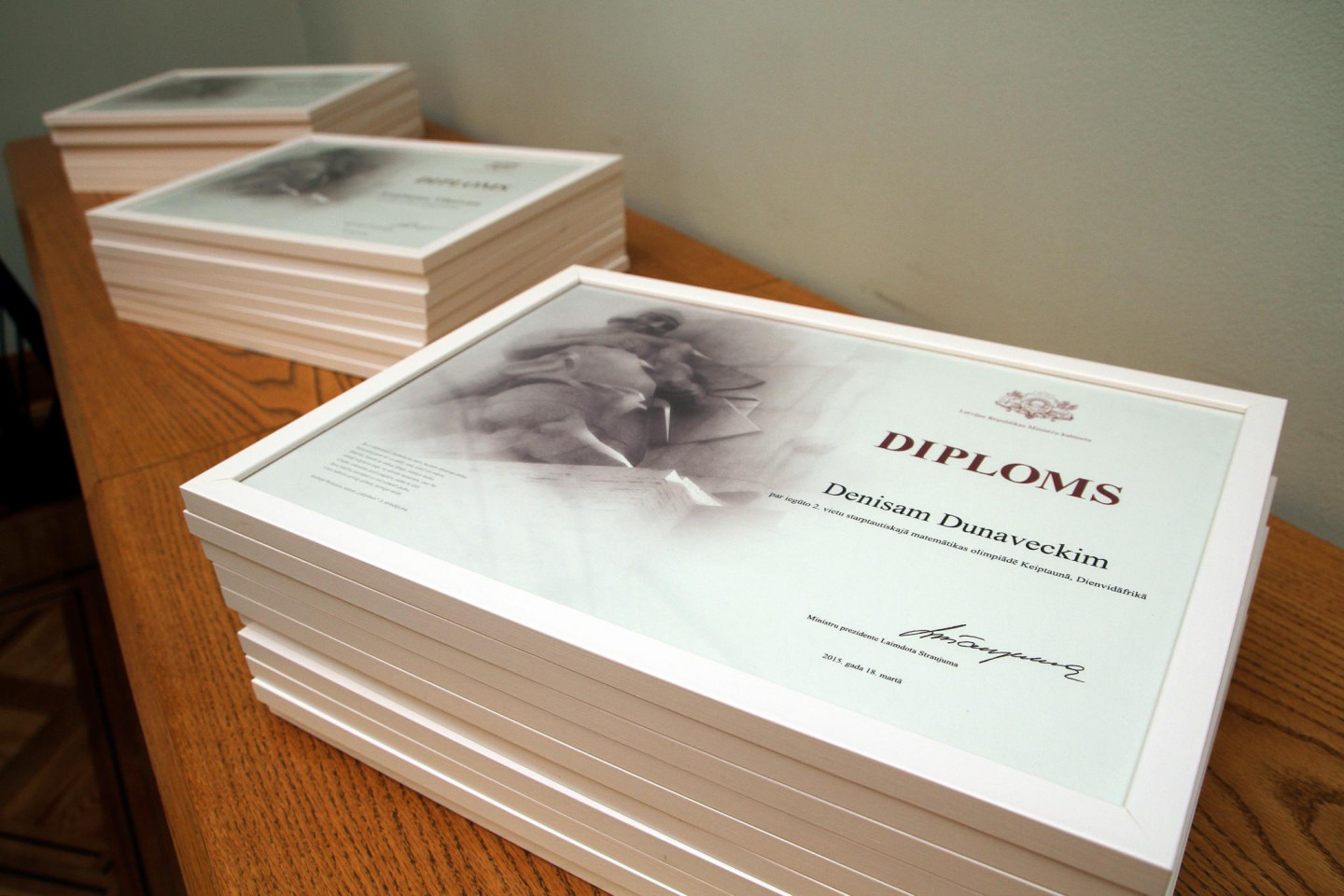 Ministru prezidente Laimdota Straujuma sveic 2013./2014. mācību gada starptautisko mācību priekšmetu olimpiāžu uzvarētājus un viņu pedagogus, pasniedzot viņiem Ministru kabineta diplomus. Tāpat olimpiāžu laureātiem un viņu skolotājiem izmaksātas valdības piešķirtās naudas balvas 26 117 eiro apmērā.