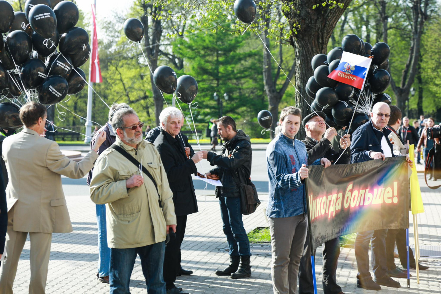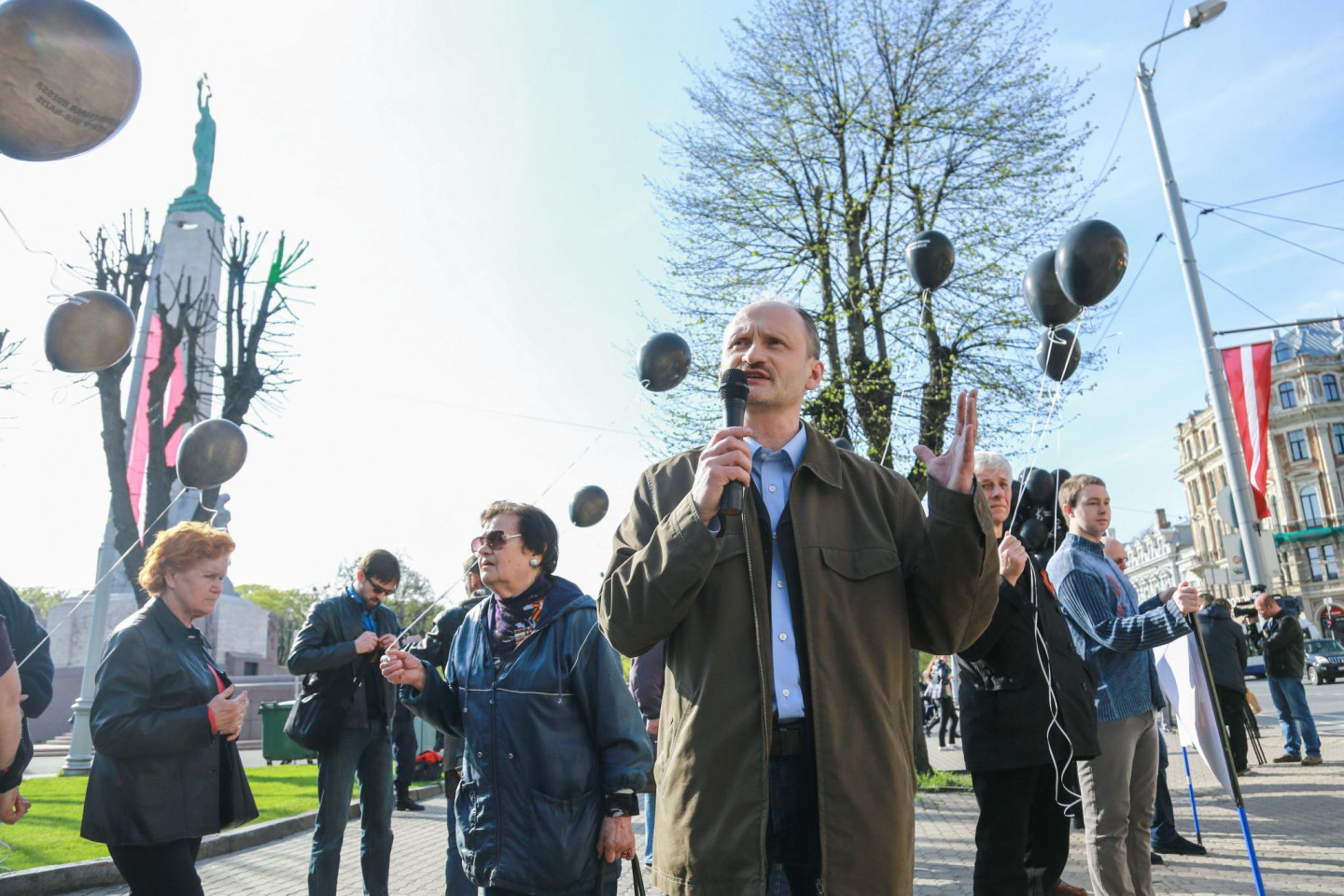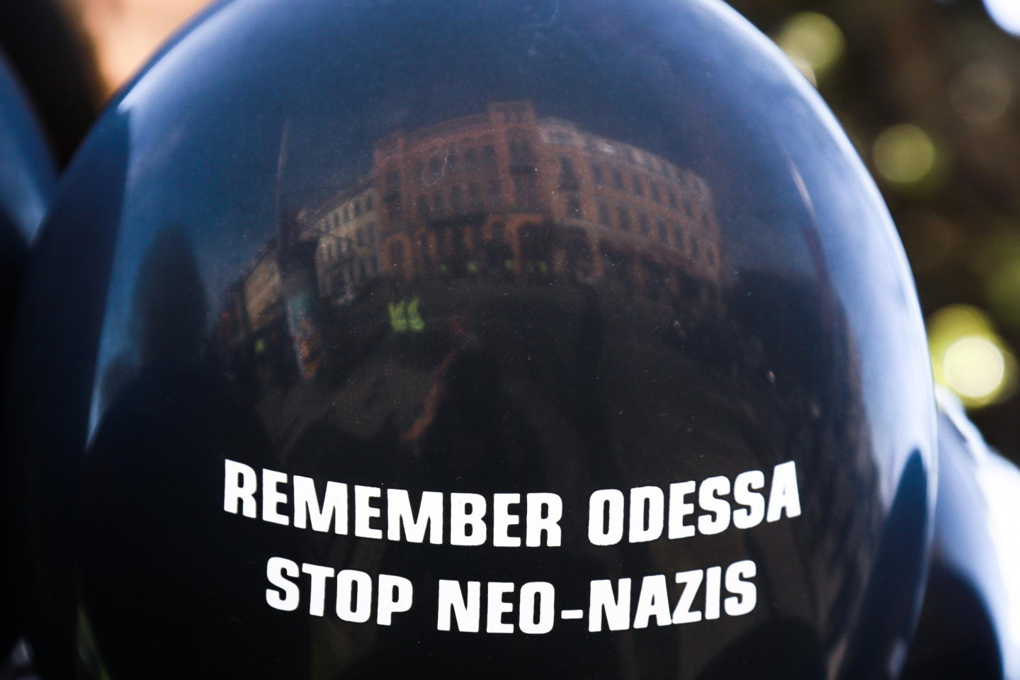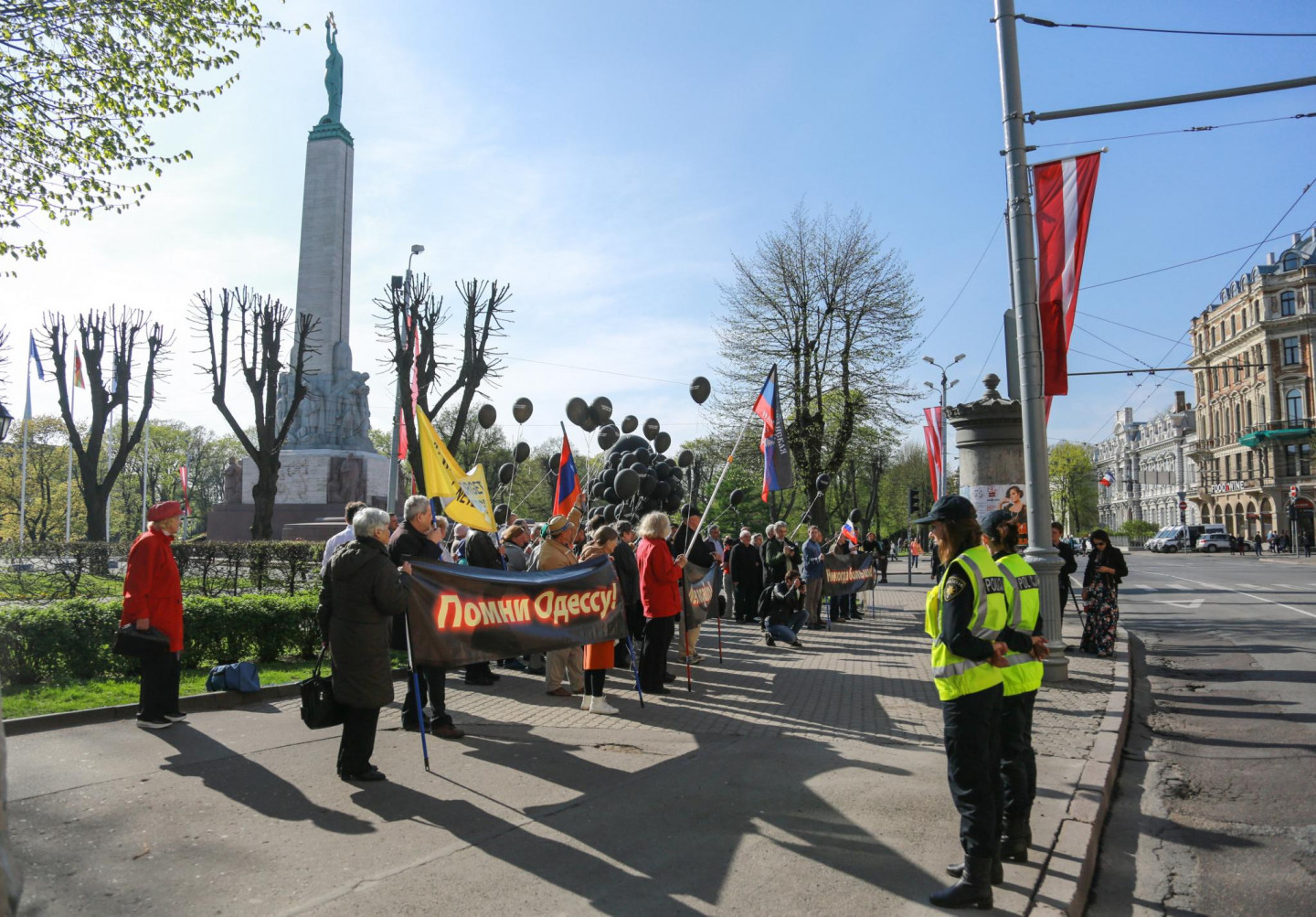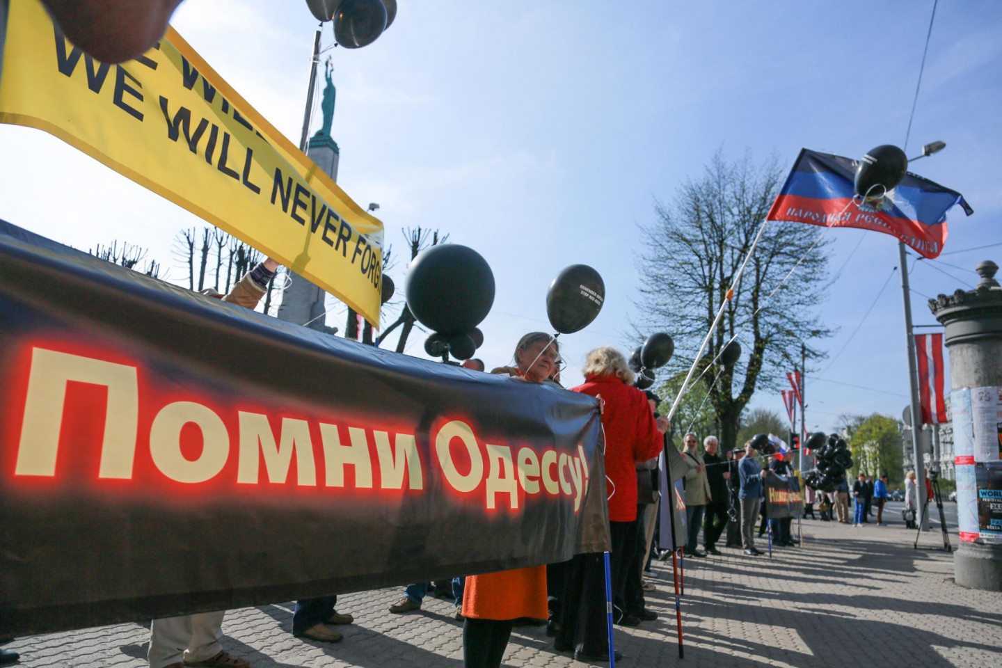 Šopēcpusdien Rīgā, iepretim Vācijas vēstniecībai, aptuveni 50 cilvēki protesta akcijā pieprasīja neatkarīgu un starptautisku izmeklēšanu pagājušā gada 2.maija traģiskajiem notikumiem Odesā. Akcijas dalībnieku vidū bija arī Latvijas Krievu savienības (LKS) redzamākie biedri - Miroslavs Mitrofanovs, Jurijs Petropavlovskis un citi -, kuri līdzīgās akcijās manāmi visai regulāri.