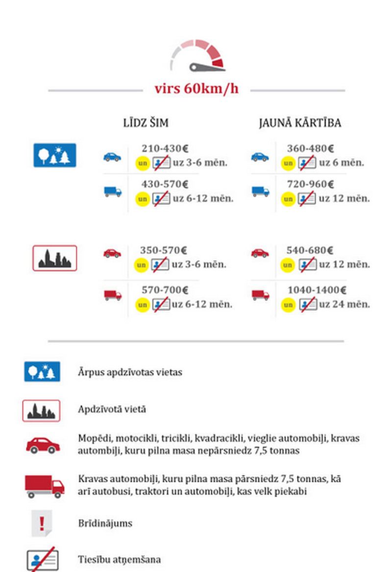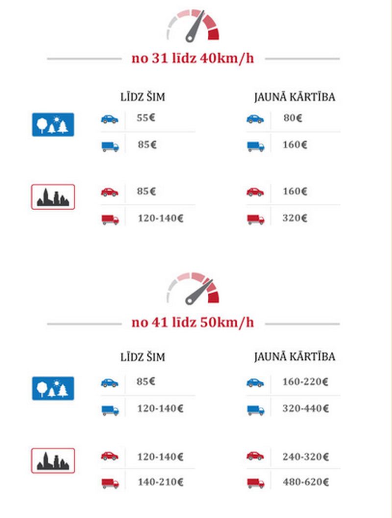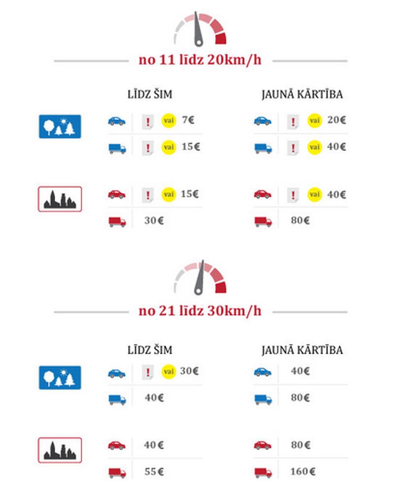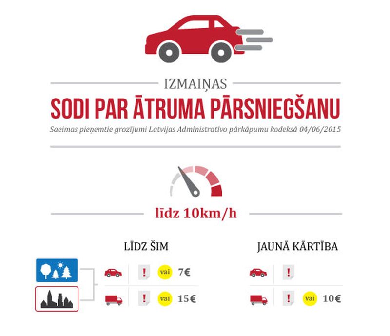 Saeima ceturtdien galīgajā lasījumā pieņēma grozījumus Latvijas Administratīvo pārkāpumu kodeksā, palielinot naudas sodus par būtisku atļautā braukšanas ātruma pārsniegšanu. Cik lieli būs jaunie sodi par ātruma pārkāpumiem?