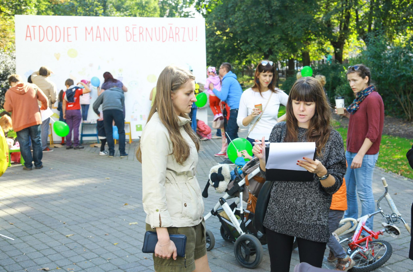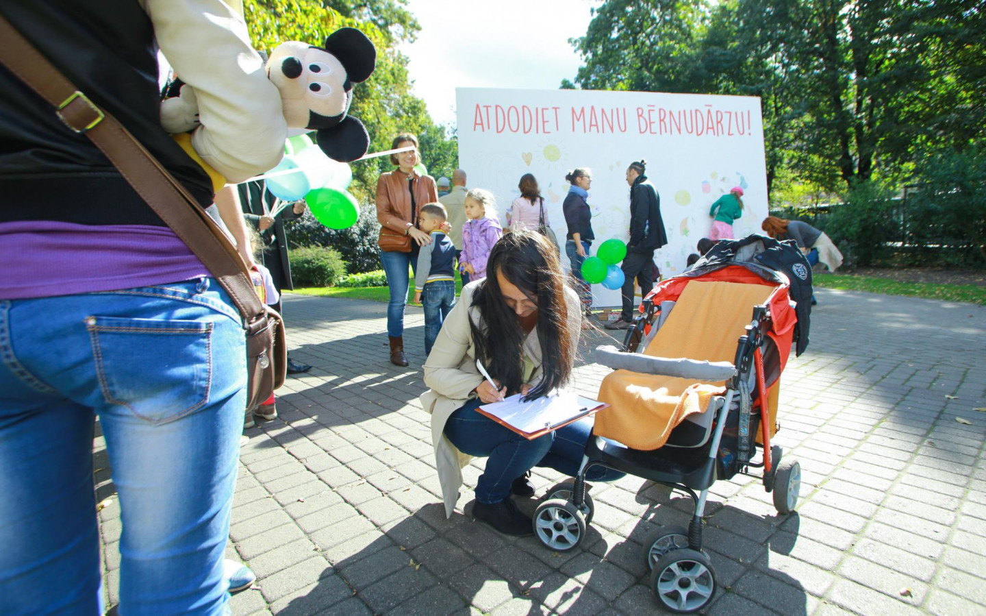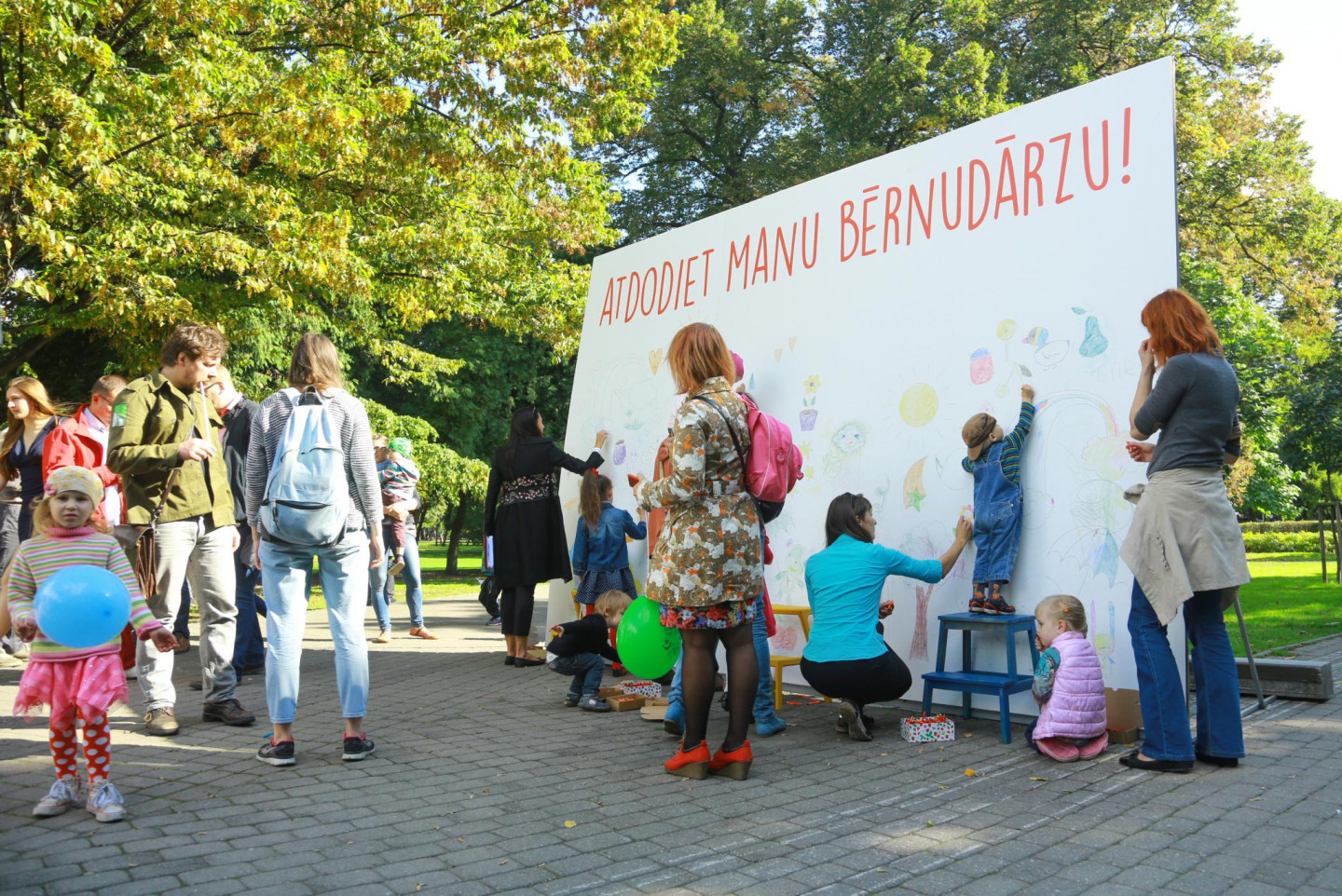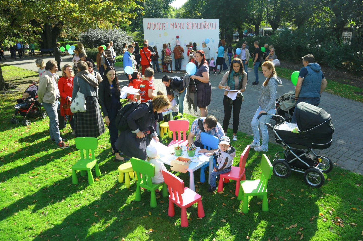 Ar mērķi nepieļaut valsts līdzfinansējuma pārtraukšanu tiem bērniem, kuriem nav nodrošināta vieta pašvaldības bērnudārzā, Vērmanes dārzā norisinās partijas "Latvijas attīstībai" rīkota protesta akcija "Atdodiet manu bērnudārzu!".