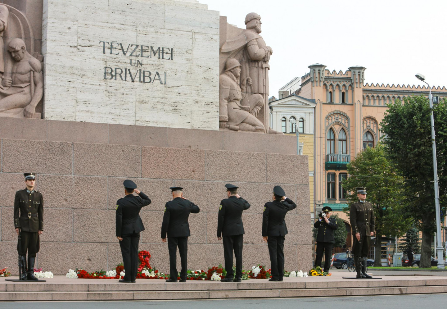 Ziedu nolikšana pie Brīvības pieminekļa.