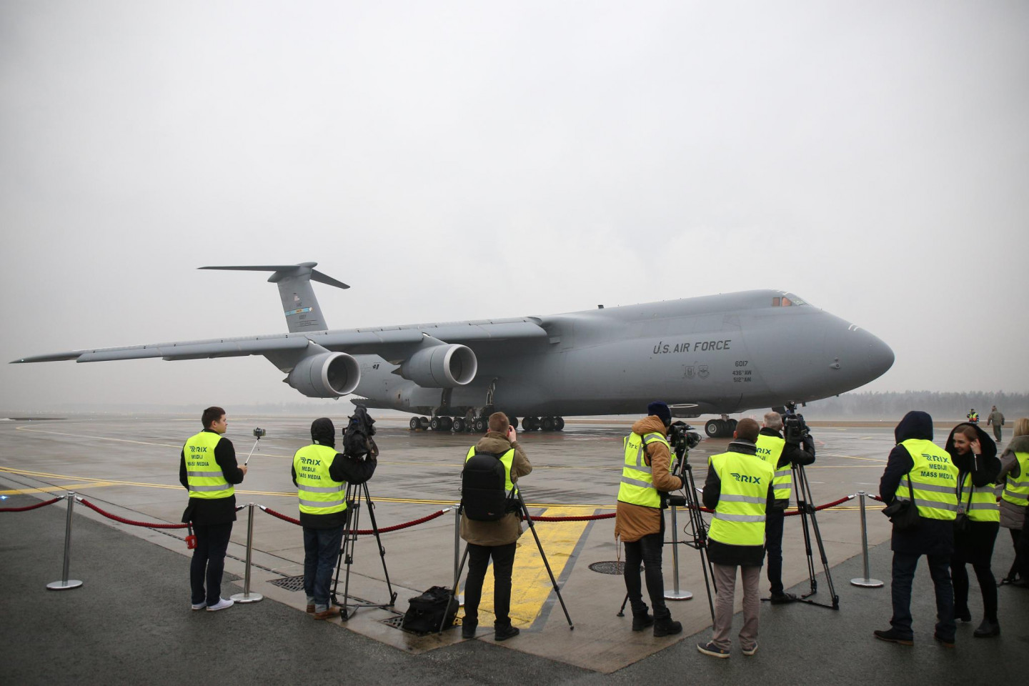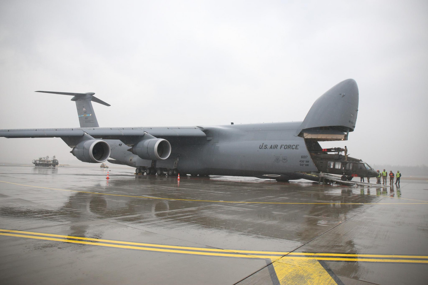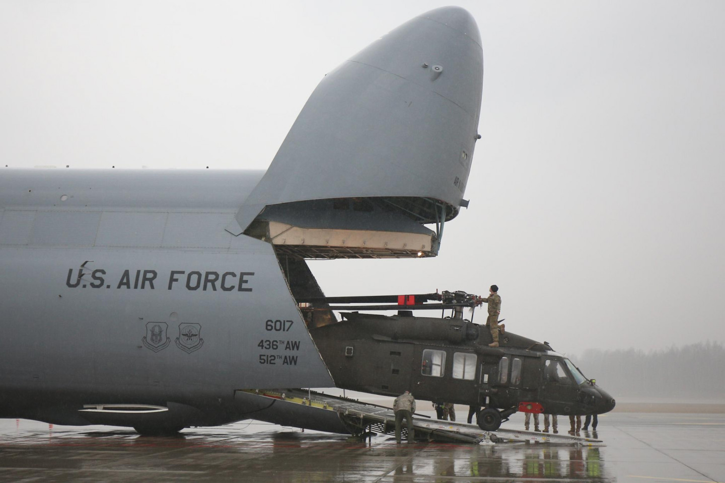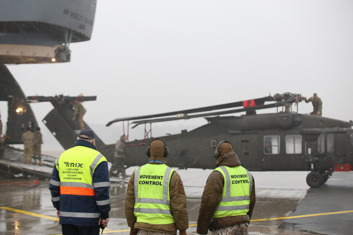 Šodien lidostā "Rīga" nogādāti pieci ASV gaisa spēku helikopteri "Blackhawk".